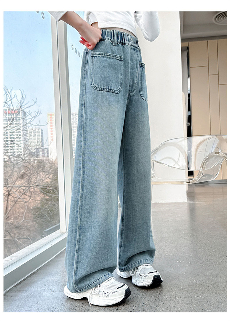 소녀 청바지 2025 새로운 한국 스타일 느슨한 바지 빅 키즈 올 매치 웨스턴 스타일 슬림 와이드 레그 트렌디 한 아우터 바지