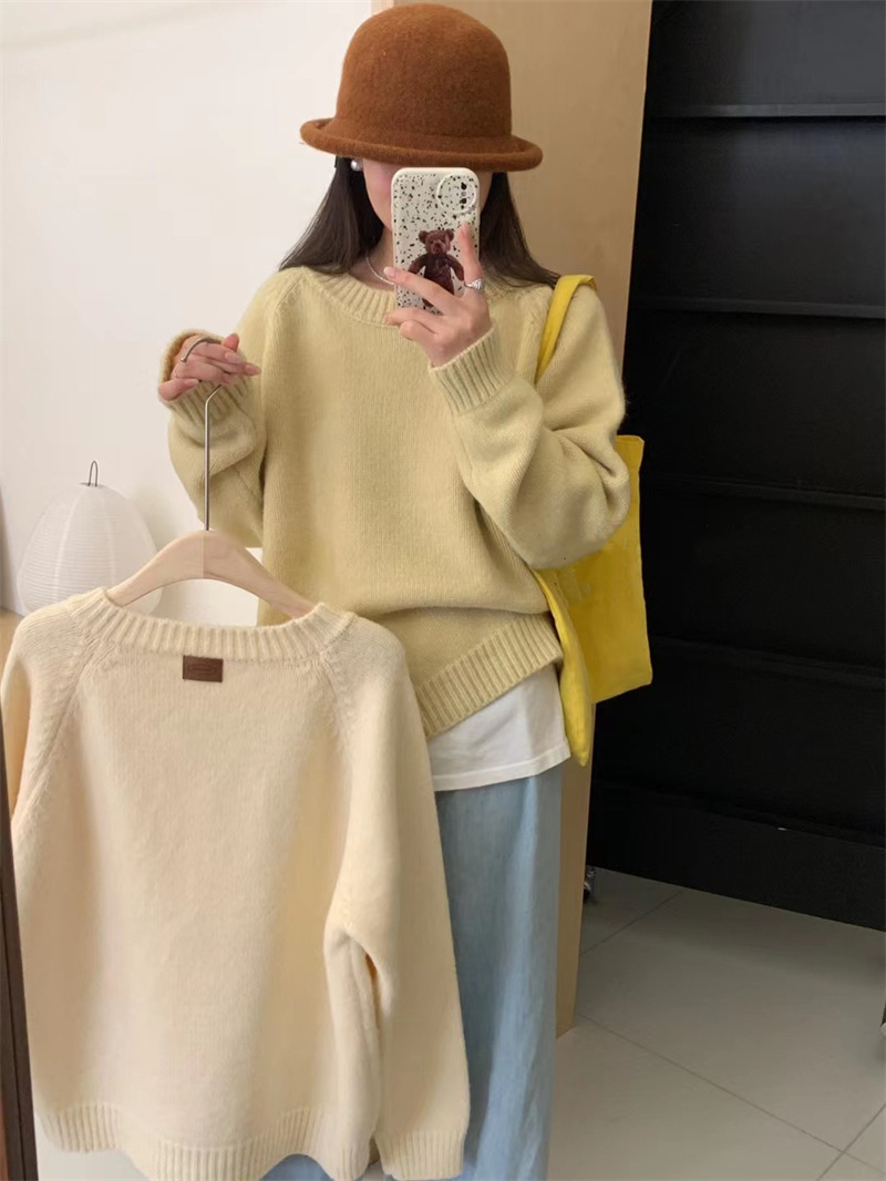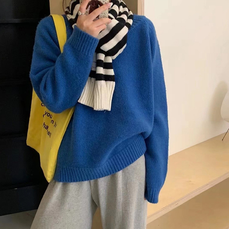 페나 리치 올 매치 스웨터 여자 두꺼운 느슨한 가을과 겨울 새로운 라운드 넥 간단한 솔리드 컬러 한국 스타일 니트 탑스토어 가기
