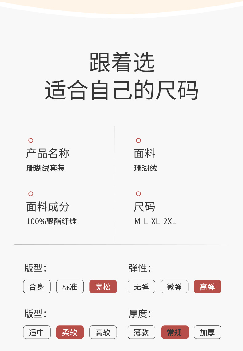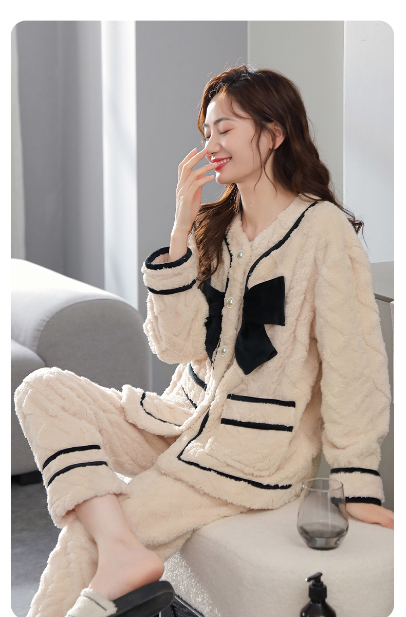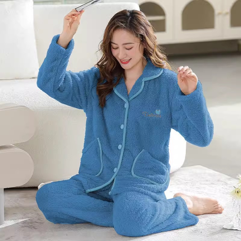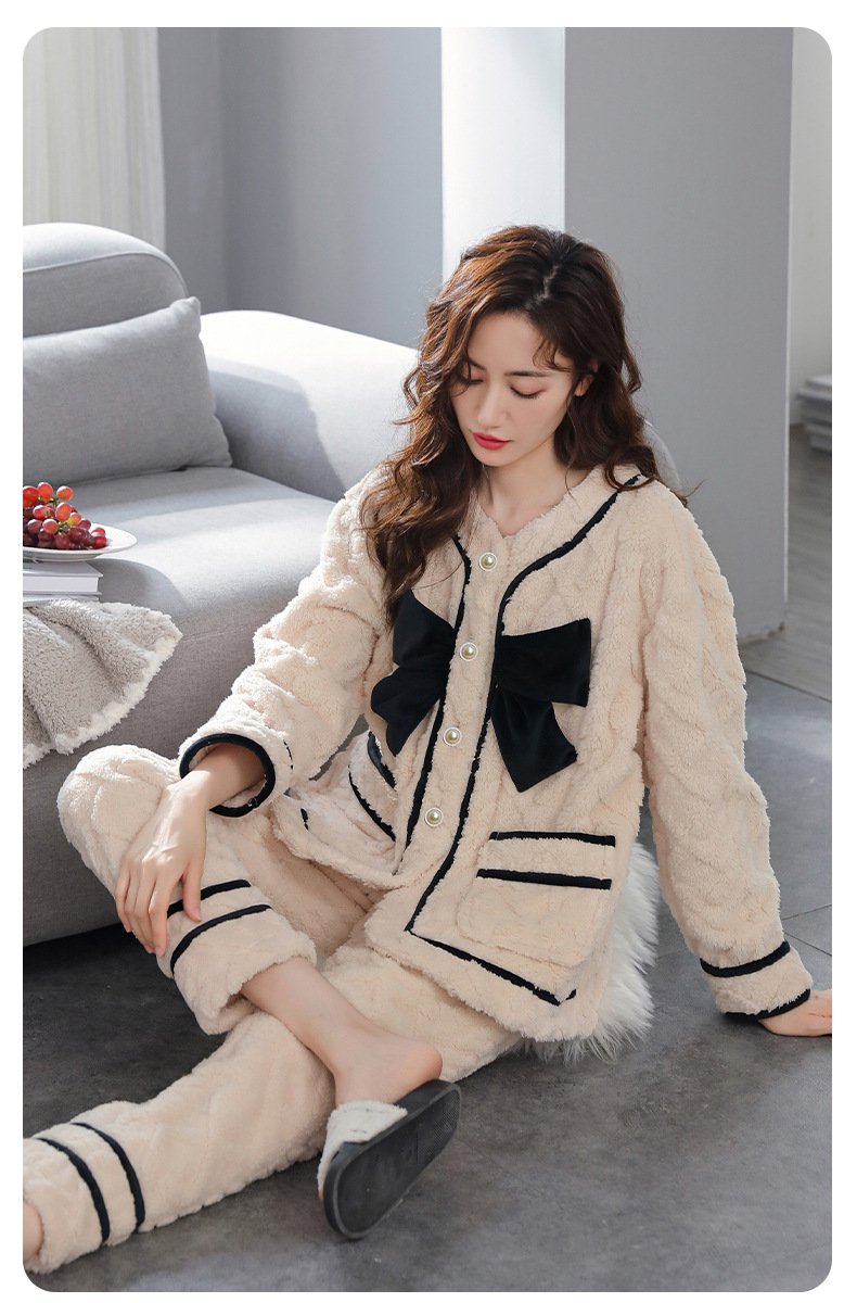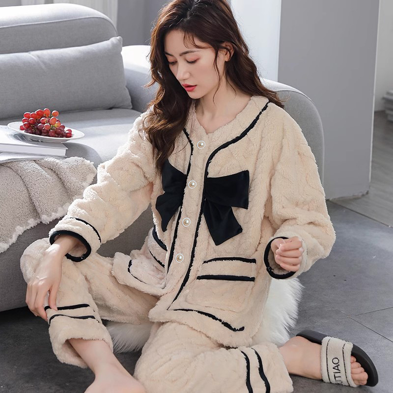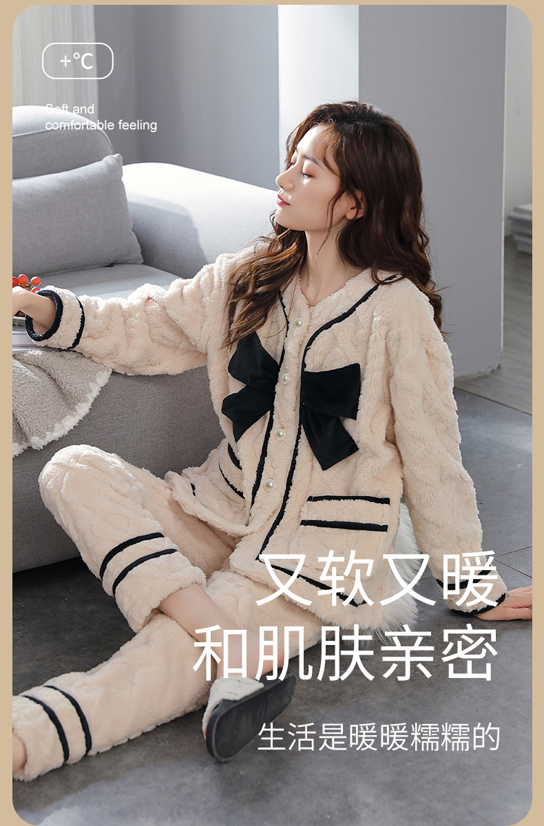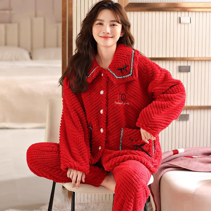 【클리어런스 코랄벨벳】샤오샹풍 스타일 여성용 가을 겨울 두꺼운 플란넬 홈웨어 세트