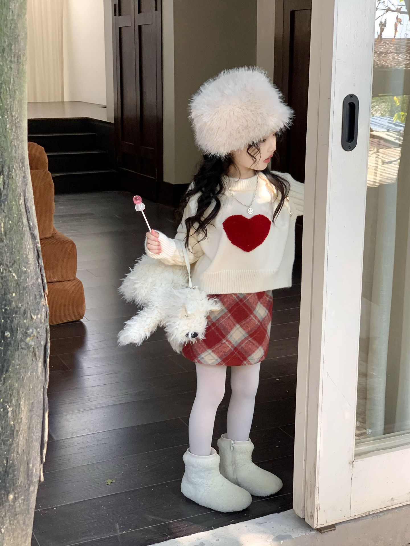 여자 스웨터 2024 겨울 새 한국 아동복 새해 레드 루즈 루즈 게으른 풀오버 니트 탑