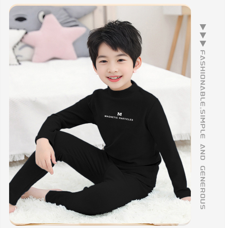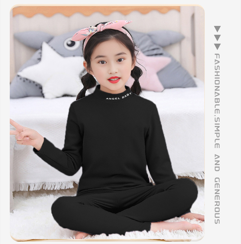 가을과 겨울 어린이 따뜻한 데가 벨벳 속옷 소년 소녀를위한 세트 단색 편지 파자마 두꺼운 홈 옷스토어 가기