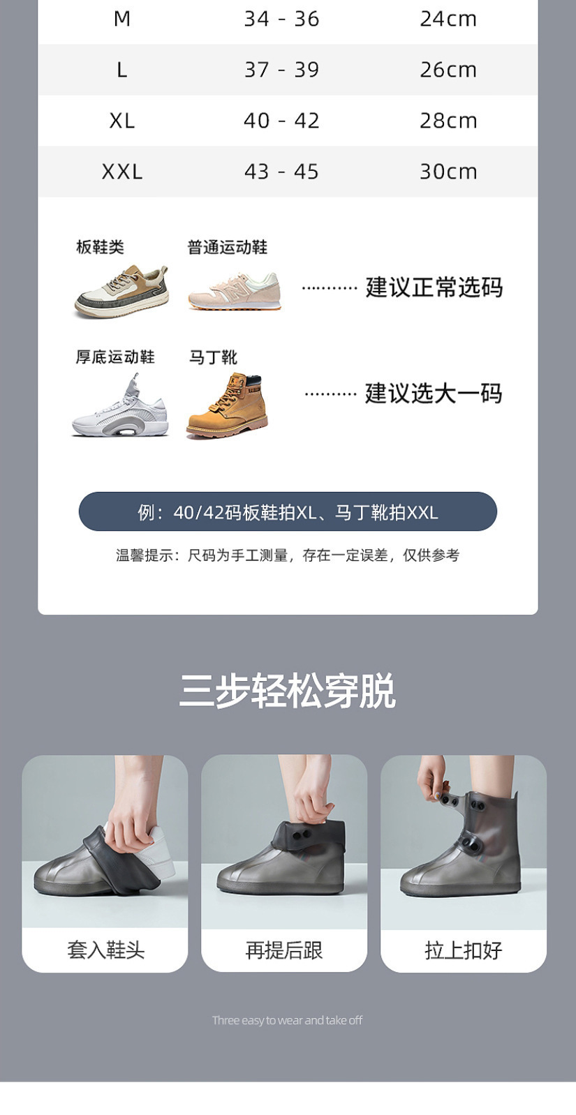 방수 레인 슈즈 커버, 실리콘 미끄럼 방지, 먼지 방지 및 내마모성, 두꺼운 휴대용 레인 부츠 커버, 방습 및 반복 사용, 남성용 및 여성용 비옷