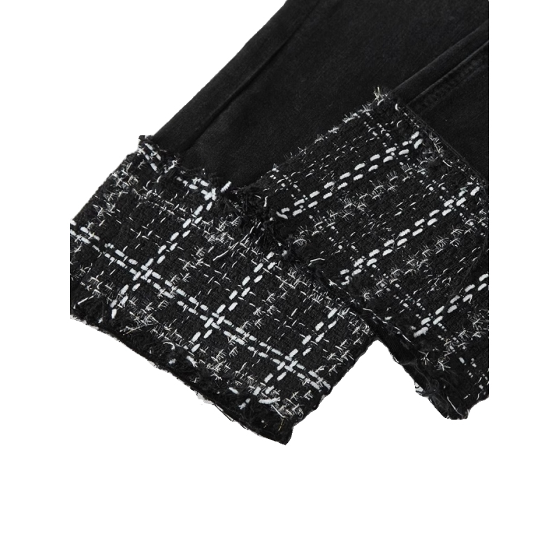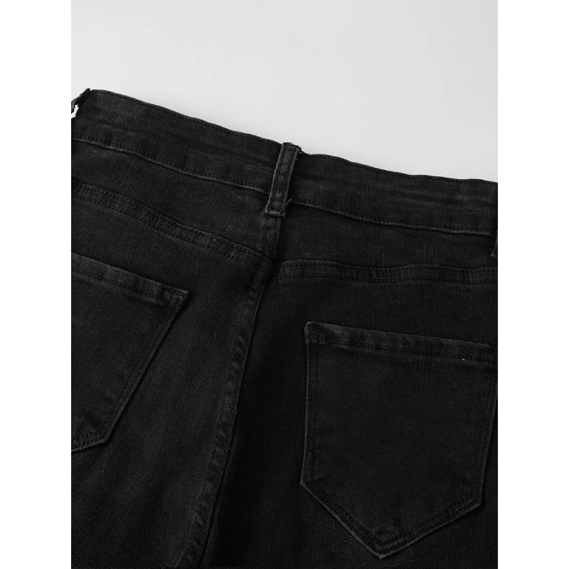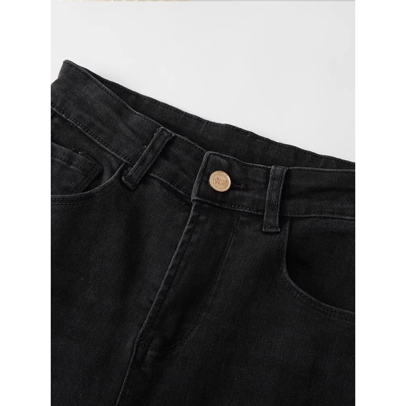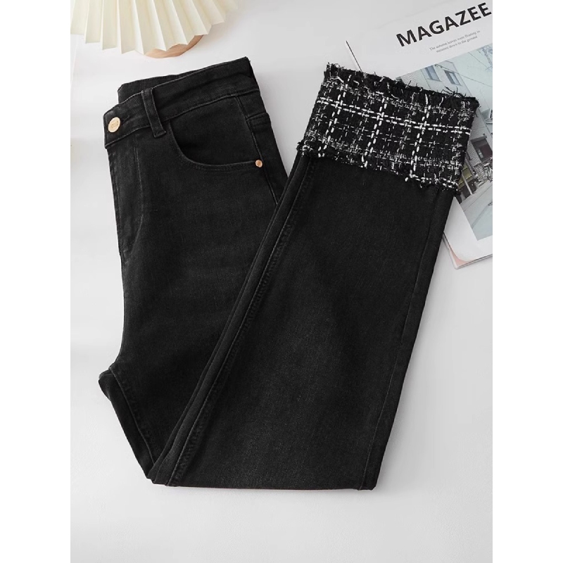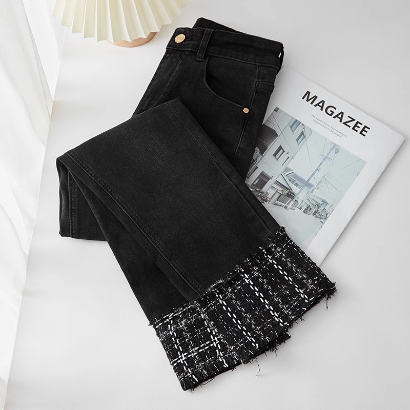 검은 바느질 연기 튜브 청바지 여성의 가을과 겨울 플러스 사이즈 통통녀 높은 허리 슬림 핏 바지 자른 스트레이트 바지스토어 가기