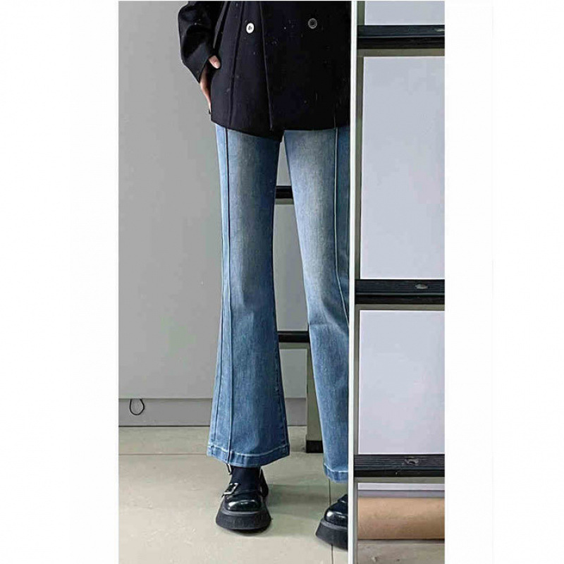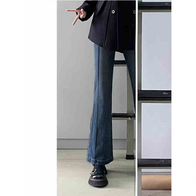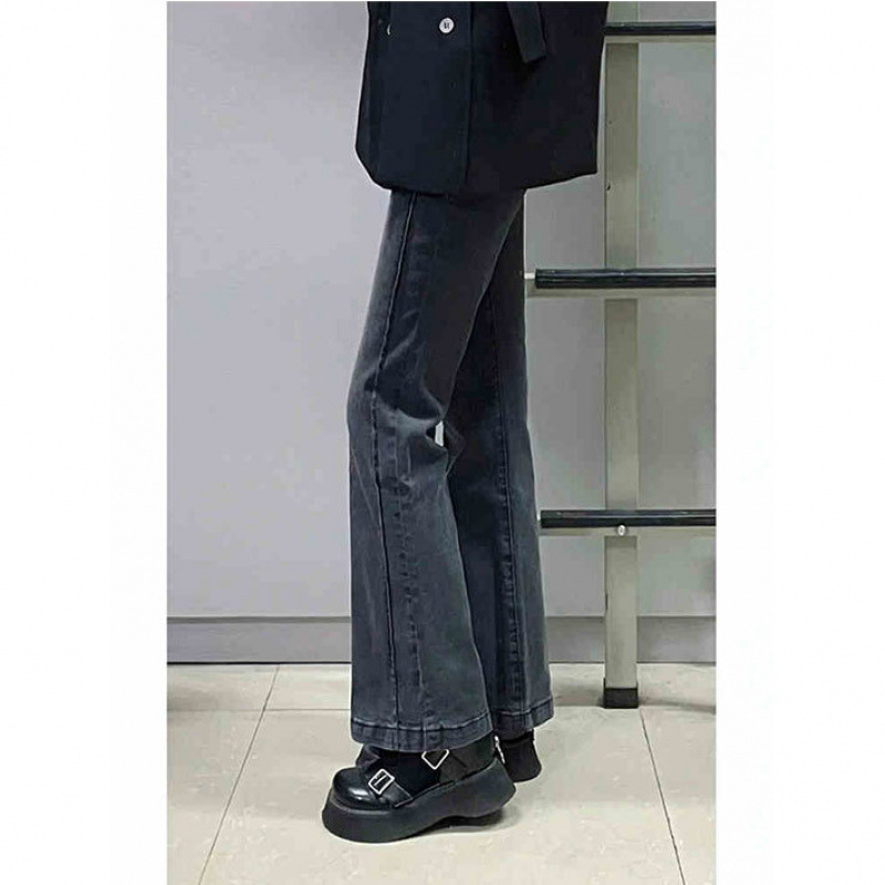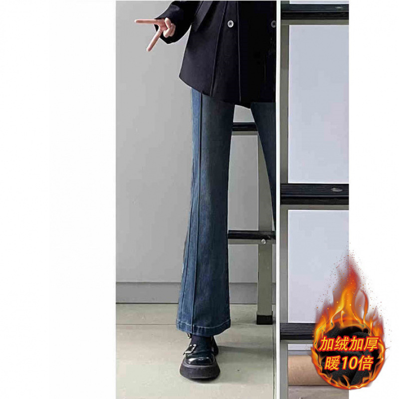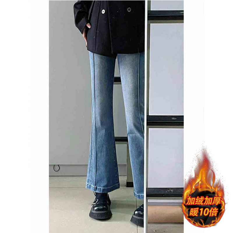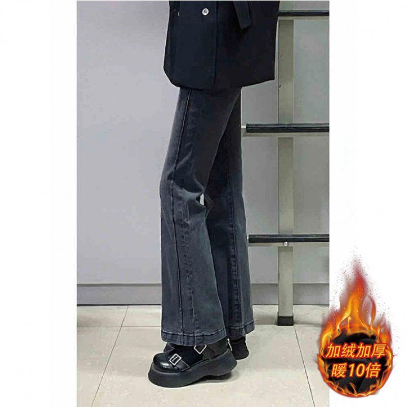 검은 회색 약한 청바지 여성의 가을 기모 플러스 사이즈 통통녀 높은 허리 엉덩이 커버 디자인 스트레치 바지스토어 가기