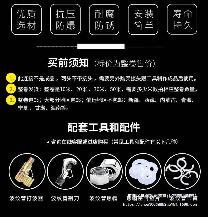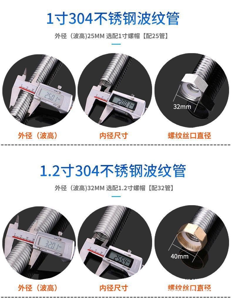304 스테인레스 스틸 골판지 파이프 온수기 냉수 및 온수 파이프 고압 폭발 방지 금속 호스 4 분 6 분 1 인치 스레드 파이프