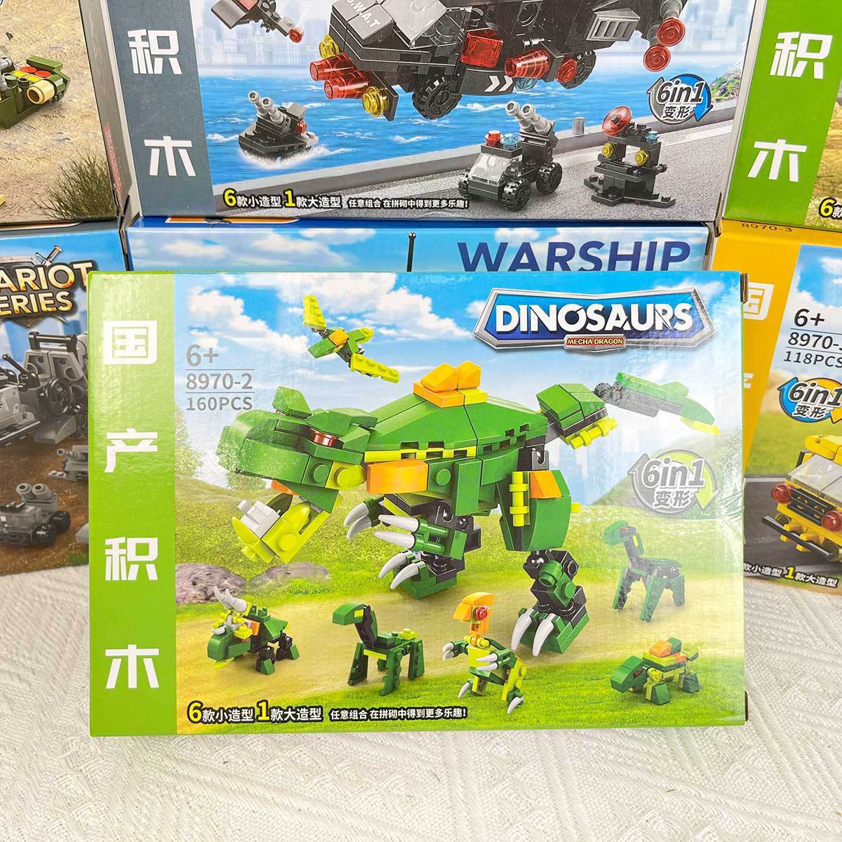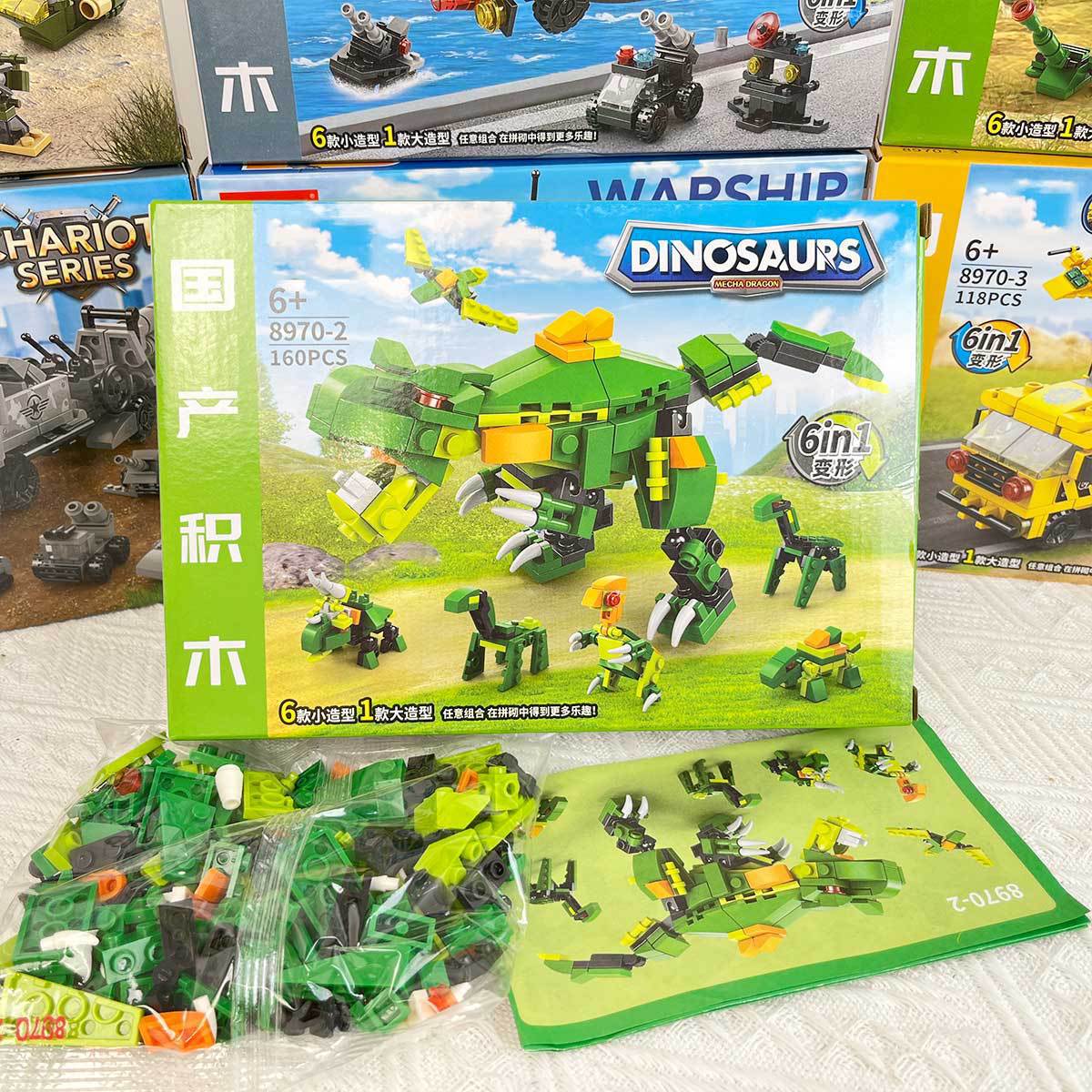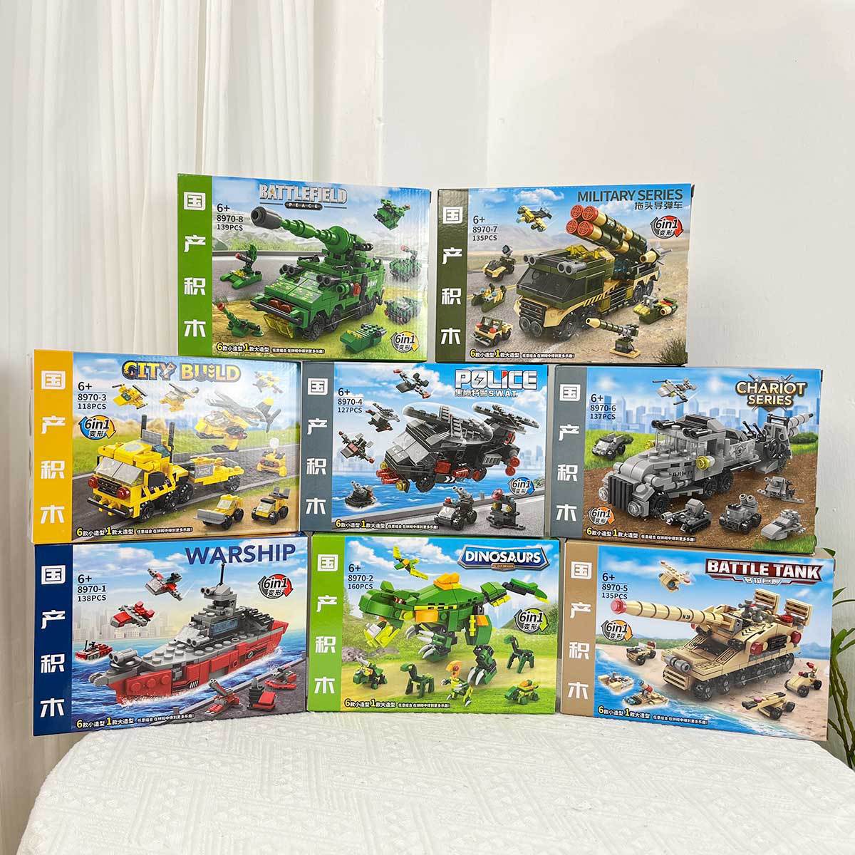 어린이 호환 레고 장난감 6 대 1 작은 입자 퍼즐 조립 탱크 공룡 군사 기관 선물