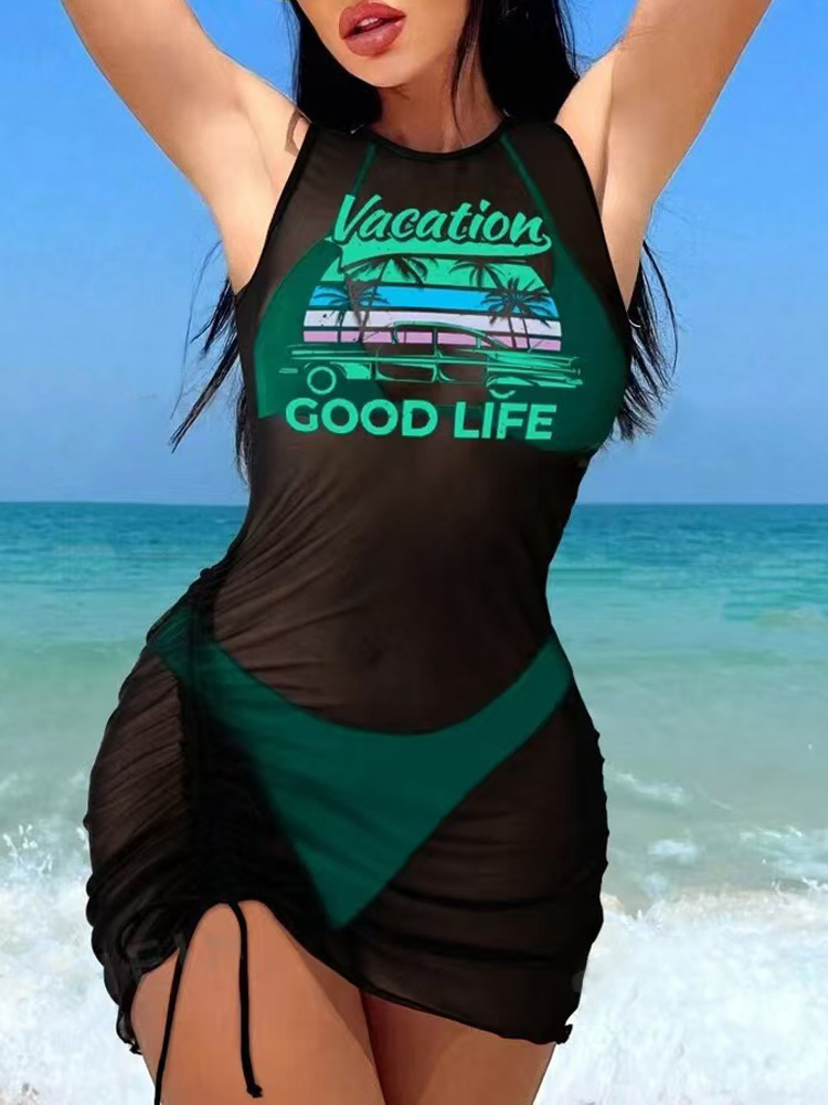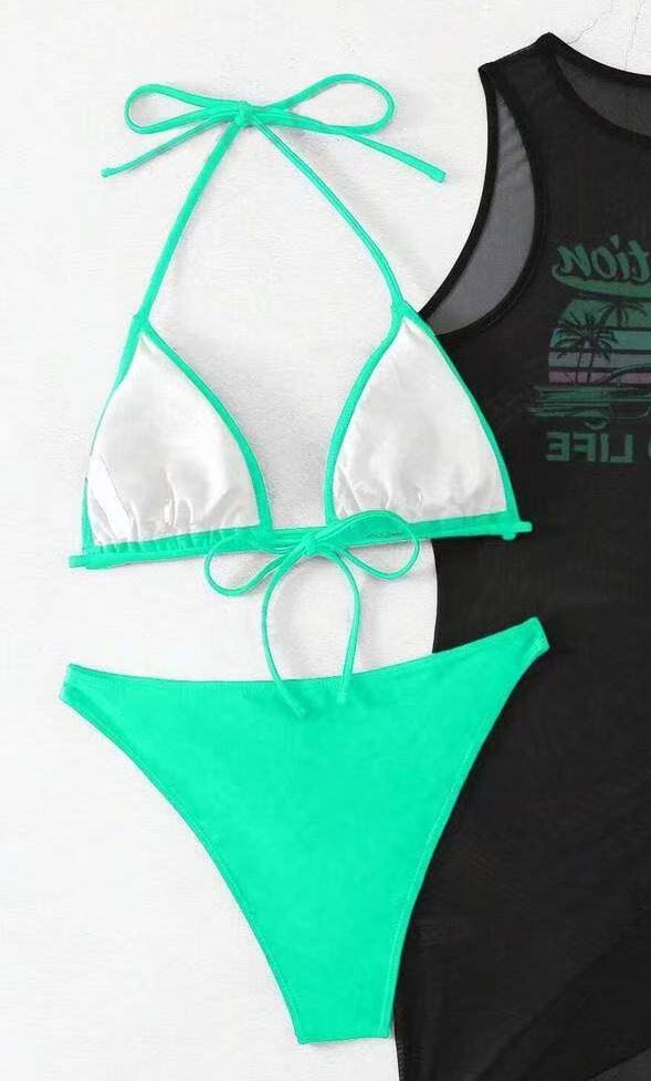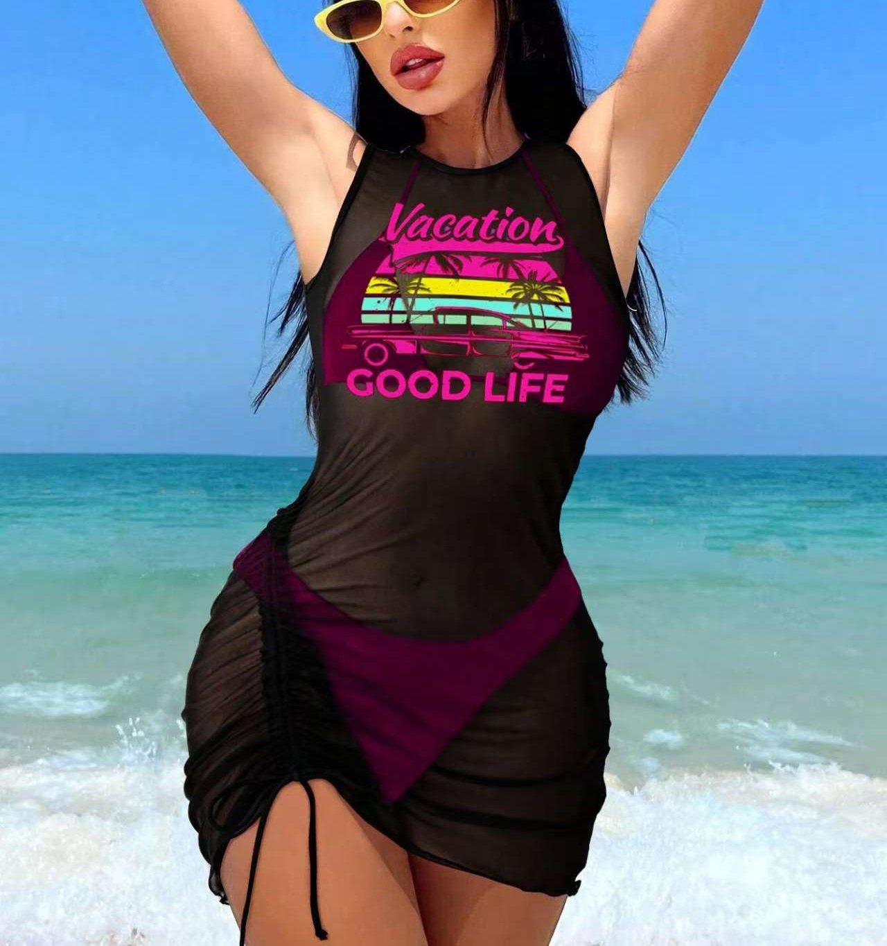 유럽과 미국의 국경 패션 비키니 비키니 3 피스 블라우스 수영복 여성의 섹시한 포지셔닝 인쇄 해변 휴가스토어 가기