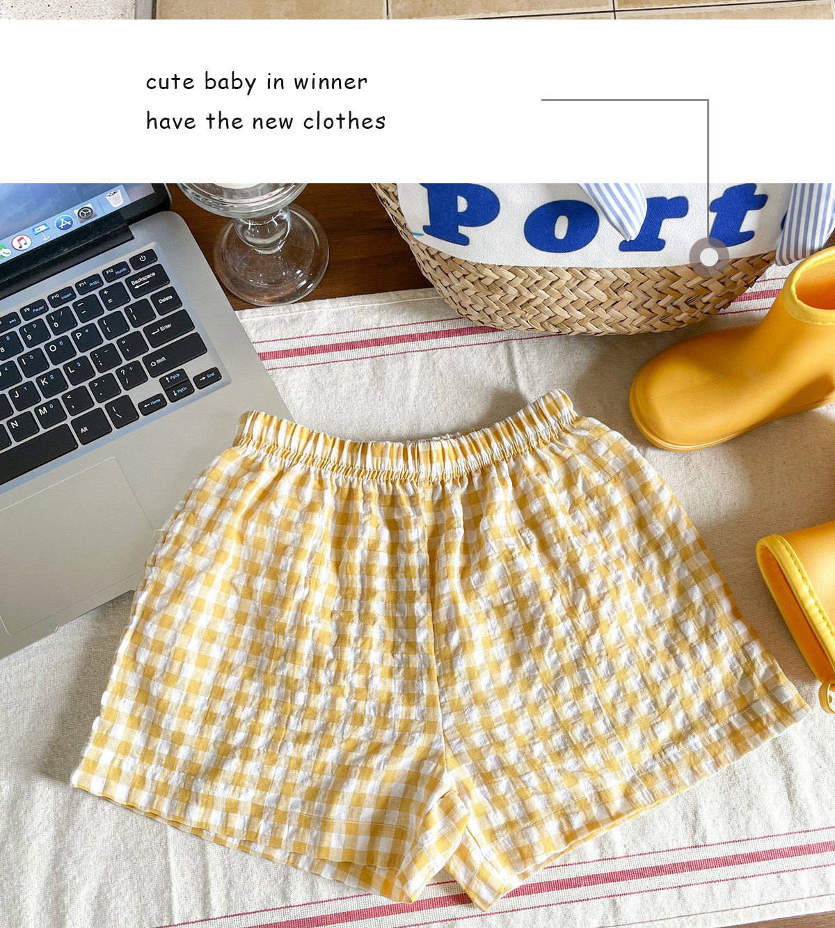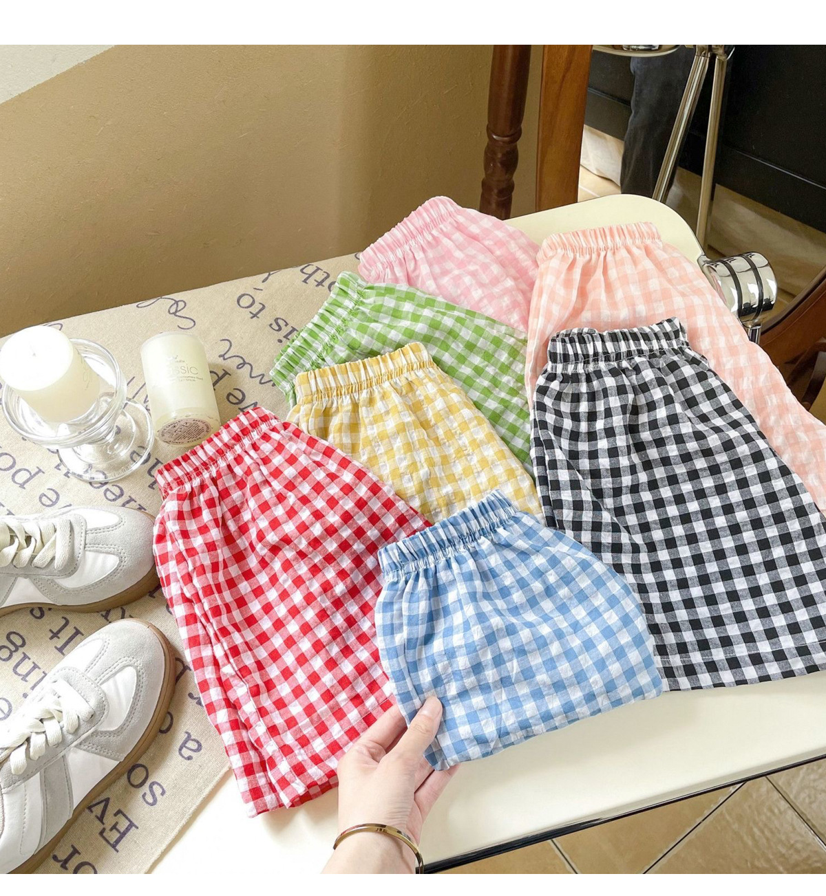 한국식 소년 소녀 순면 격자 무늬 반바지 파자마 바지 아기 Bottoming 베이비 홈 반바지 면사 올매치 캐주얼