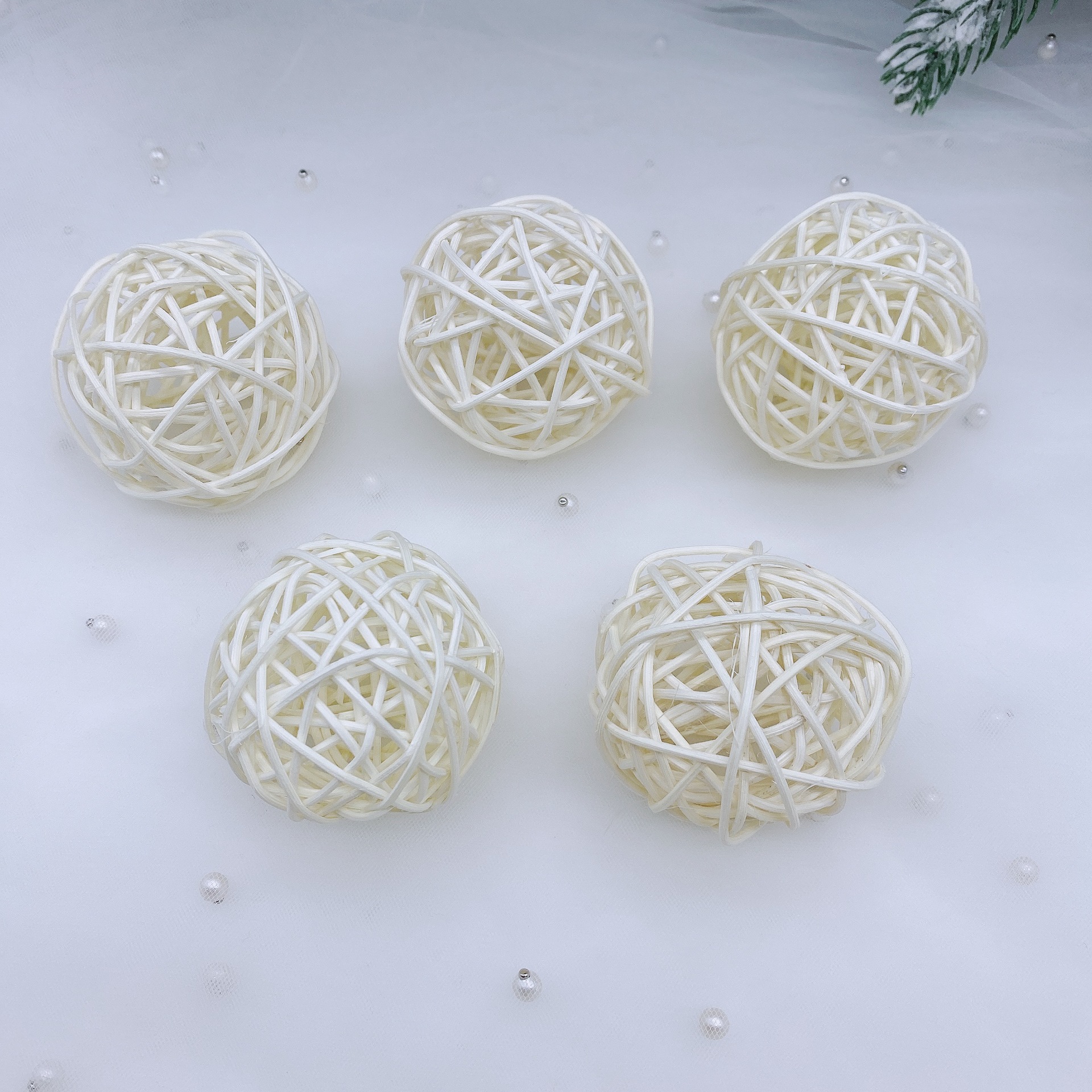 • 등나무 흰색 작은 공 [5개] 6cm - 마른 가지