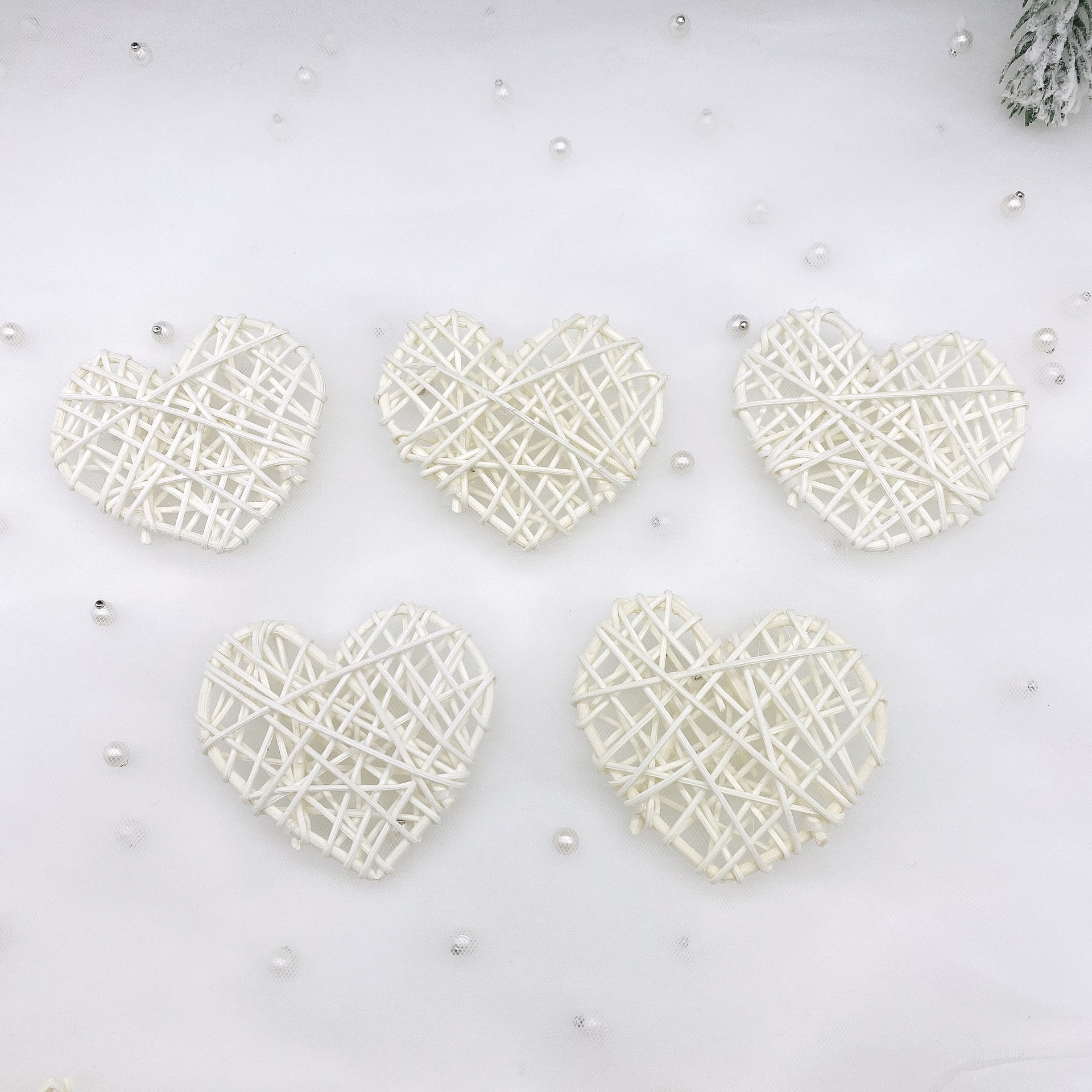 • 등나무 흰색 작은 하트 [5개] 7cm - 마른 가지