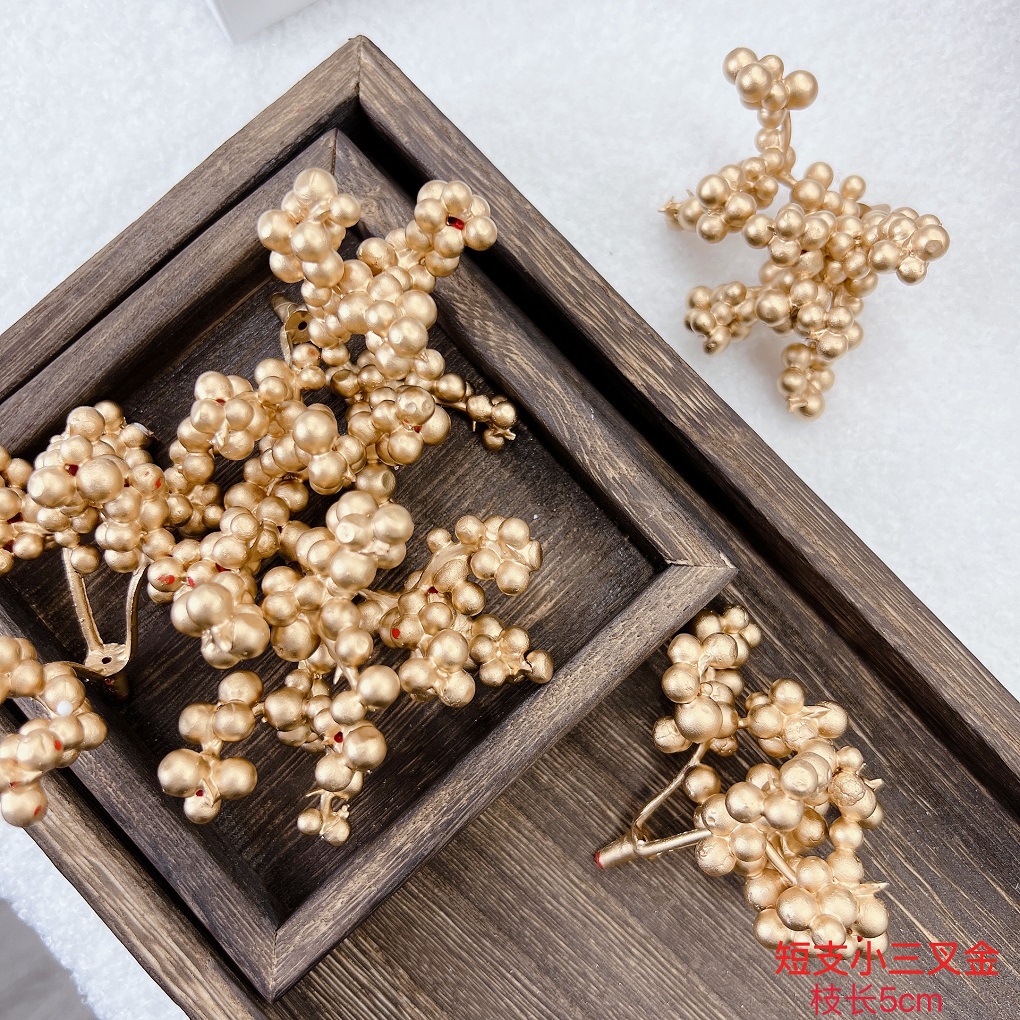 • 연한 노란색의 로즈 골드 삼지창 열매 5개 - 마른 가지