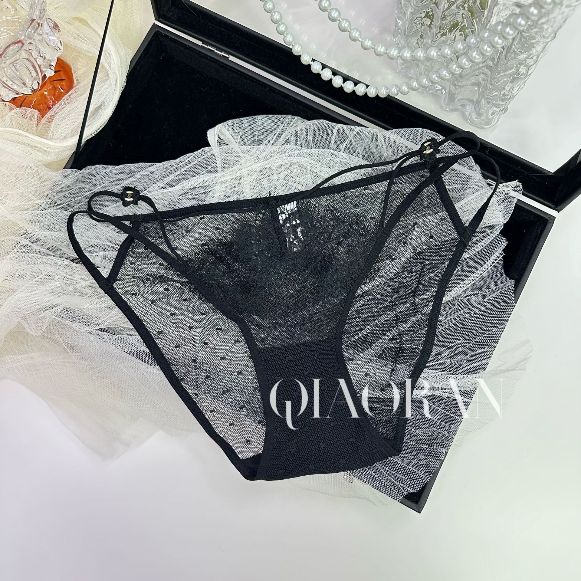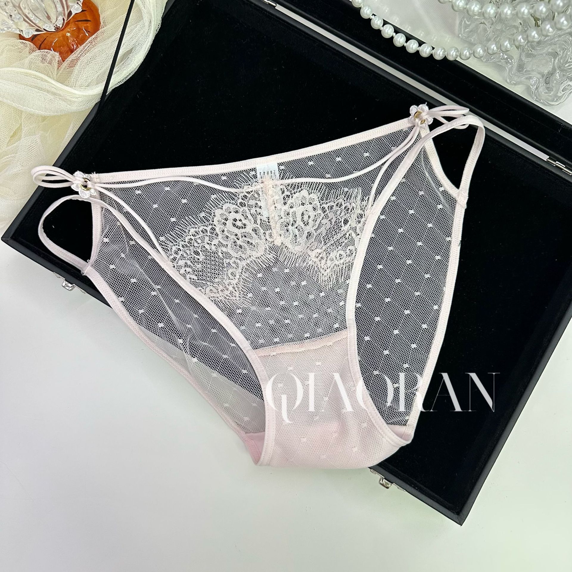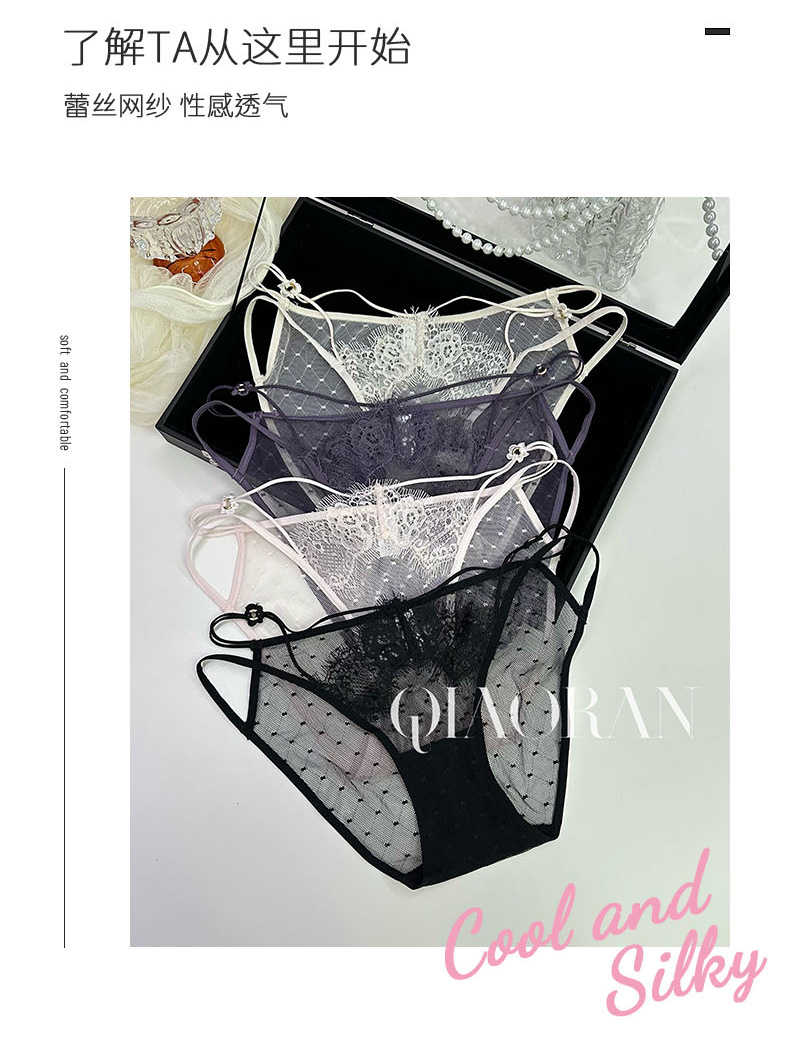 속삭이는 유럽과 미국의 섹시한 레이스 속옷을 기원합니다 여성 자카드 메쉬 브리프 저 허리 할로우 유혹 소녀 속옷스토어 가기