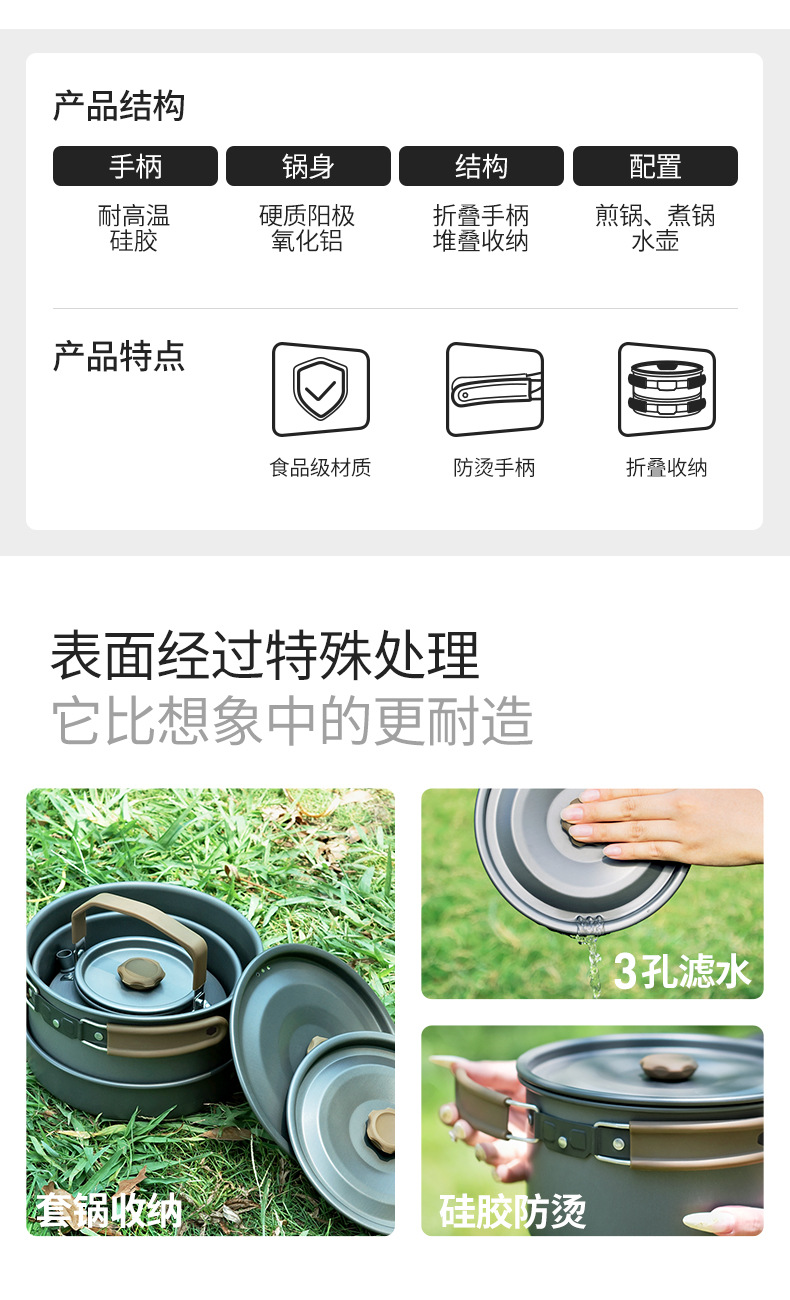 Tuocun 새로운 스타일 게임 야외 캠핑 피크닉 장비 전체 세트 캠핑 냄비 세트 캠핑 조리기구 세트 냄비스토어 가기