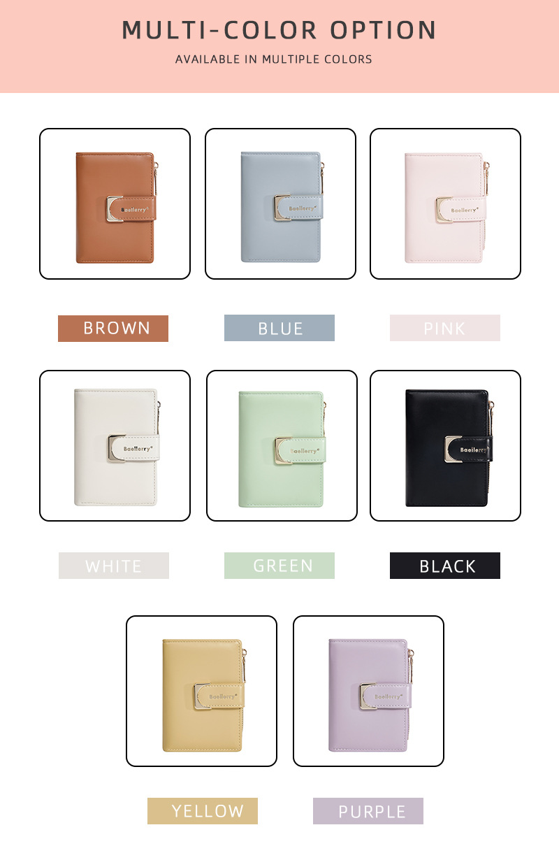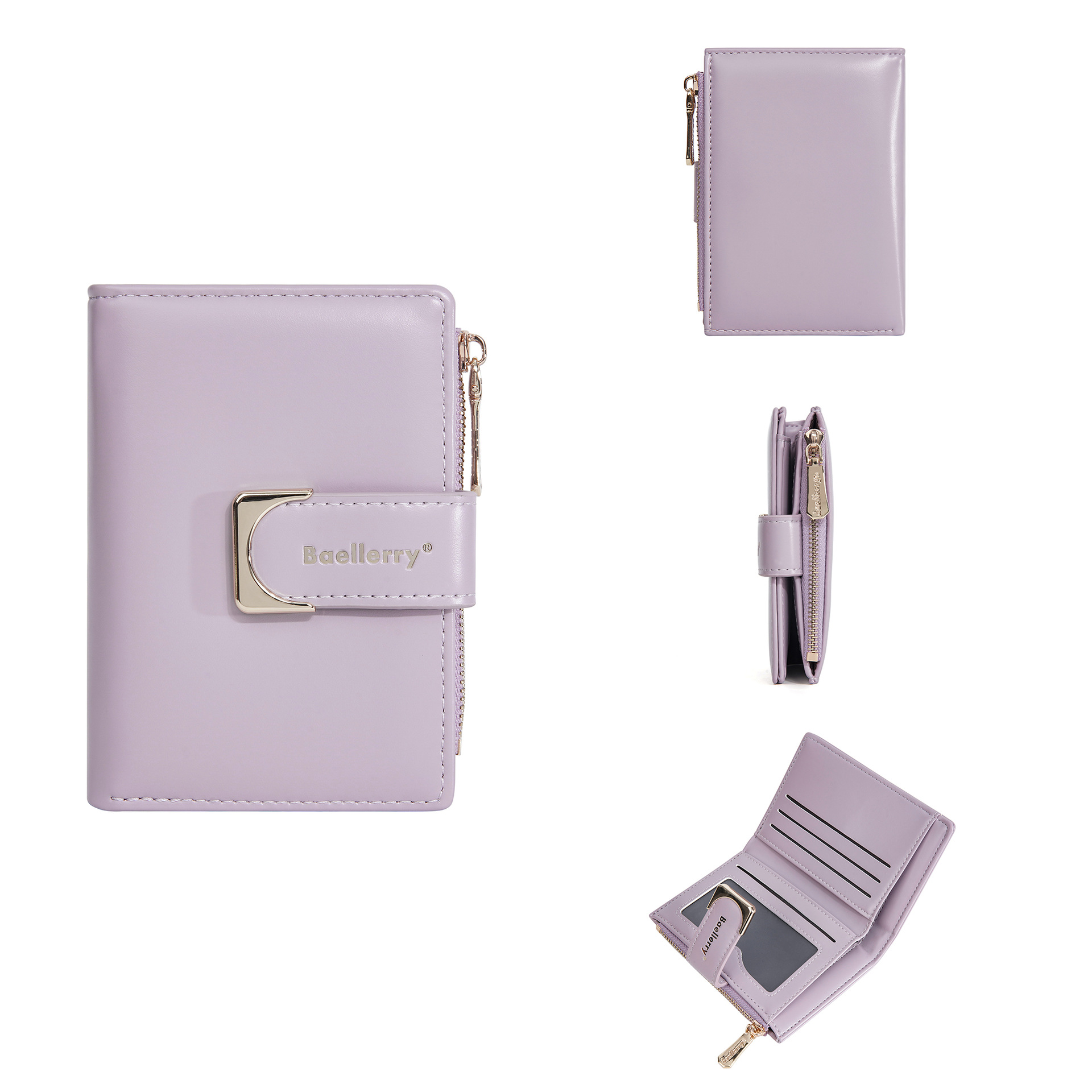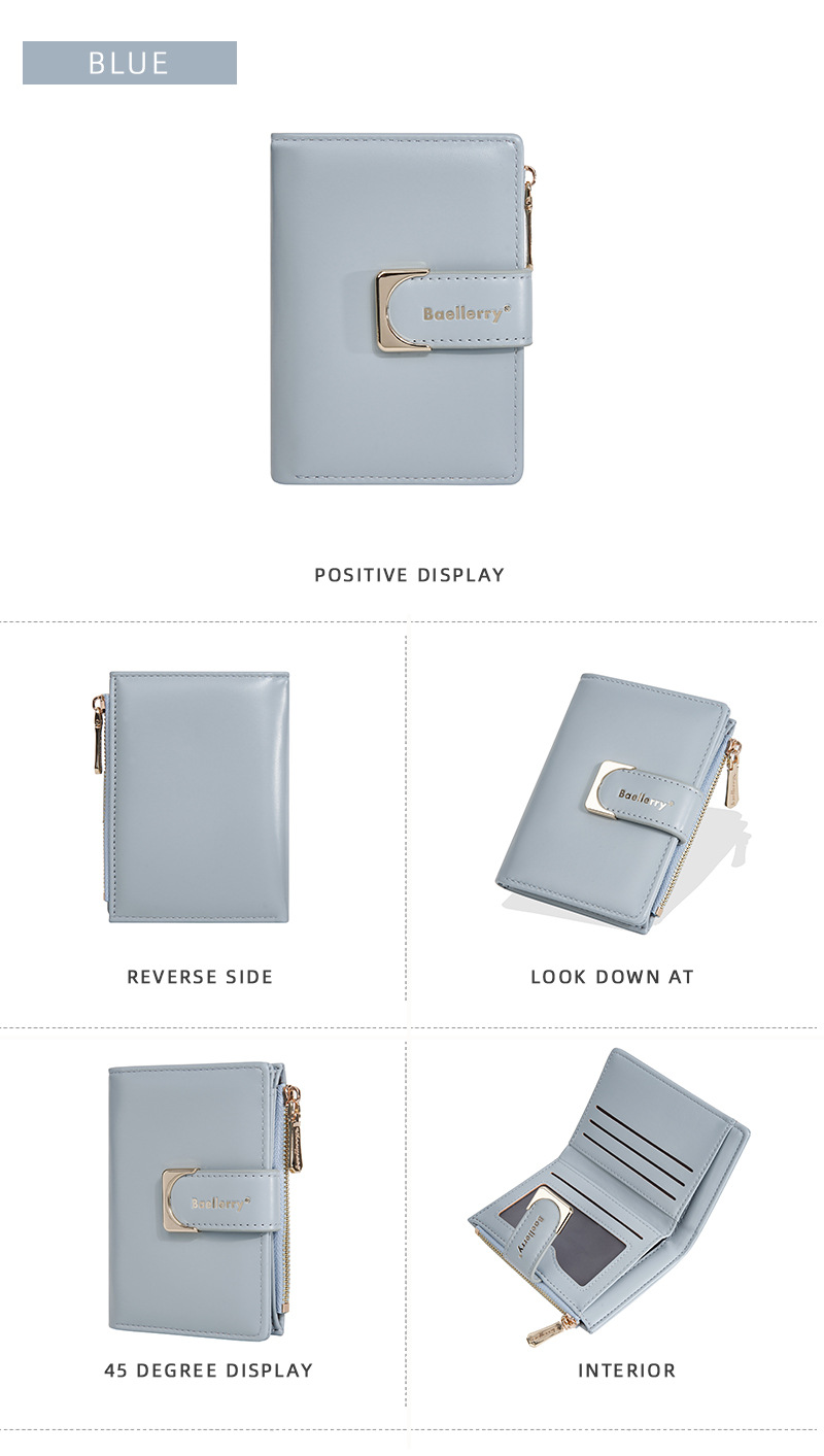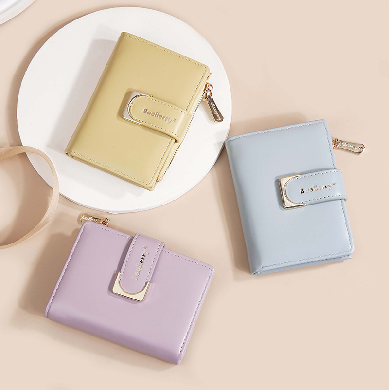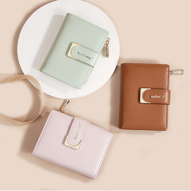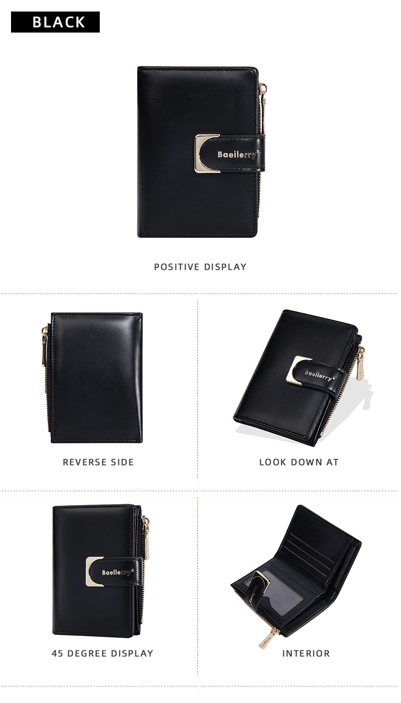 baellerry 여성용 지갑 크로스 보더 심플 솔리드 컬러 스냅 버튼 하이 엔드 다목적 지퍼 짧은 여성용 지갑