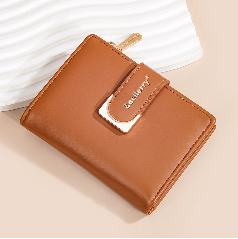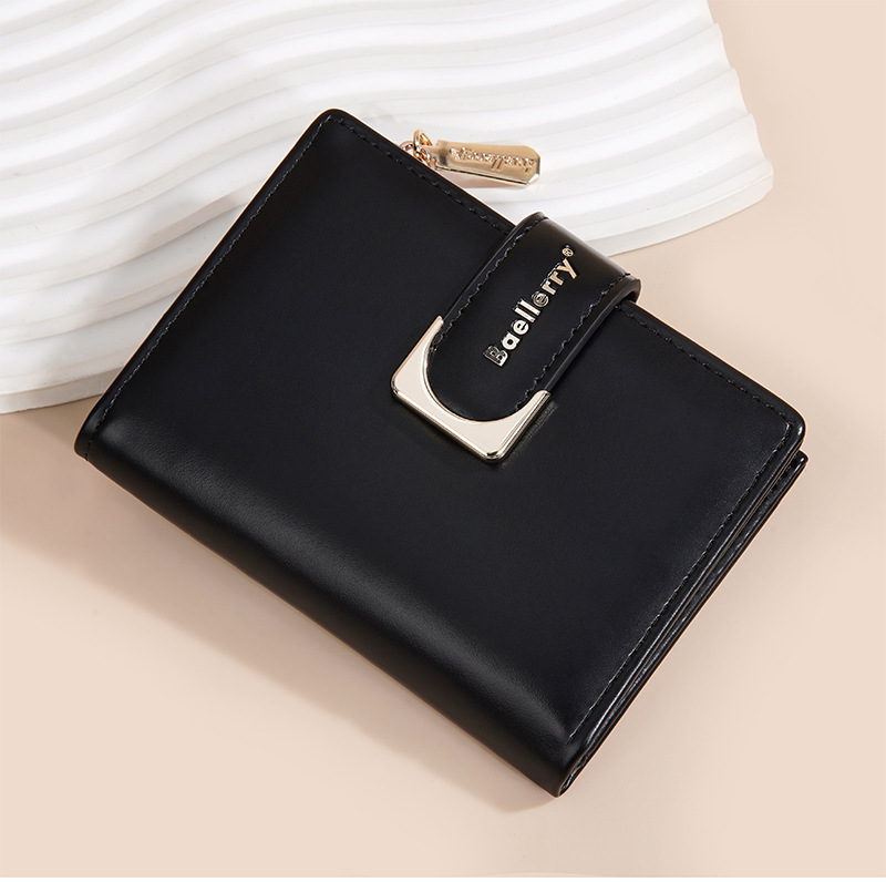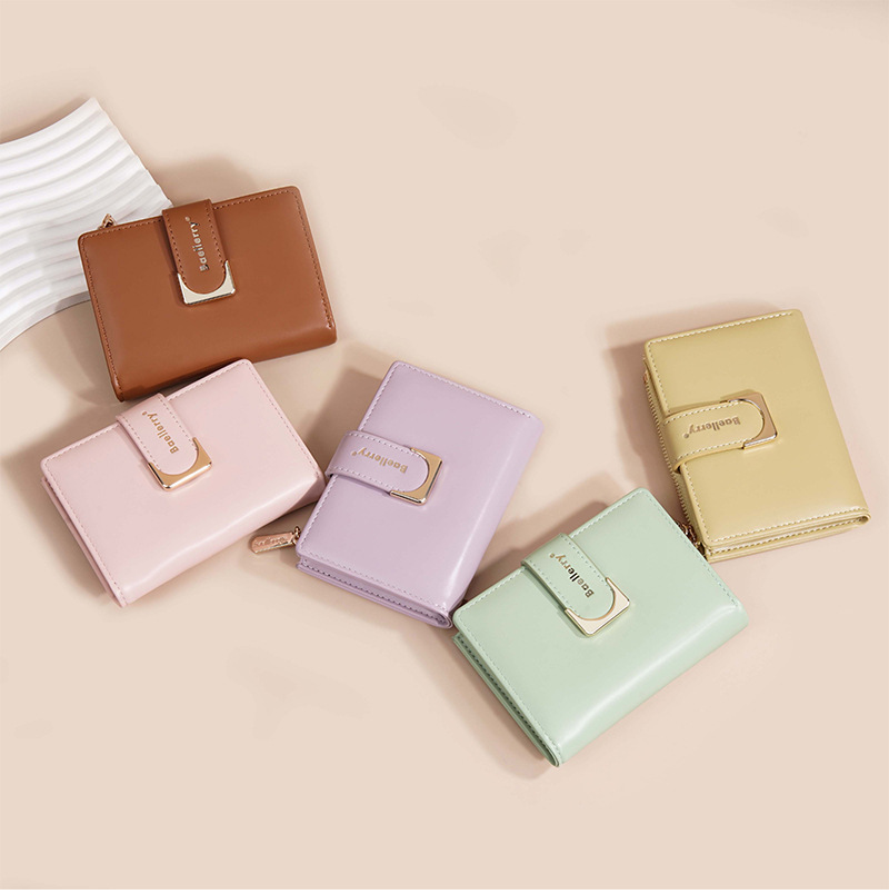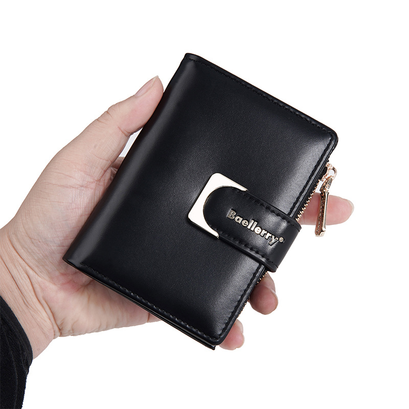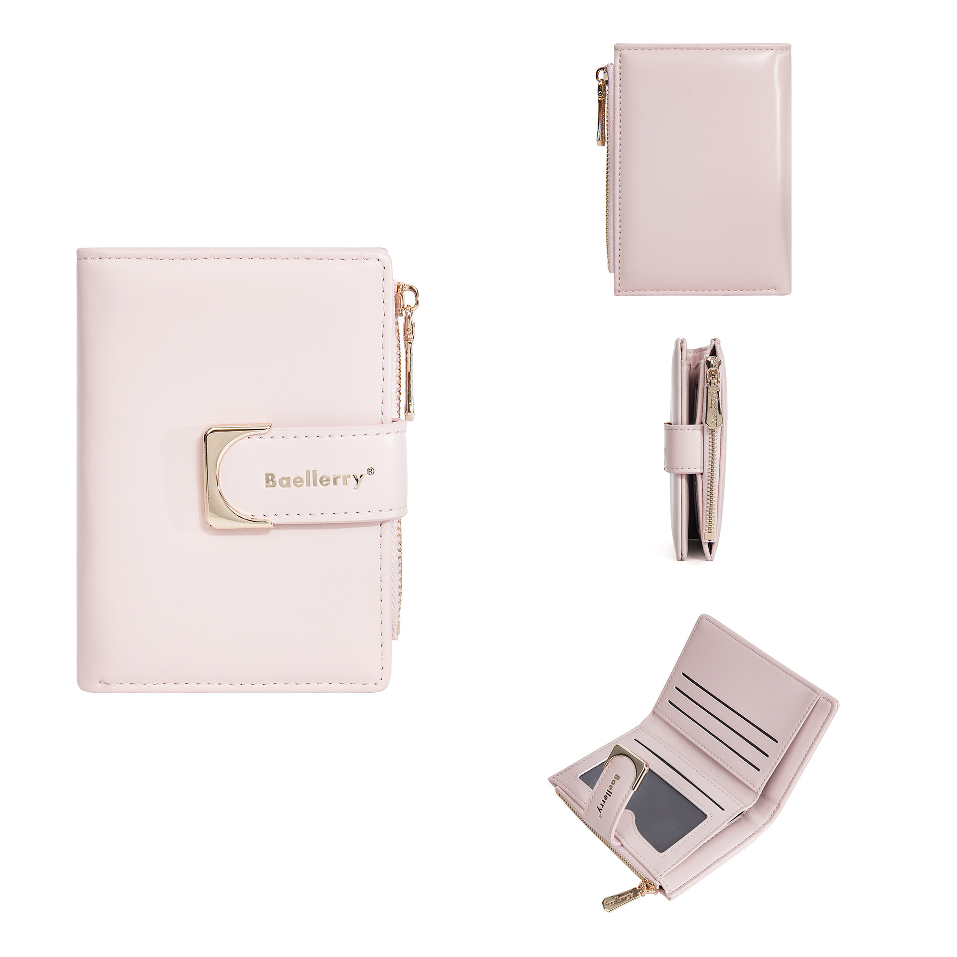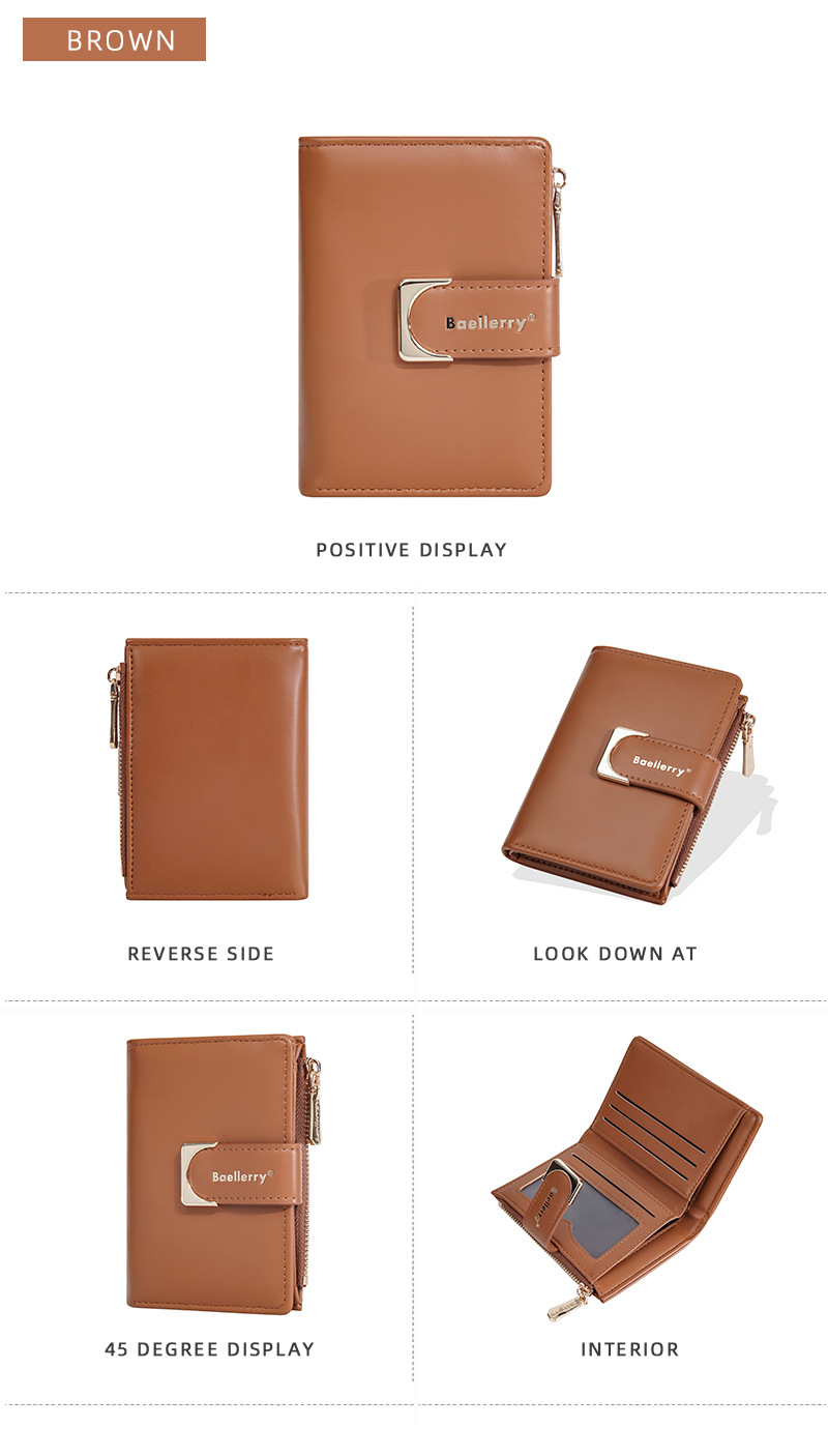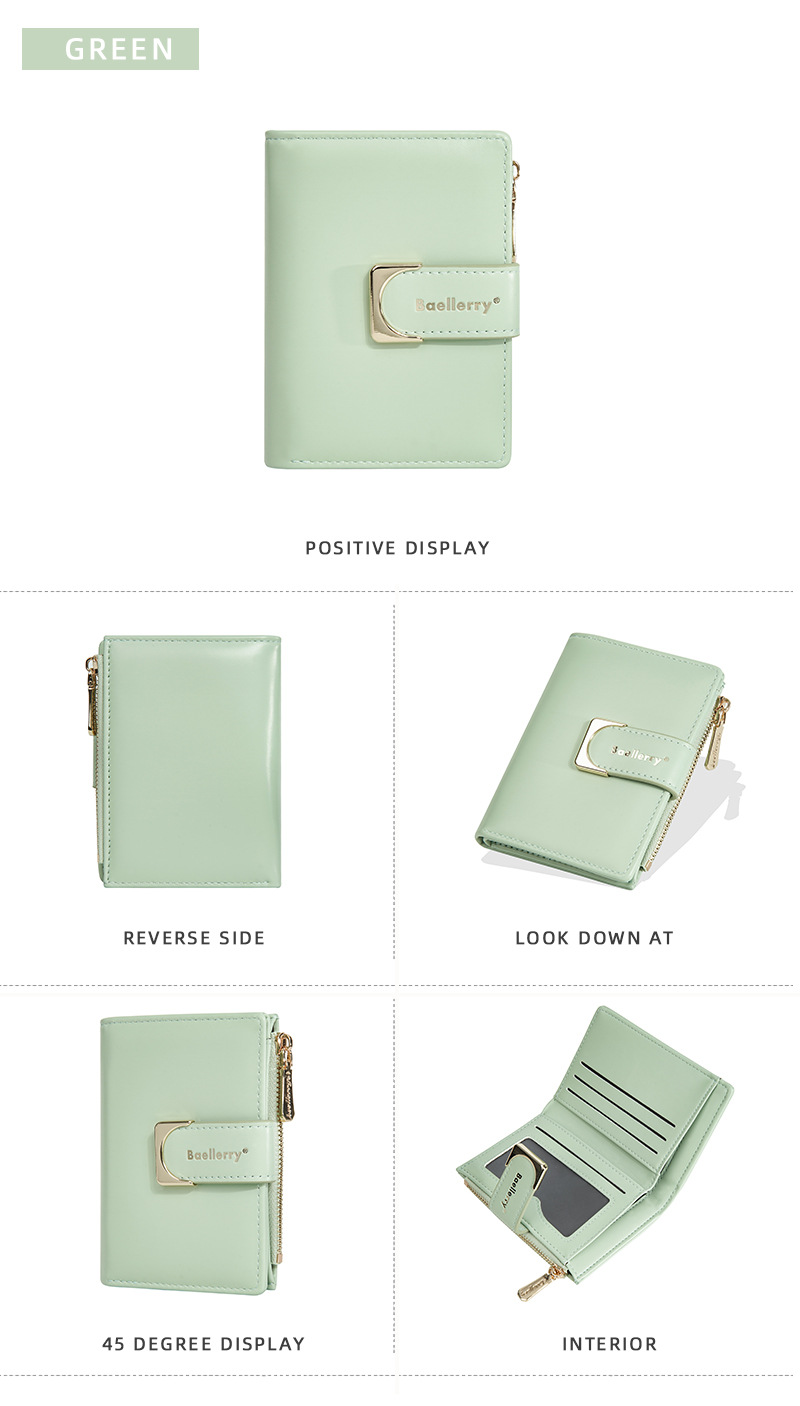baellerry 여성용 지갑 크로스 보더 심플 솔리드 컬러 스냅 버튼 하이 엔드 다목적 지퍼 짧은 여성용 지갑