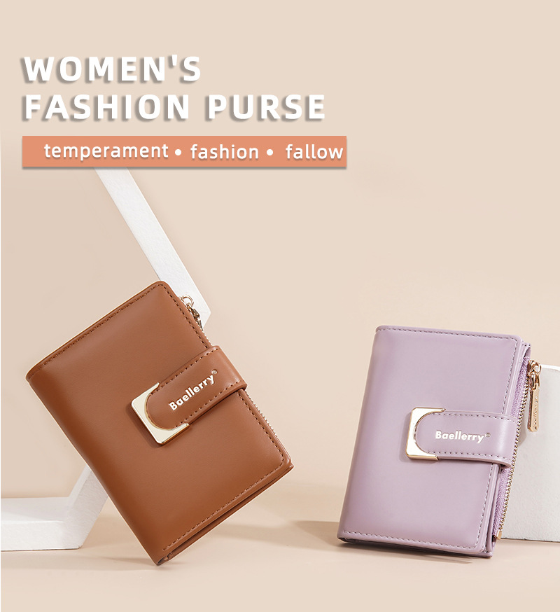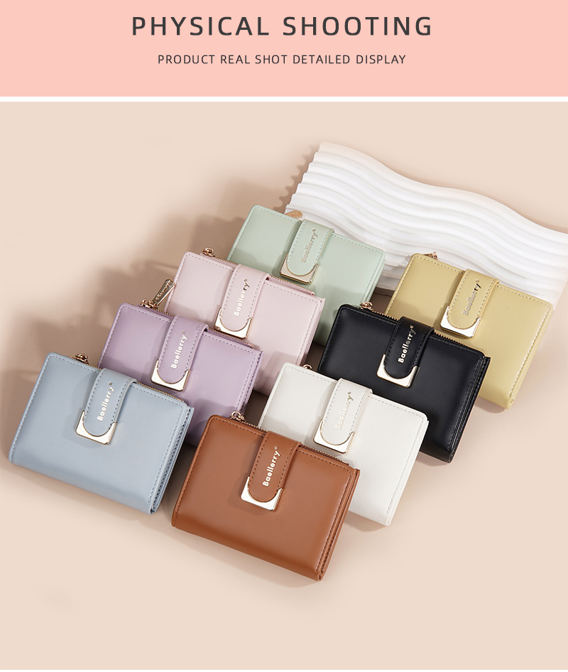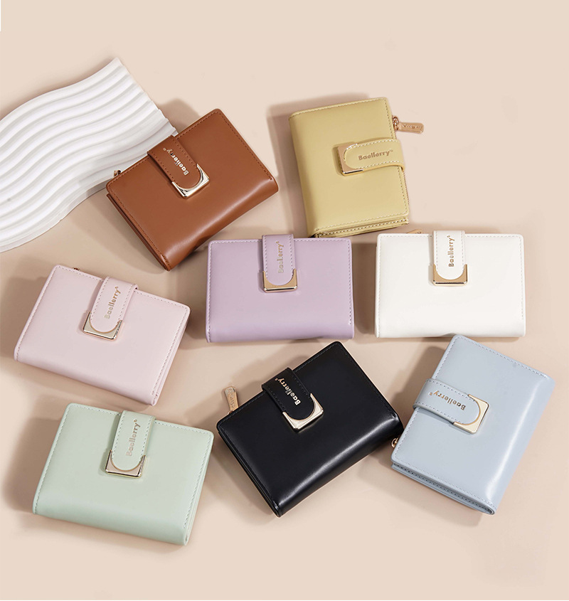 baellerry 여성용 지갑 크로스 보더 심플 솔리드 컬러 스냅 버튼 하이 엔드 다목적 지퍼 짧은 여성용 지갑스토어 가기
