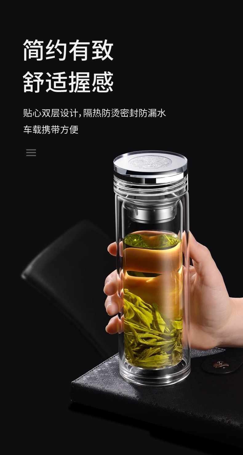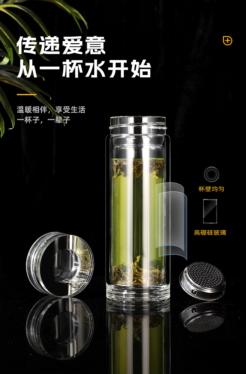 • 업그레이드된 두꺼운 크리스탈 컵 350ML + 차와 물 분리