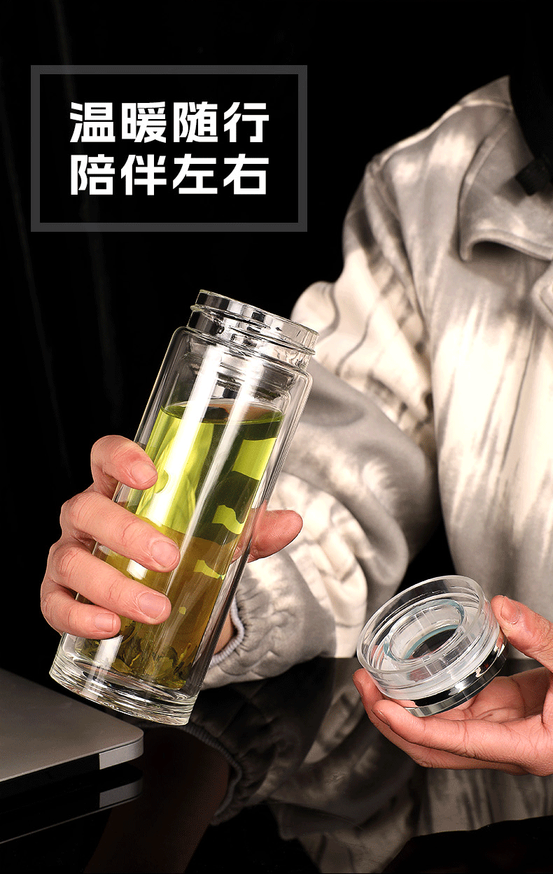 • 업그레이드된 두꺼운 크리스탈 컵 450ML + 차와 물 분리