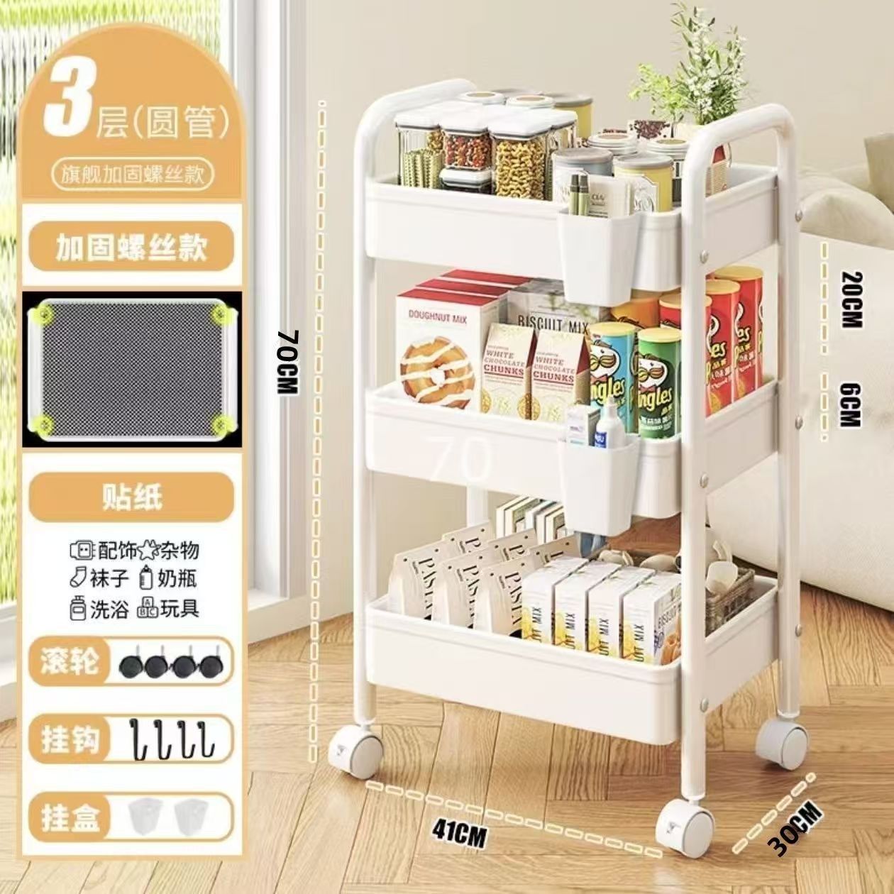 국경을 넘는 이동식 수납 선반, 다층 수납 선반, 주방 가정용 침실 캐비닛 이동식 간식 수납 선반