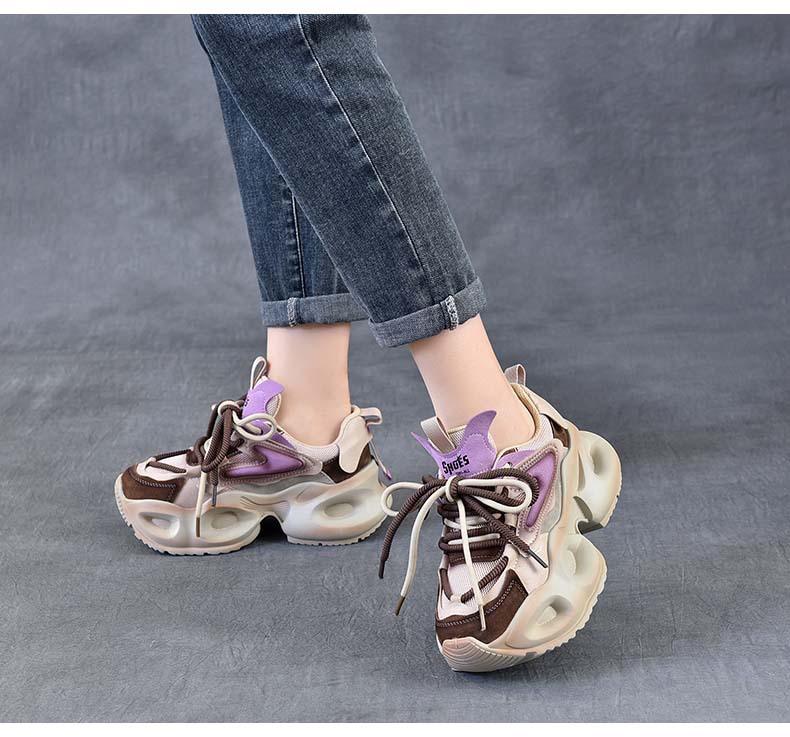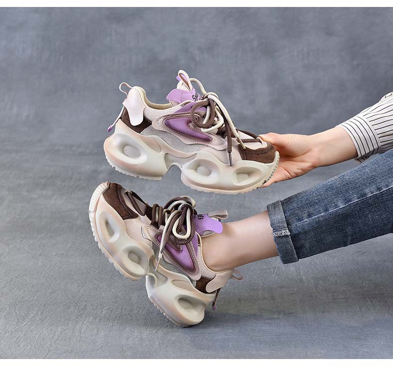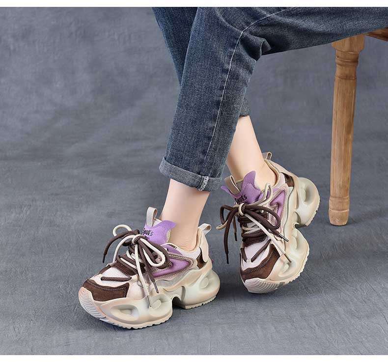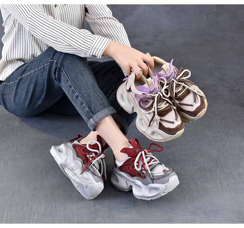 봄 새로운 정품 가죽 컬러 블록 빈티지 토레 신발 두꺼운 단독 경량 여행 신발 낮은 소프트 단독 신발 여성 신발스토어 가기