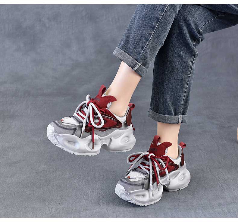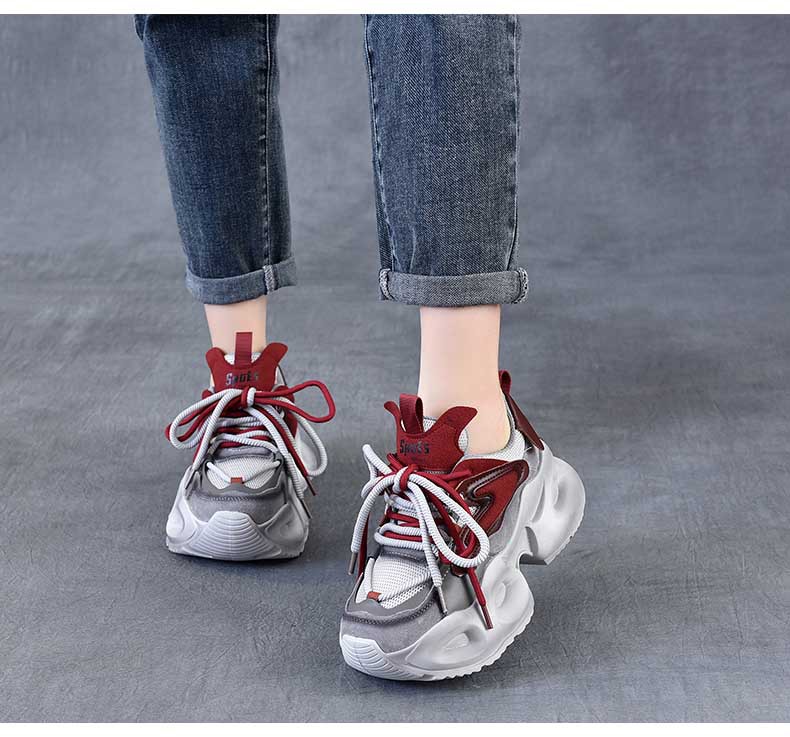 봄 새로운 정품 가죽 컬러 블록 빈티지 토레 신발 두꺼운 단독 경량 여행 신발 낮은 소프트 단독 신발 여성 신발