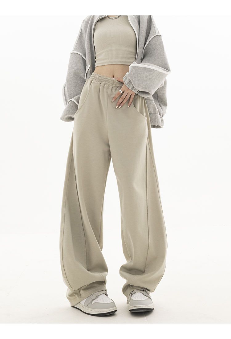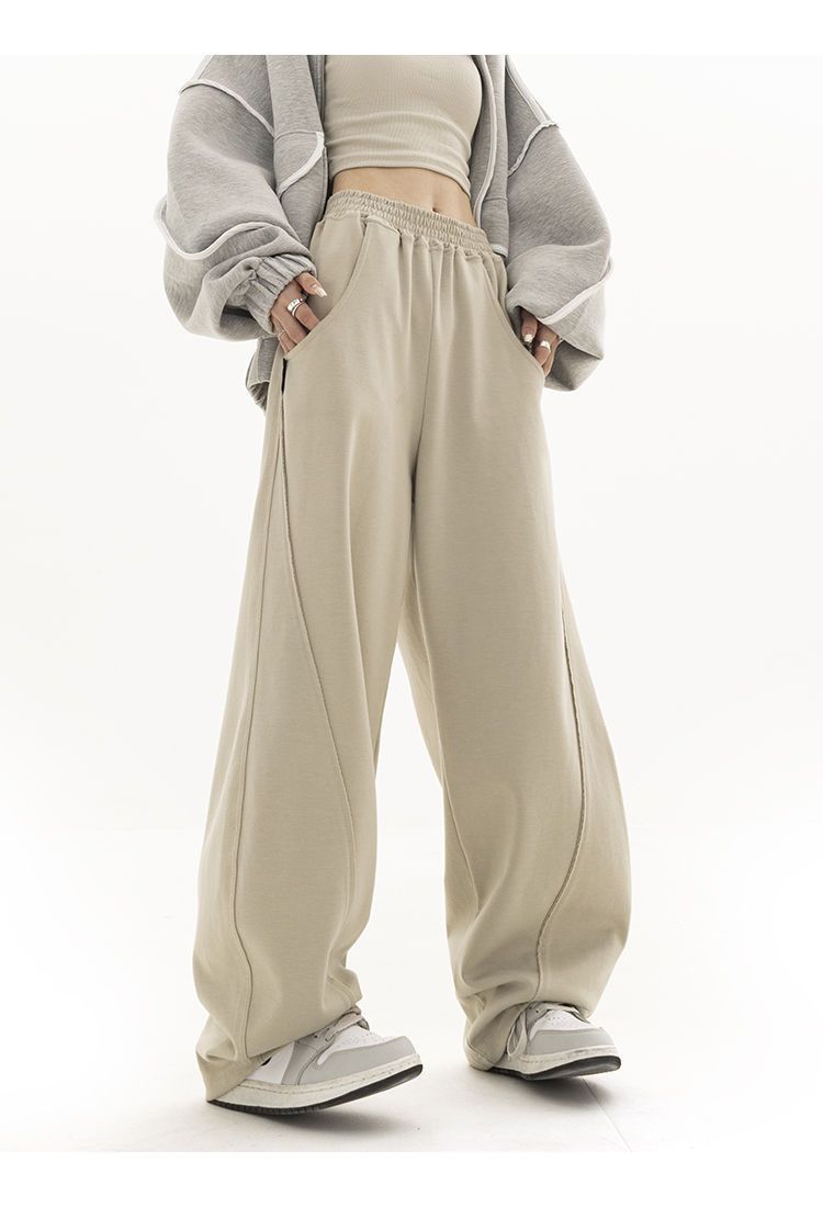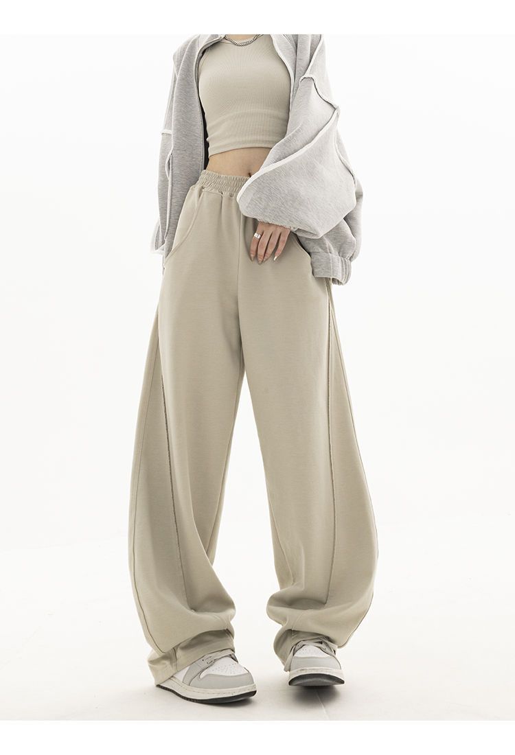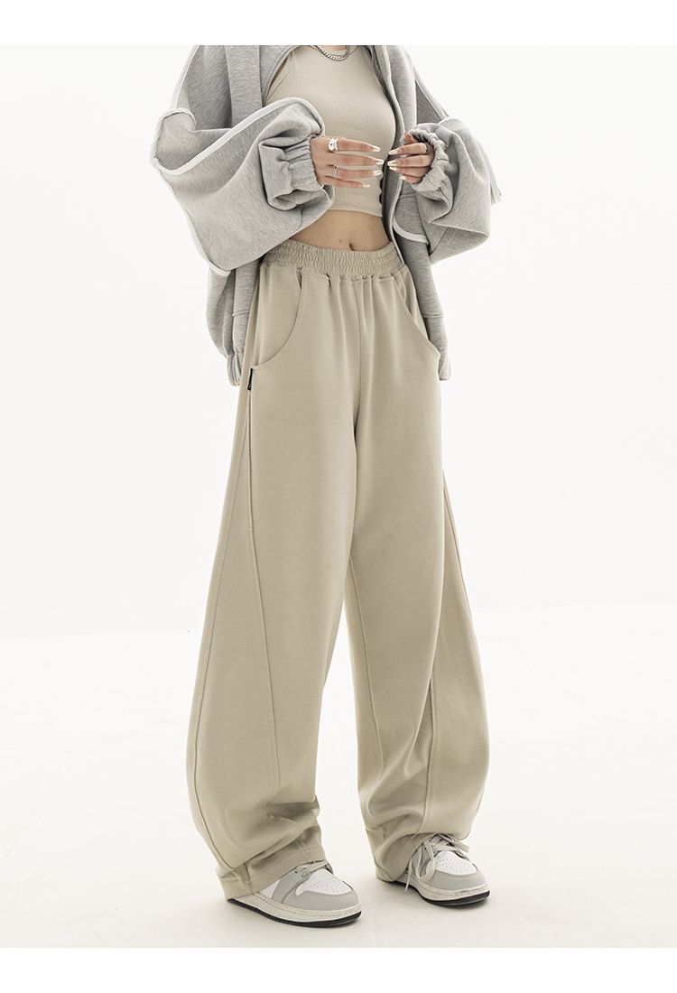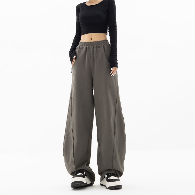 가을 2023 새로운 살구색 스포츠 바지 여자 여름 느슨한 운동복 바나나 팬츠 hiphop 느슨한 허리 와이드 나인 벨벳스토어 가기
