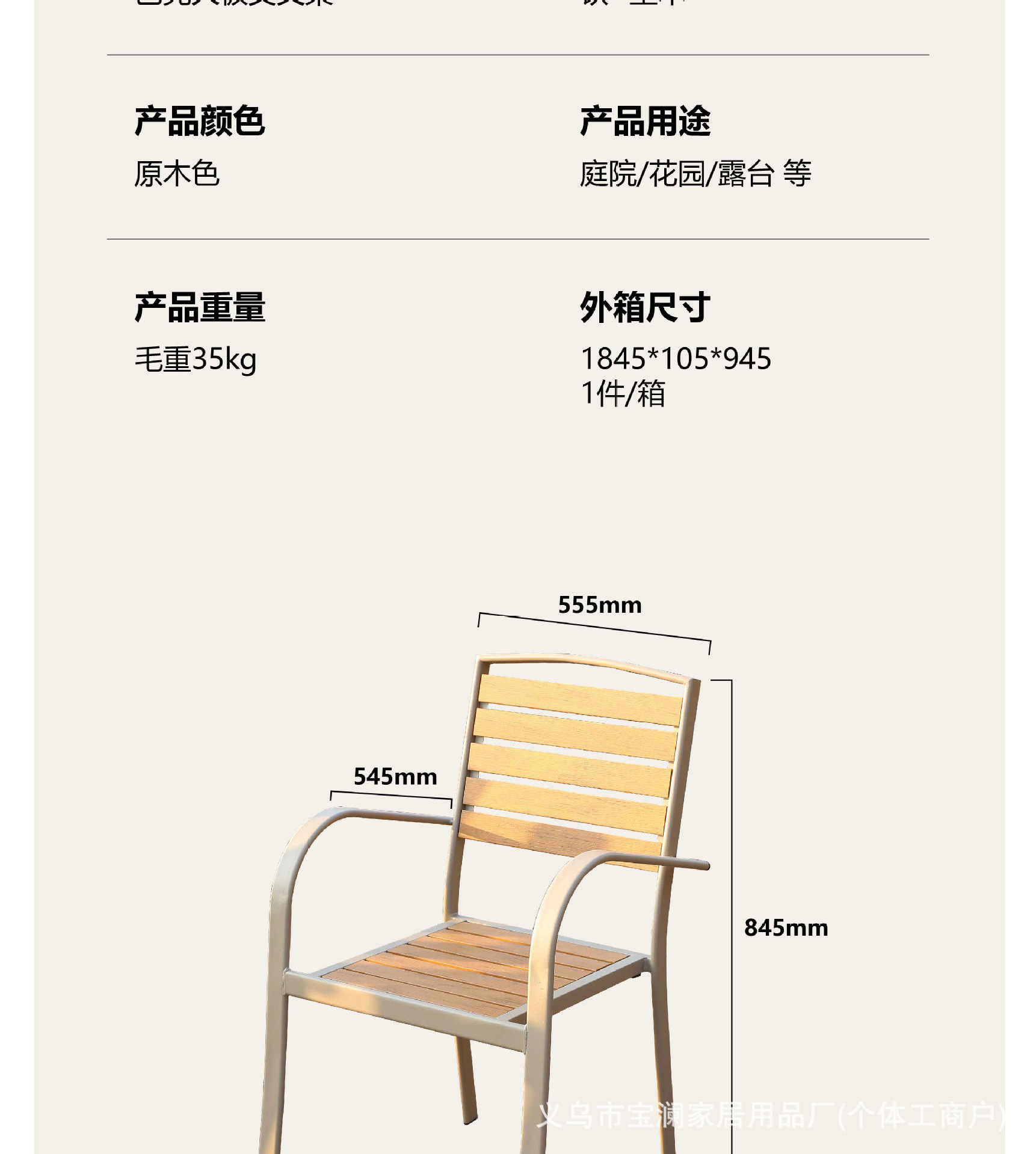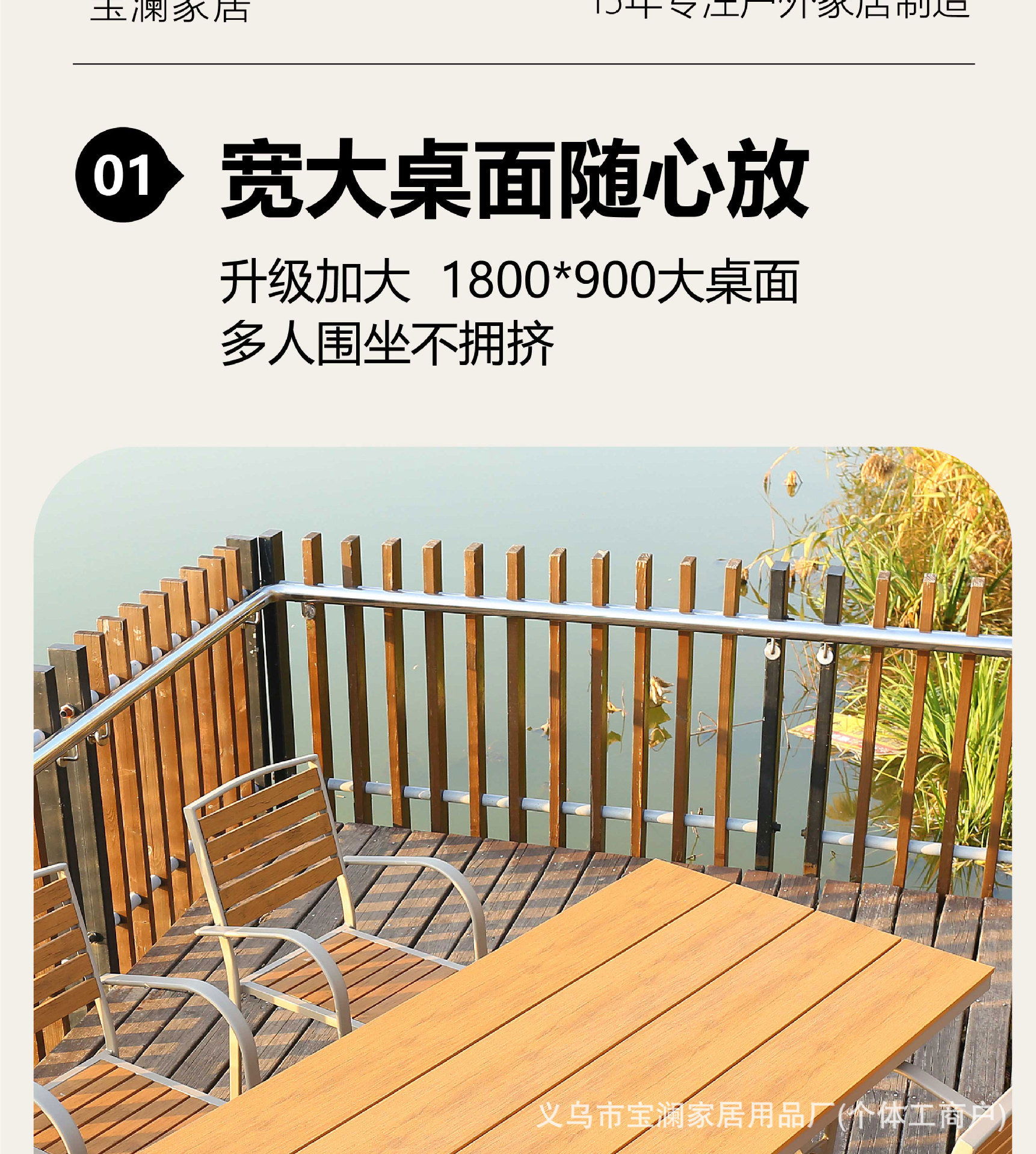 야외 안뜰 플라스틱 나무 테이블과 의자 조합 야외 레저 부식 목재 빌라 방수 태양 방지 식탁 및 의자 세트