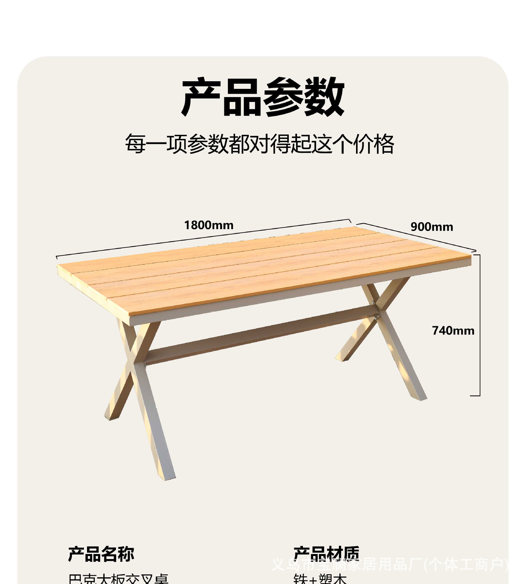 • 우드 컬러 180*90 대형 플레이트 크로스 알루미늄 테이블 1개 + 우드 컬러 벅 알루미늄 의자 6개