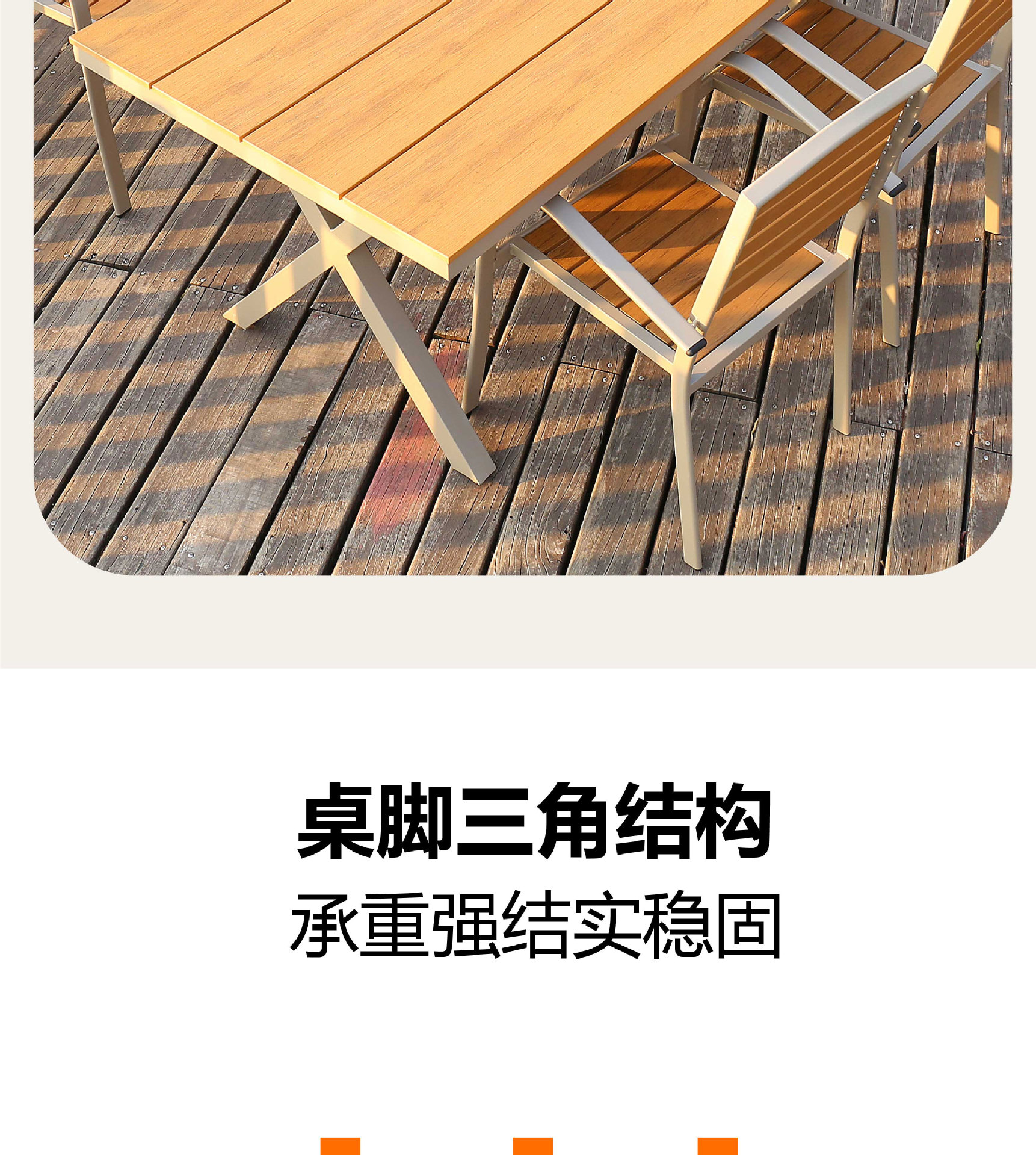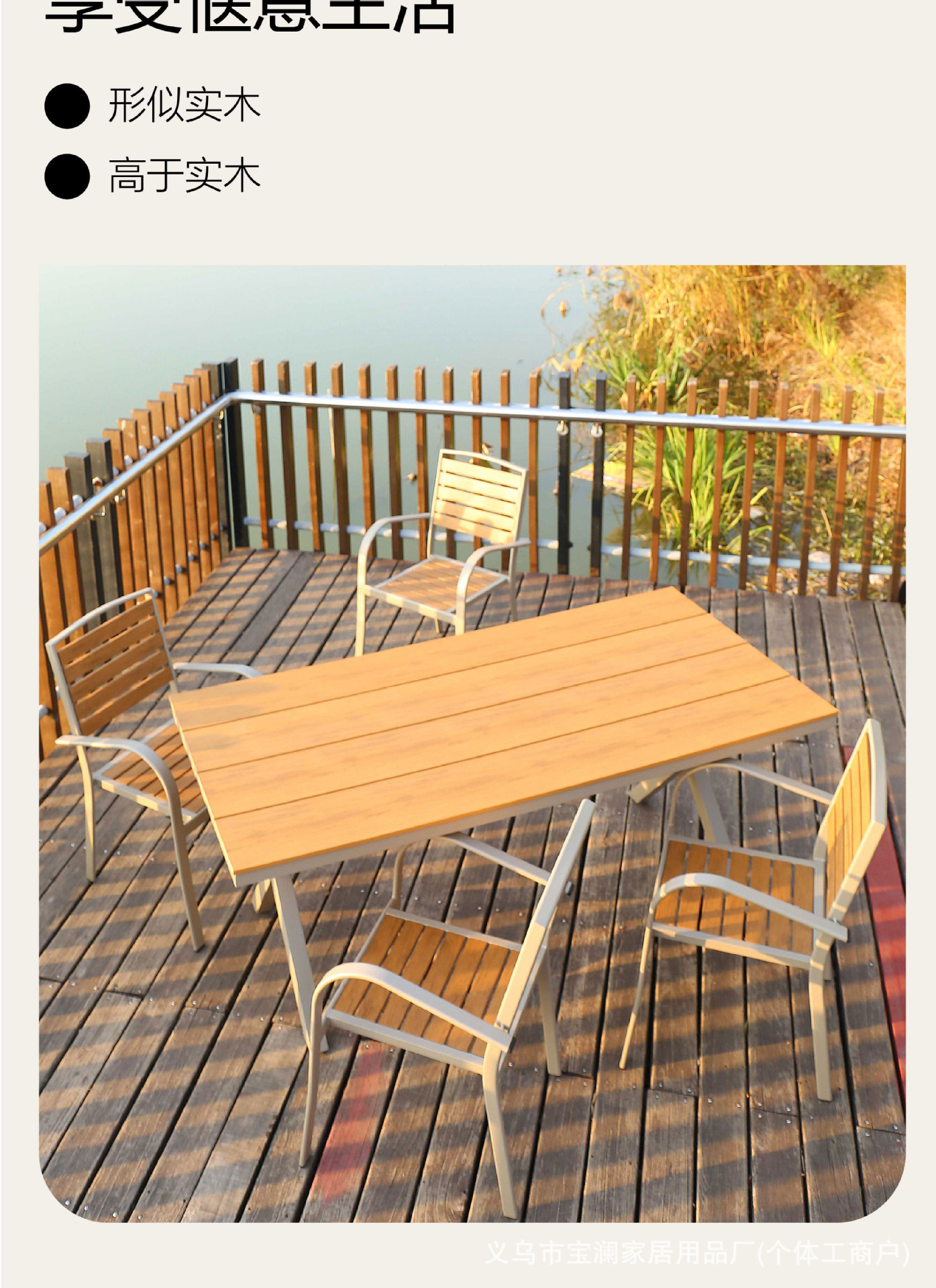 야외 안뜰 플라스틱 나무 테이블과 의자 조합 야외 레저 부식 목재 빌라 방수 태양 방지 식탁 및 의자 세트스토어 가기