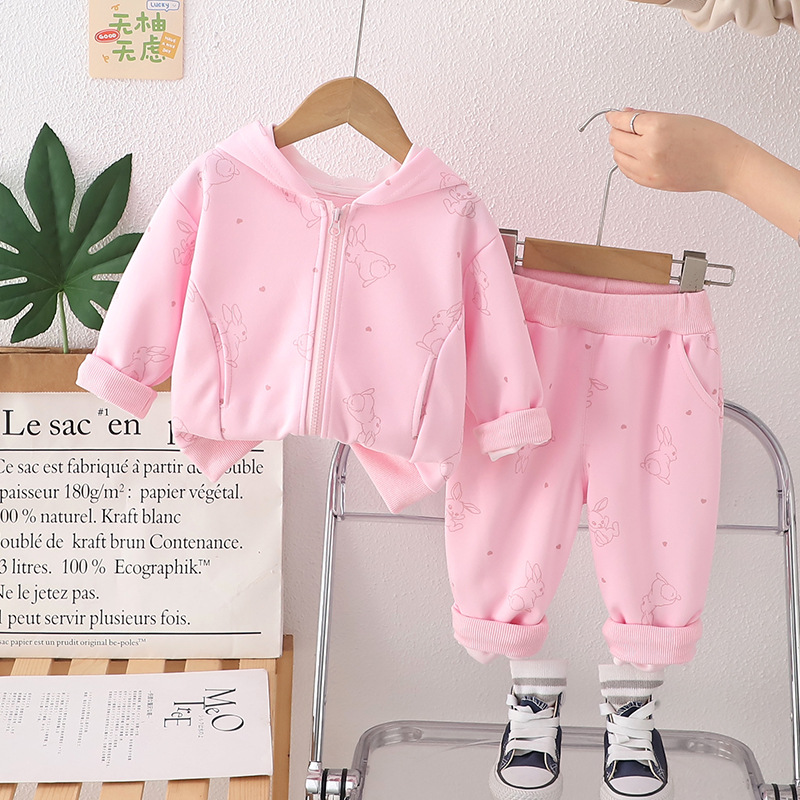 • 핑크/풀 프린트 버니 지퍼 셔츠/2피스 세트 3H