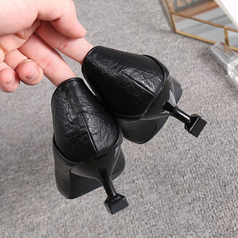 스튜어디스 롱 스테이션 작업 신발 블랙 인터뷰 호텔 전문 신발 진짜 부드러운 가죽 하이힐 가죽 신발 봄과 가을 두꺼운 힐 여성 나인 벨벳스토어 가기