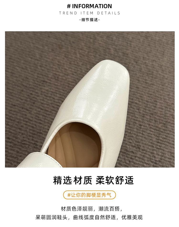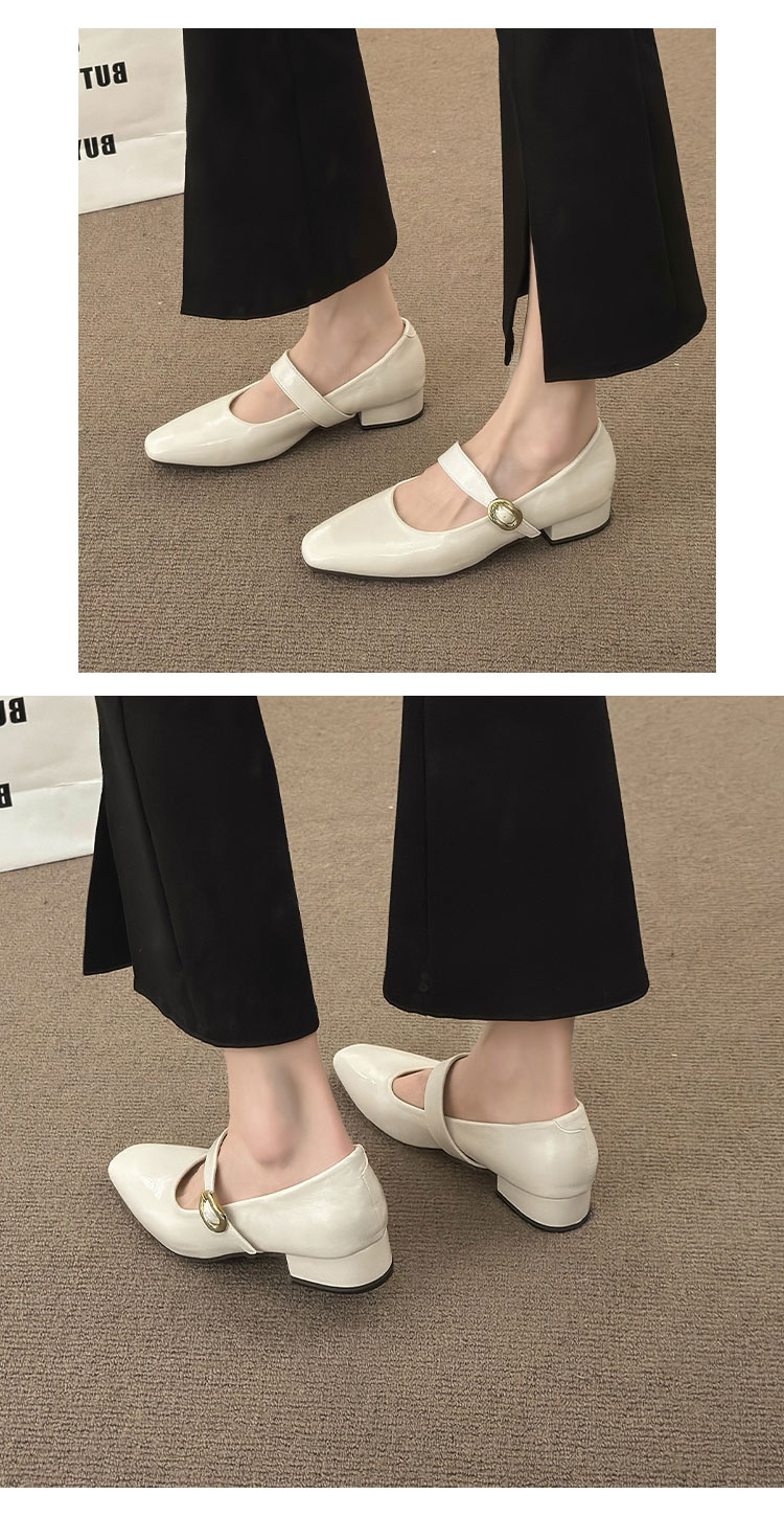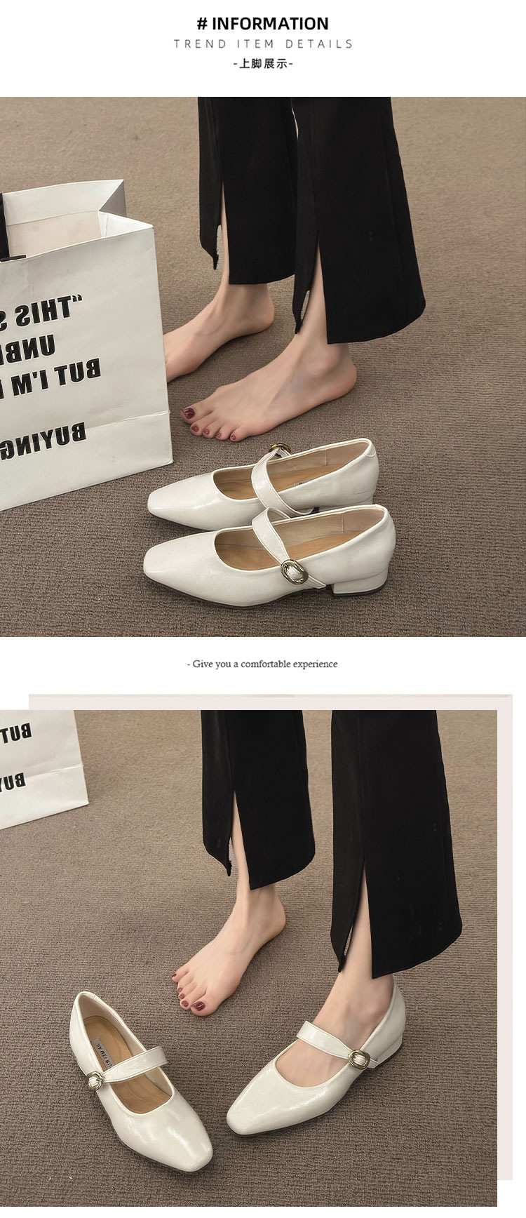 프랑스 스타일 우아한 화이트 메리 제인 작은 가죽 신발 여성의 2025 봄 새로운 얕은 입 광장 발가락 두꺼운 단층 신발스토어 가기