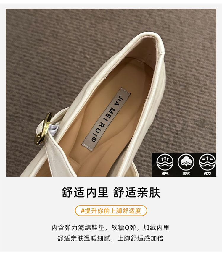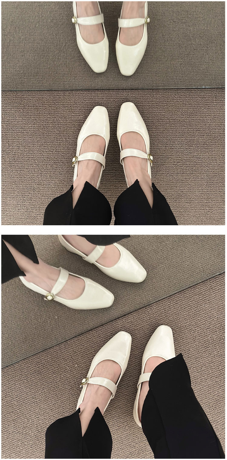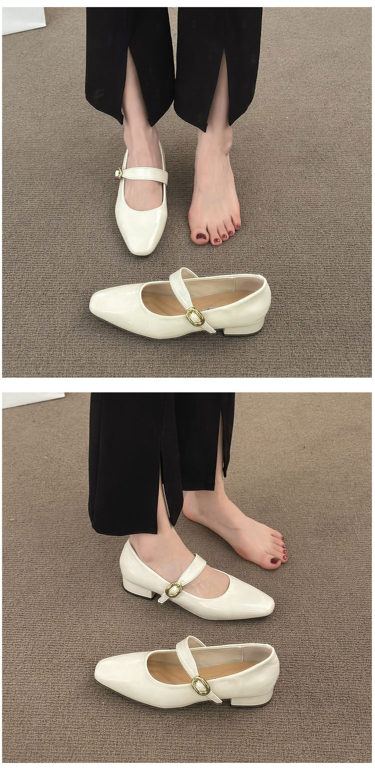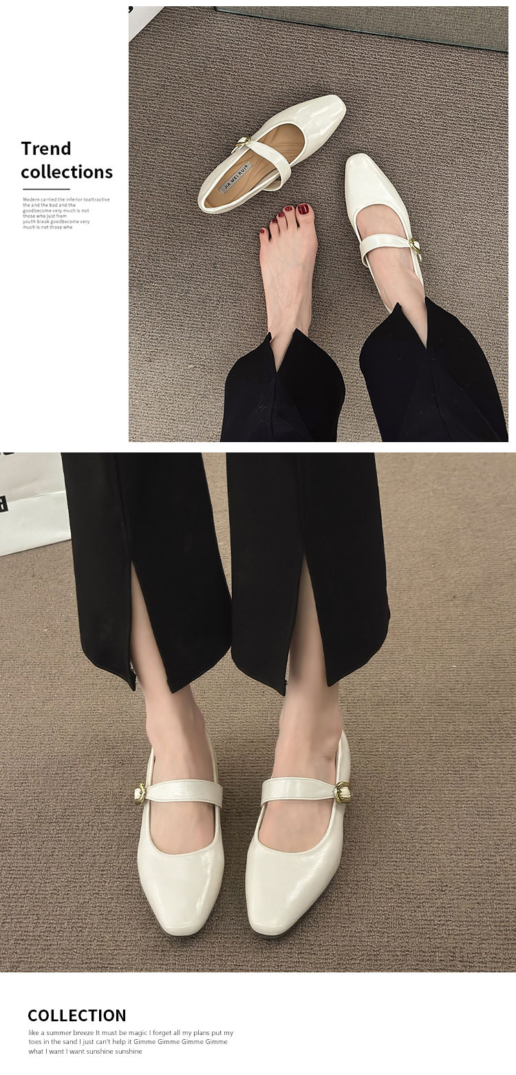 프랑스 스타일 우아한 화이트 메리 제인 작은 가죽 신발 여성의 2025 봄 새로운 얕은 입 광장 발가락 두꺼운 단층 신발스토어 가기