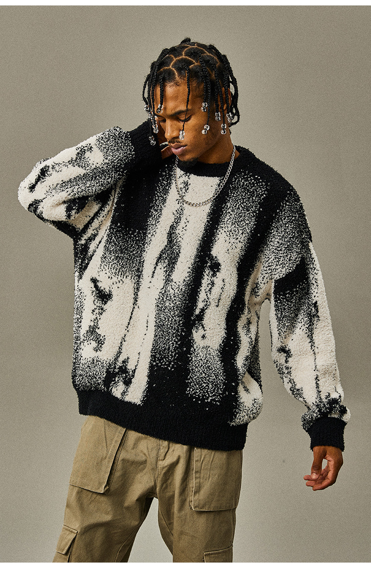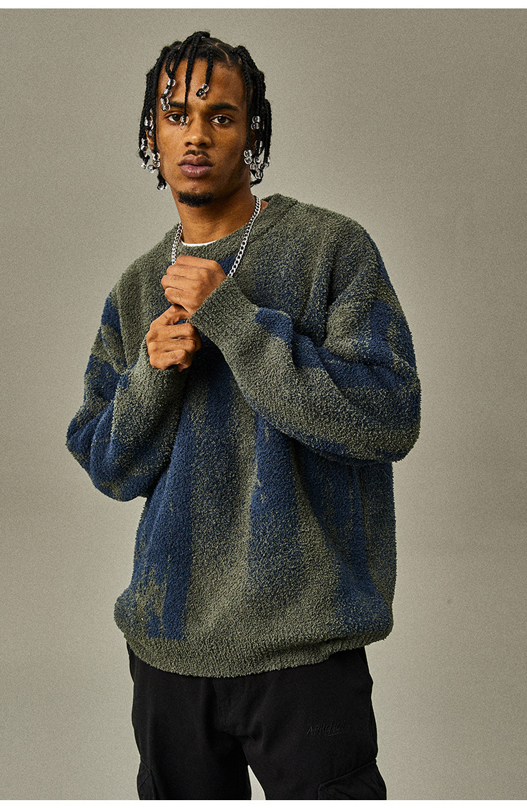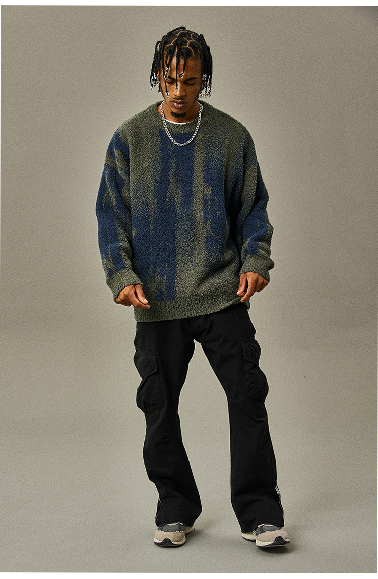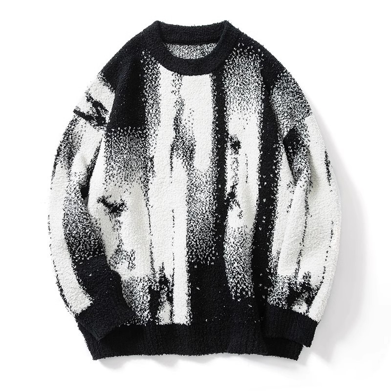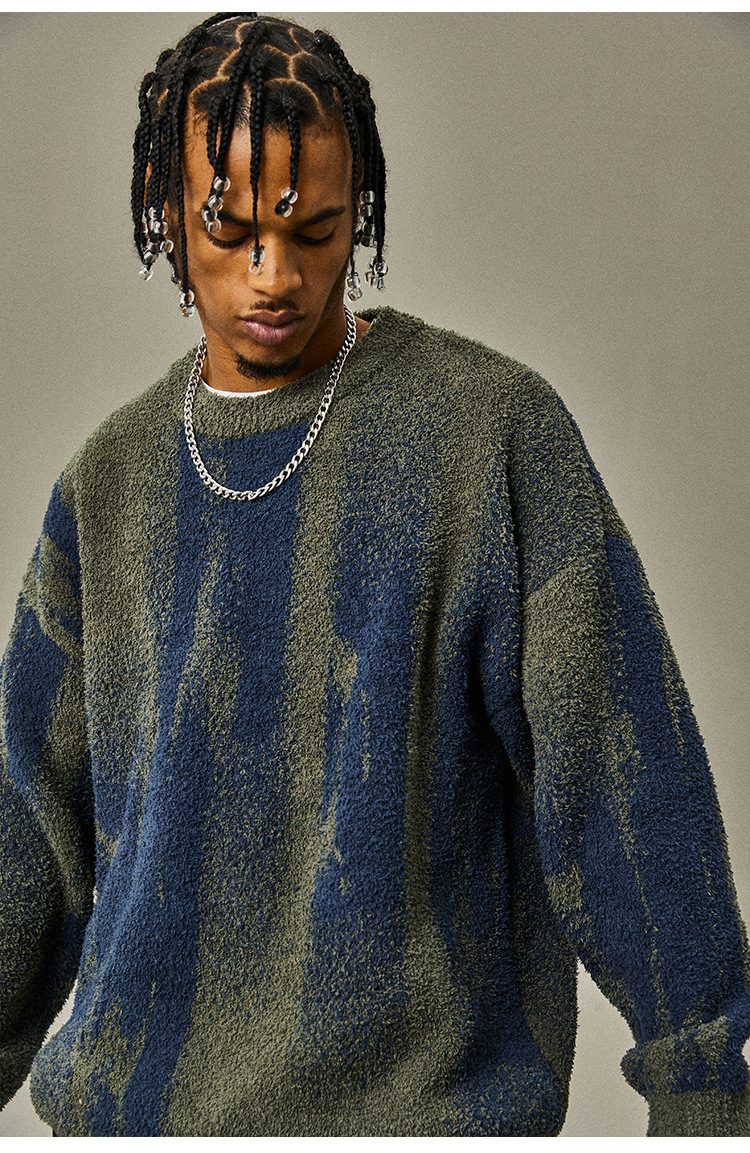 명암 줄무늬 스웨터 남자의 가을과 겨울 새로운 유행 느슨한 스웨터 커플의 니트 베이스 셔츠 톱 남자스토어 가기