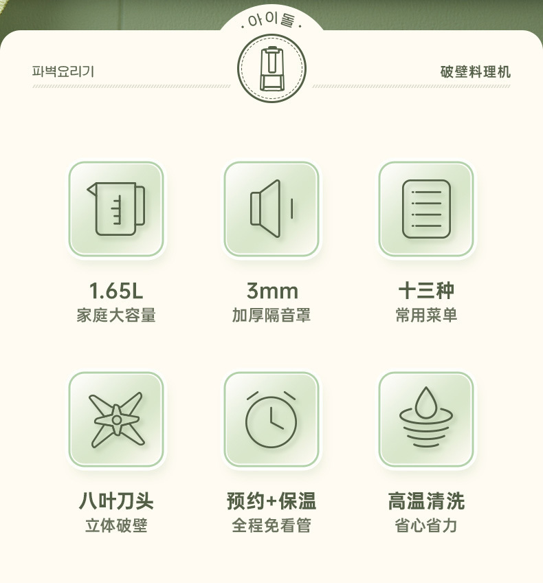 한국 현대 벽 깨는 기계 커버 라이트 사운드 소프트 사운드 콩 우유 요리 기계 벽 깨는 기계 빛 소리 대두유를 가진 대용량