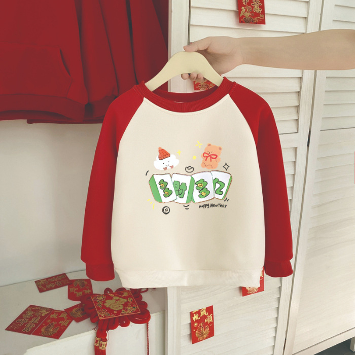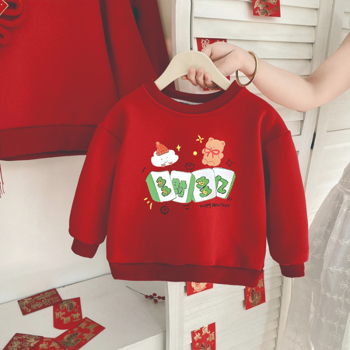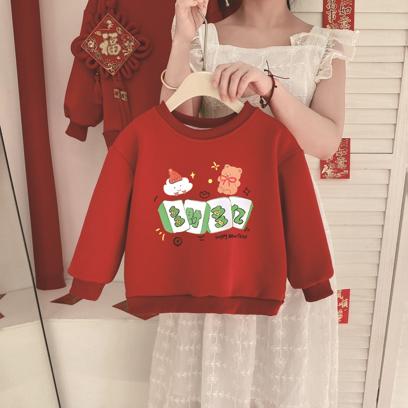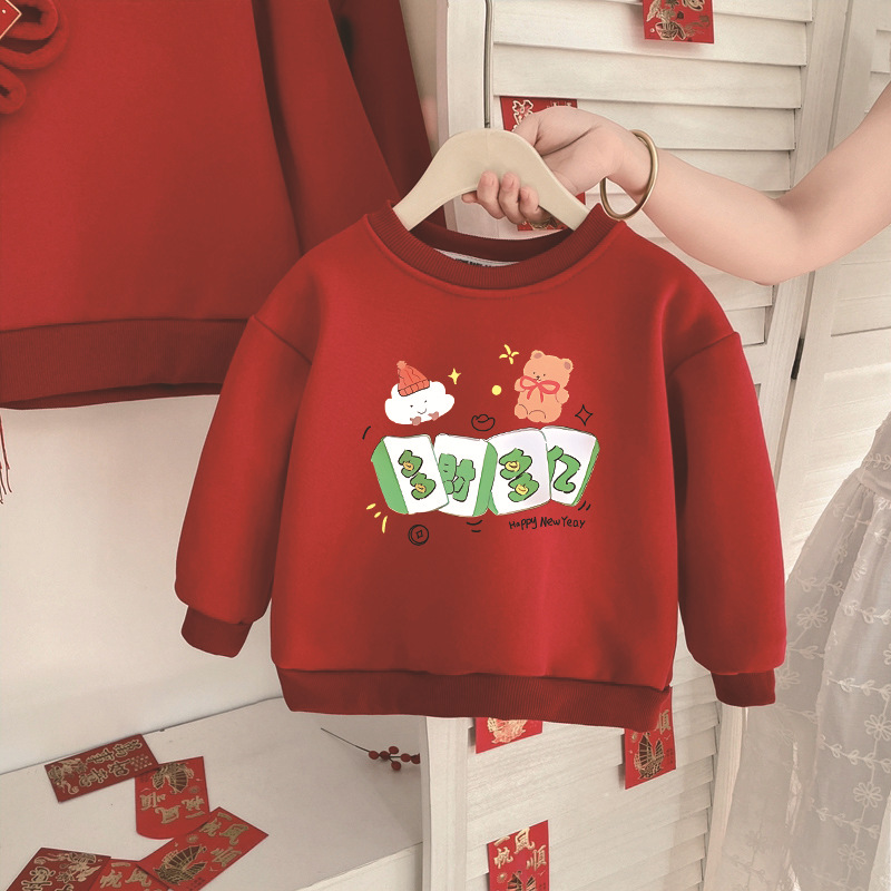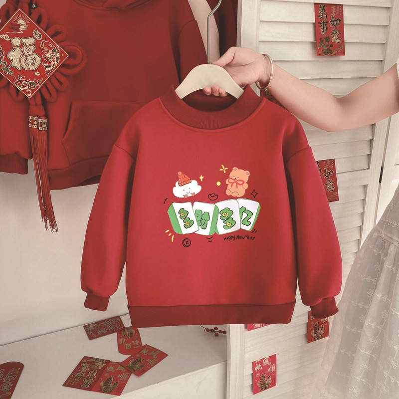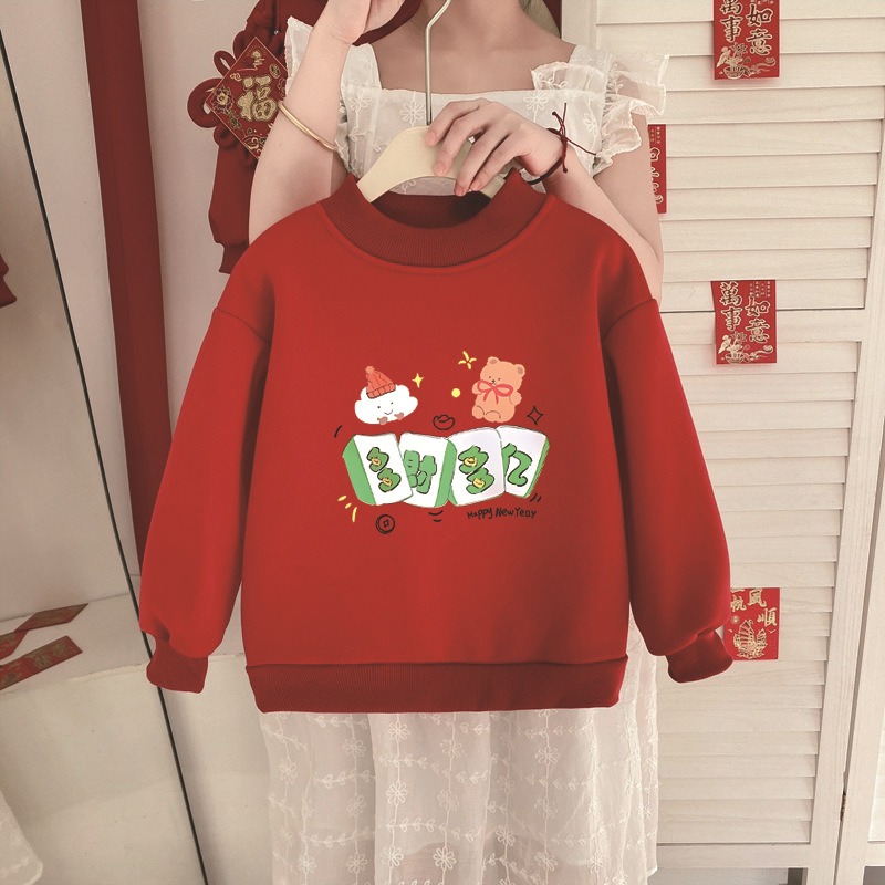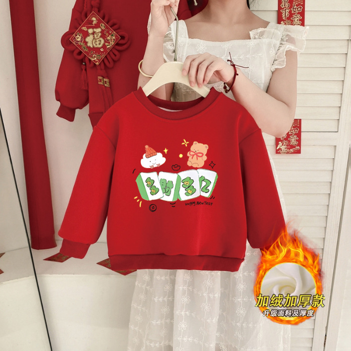 가을과 겨울을위한 소녀들의 조끼 2025 새로운 소녀들의 축제 새해 인사복 어린이 기모 두껍게 붉은 둥근 목 재킷스토어 가기