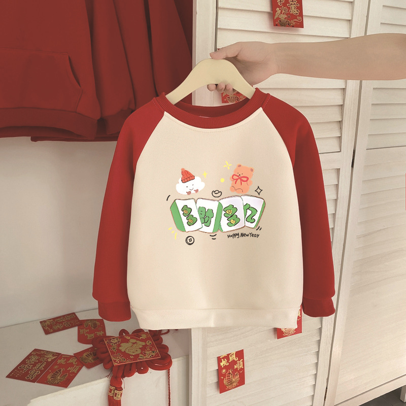 • 라운드넥 레드 스웨트셔츠(벨벳 없음)