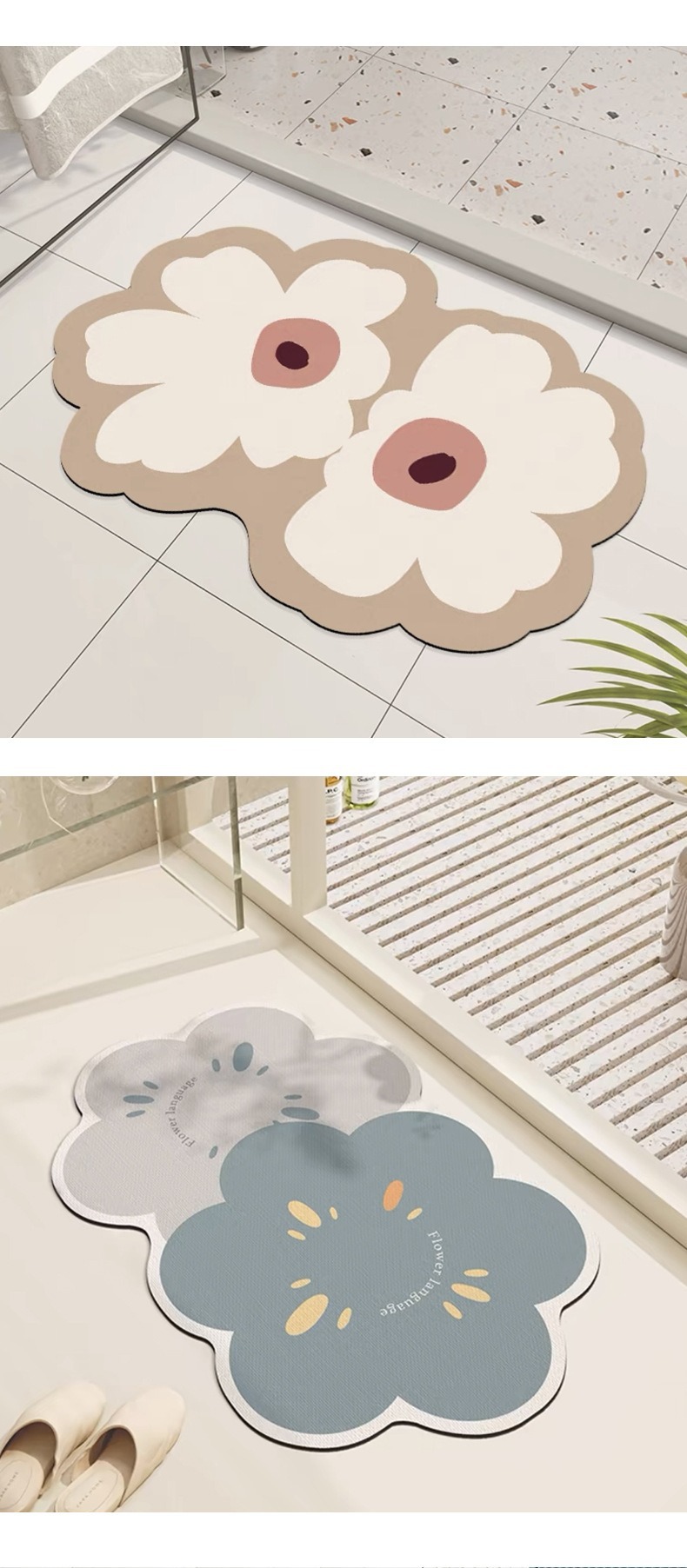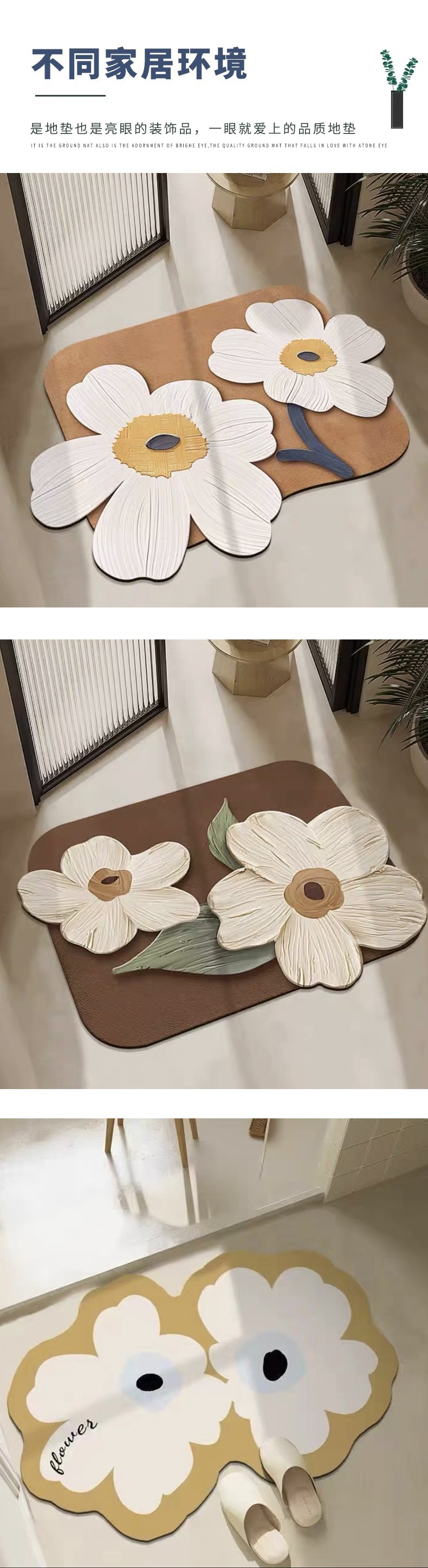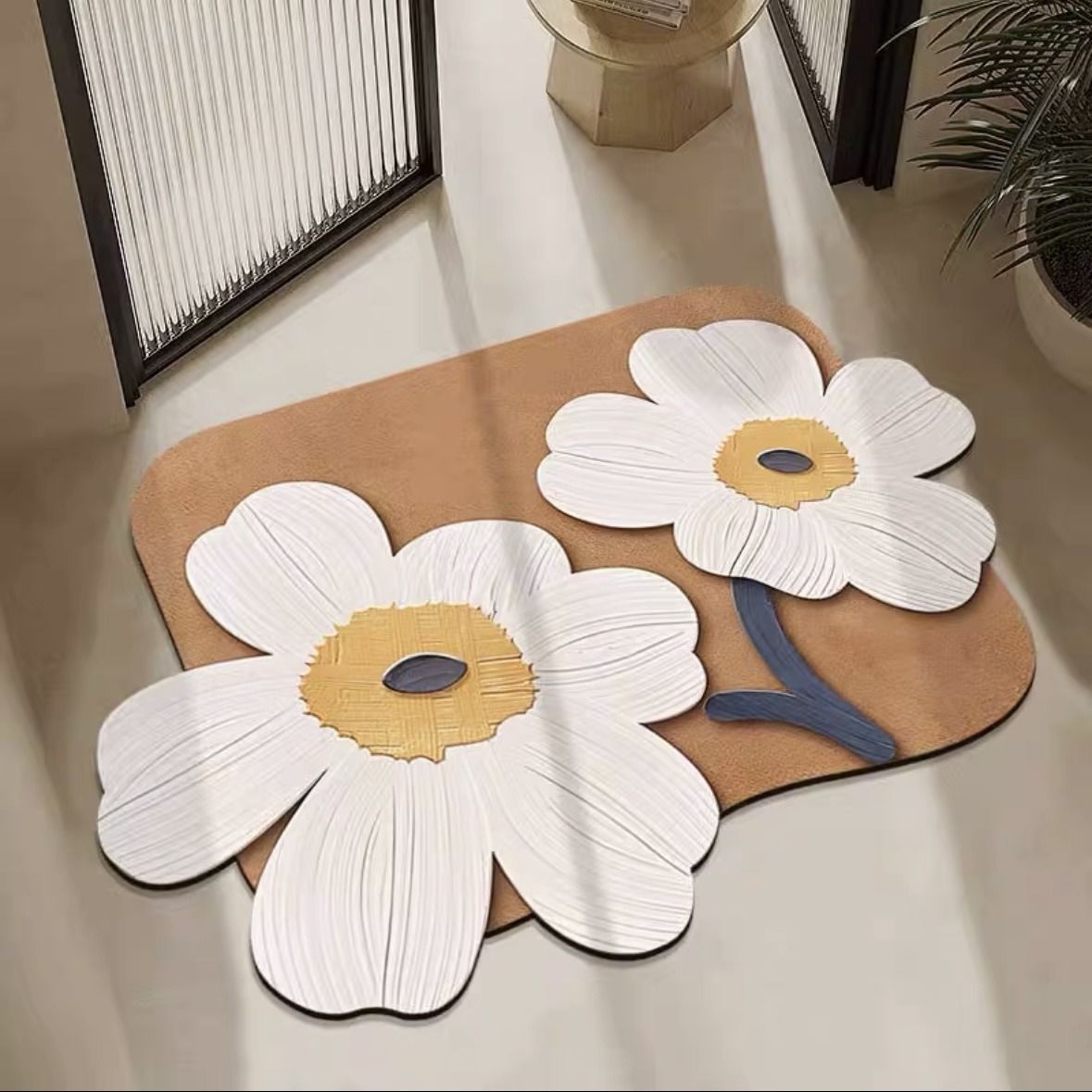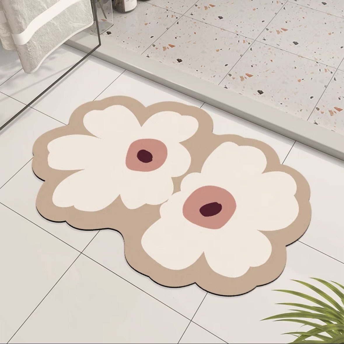목가적 인 꽃 욕실 Diatom 진흙 매트 욕실 문 물 흡수성 빠른 건조 발 매트 미끄럼 이질 진흙 매트