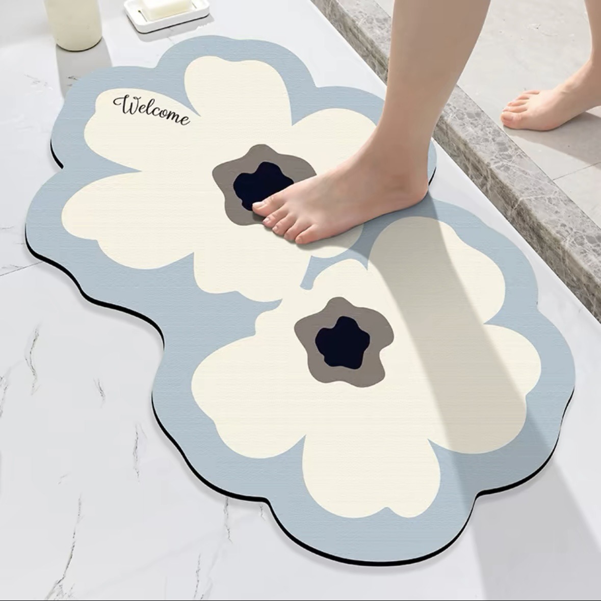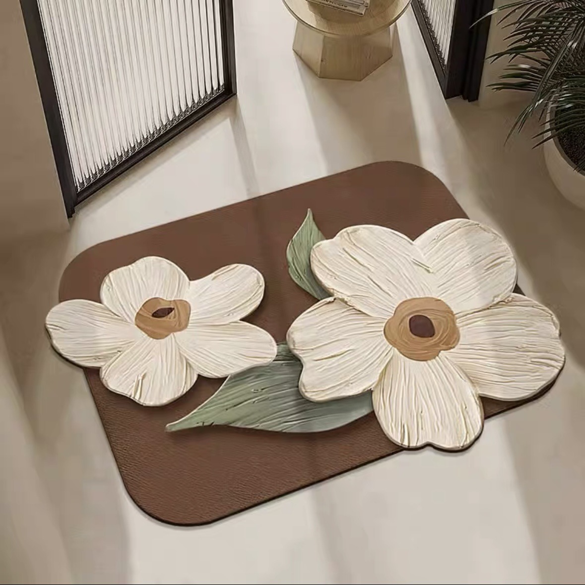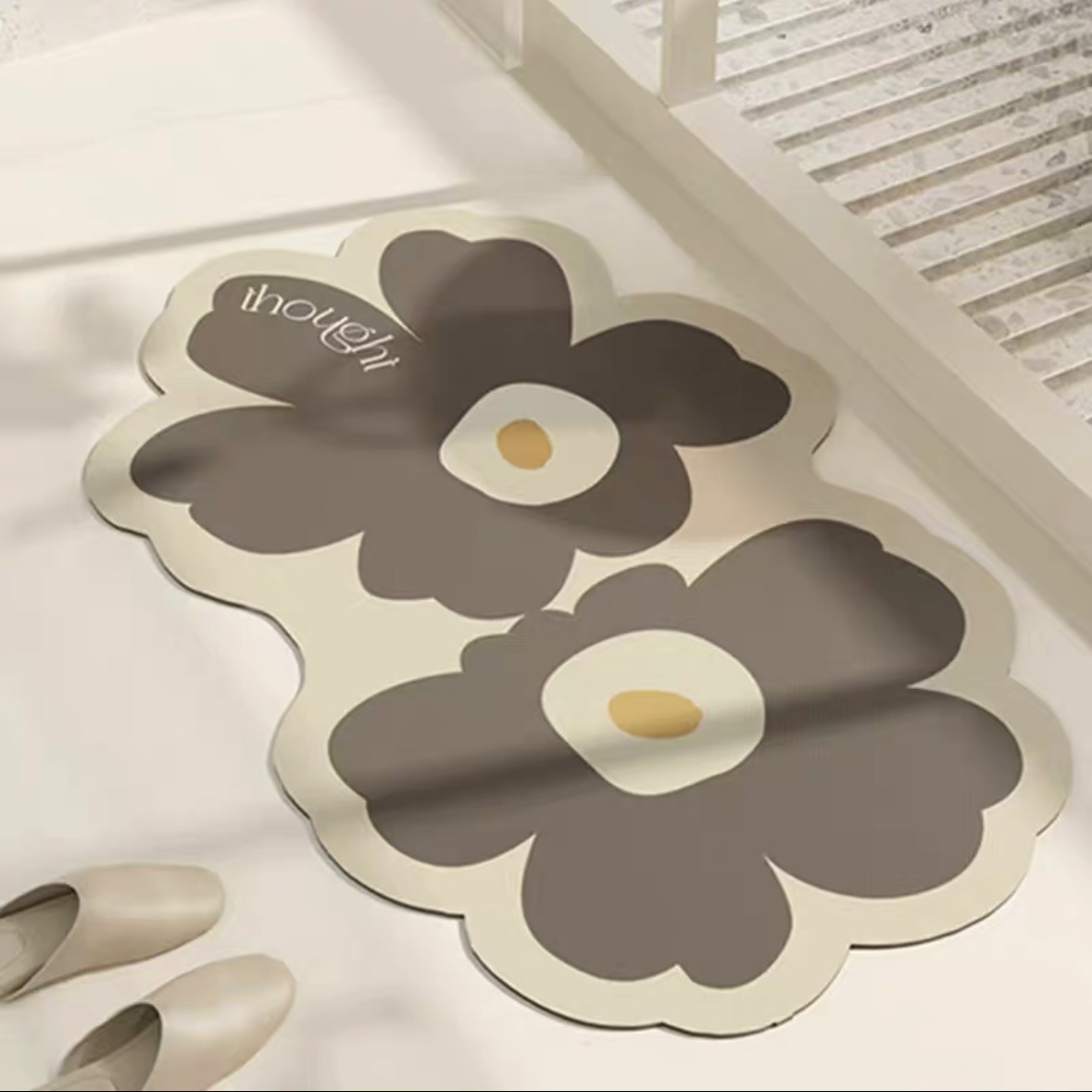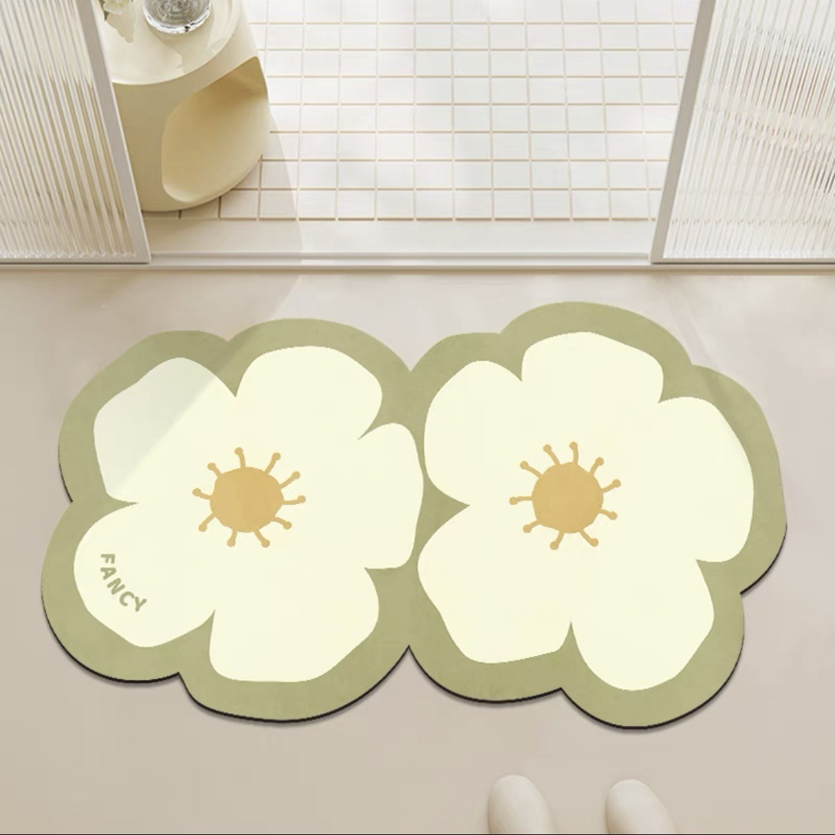 목가적 인 꽃 욕실 Diatom 진흙 매트 욕실 문 물 흡수성 빠른 건조 발 매트 미끄럼 이질 진흙 매트