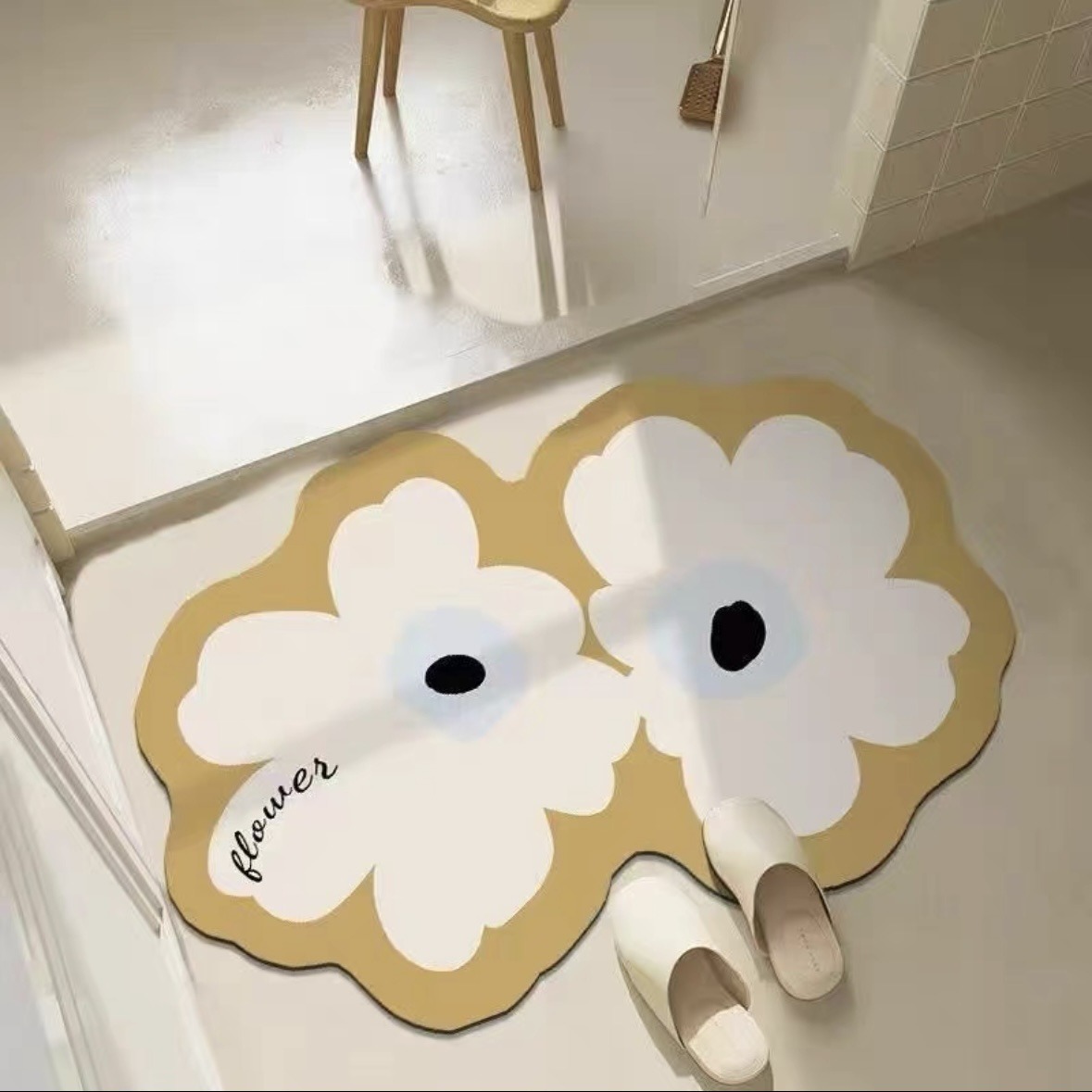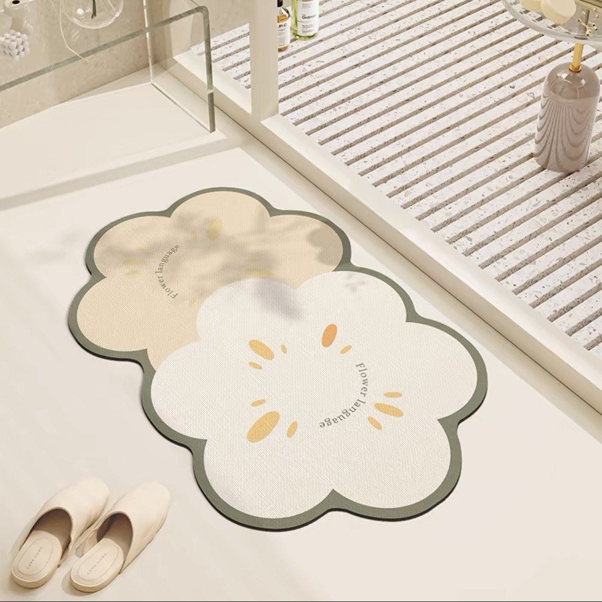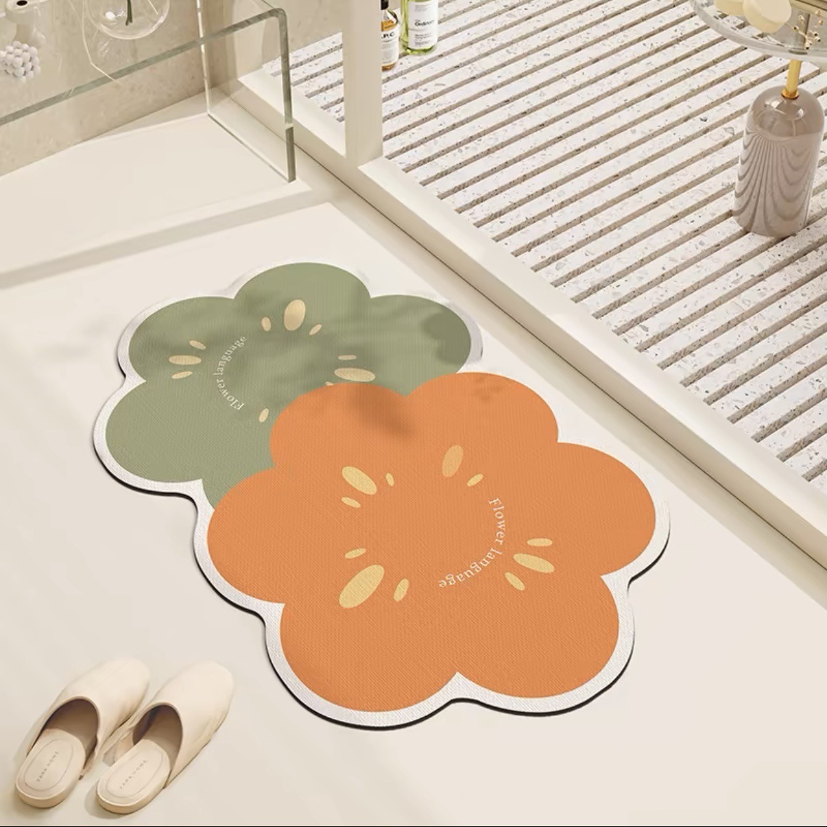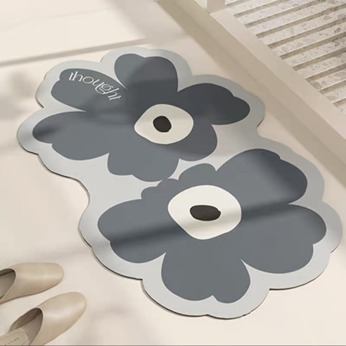 목가적 인 꽃 욕실 Diatom 진흙 매트 욕실 문 물 흡수성 빠른 건조 발 매트 미끄럼 이질 진흙 매트