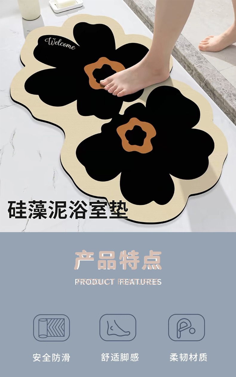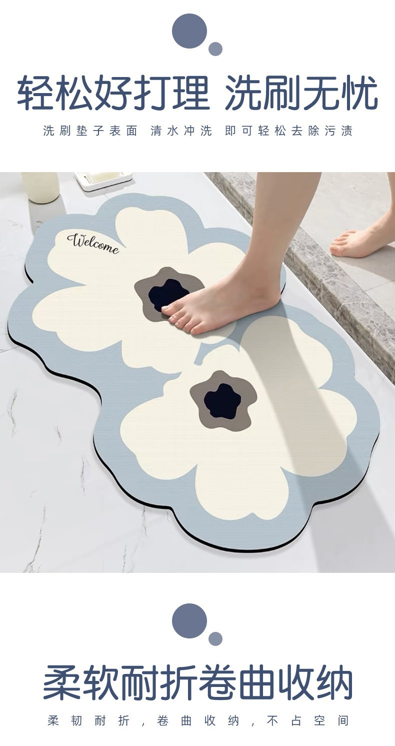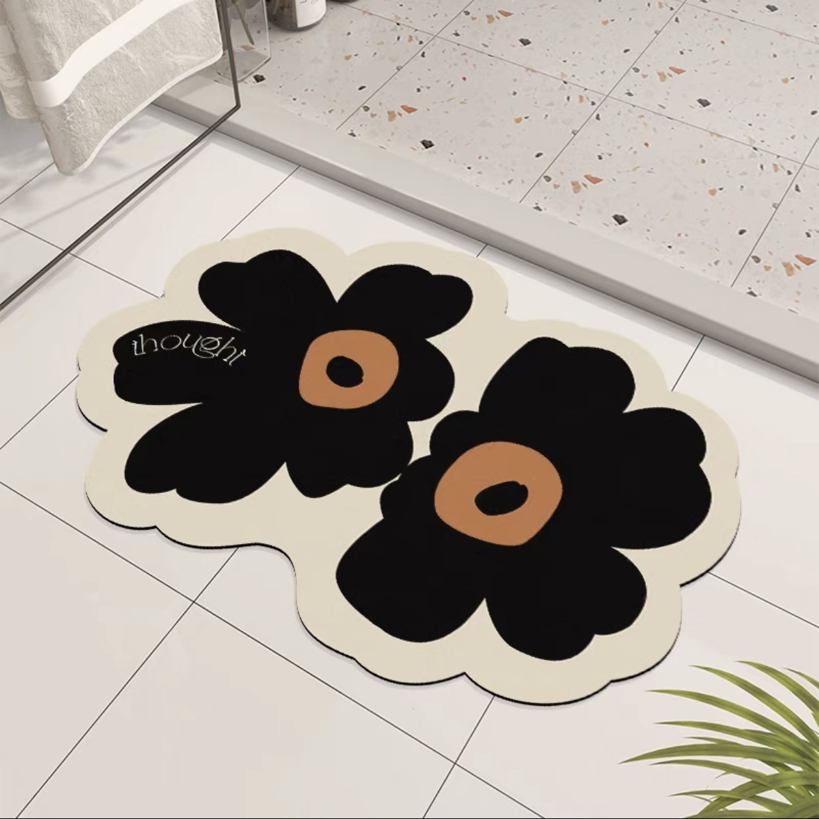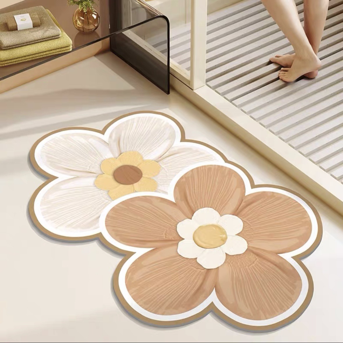 목가적 인 꽃 욕실 Diatom 진흙 매트 욕실 문 물 흡수성 빠른 건조 발 매트 미끄럼 이질 진흙 매트