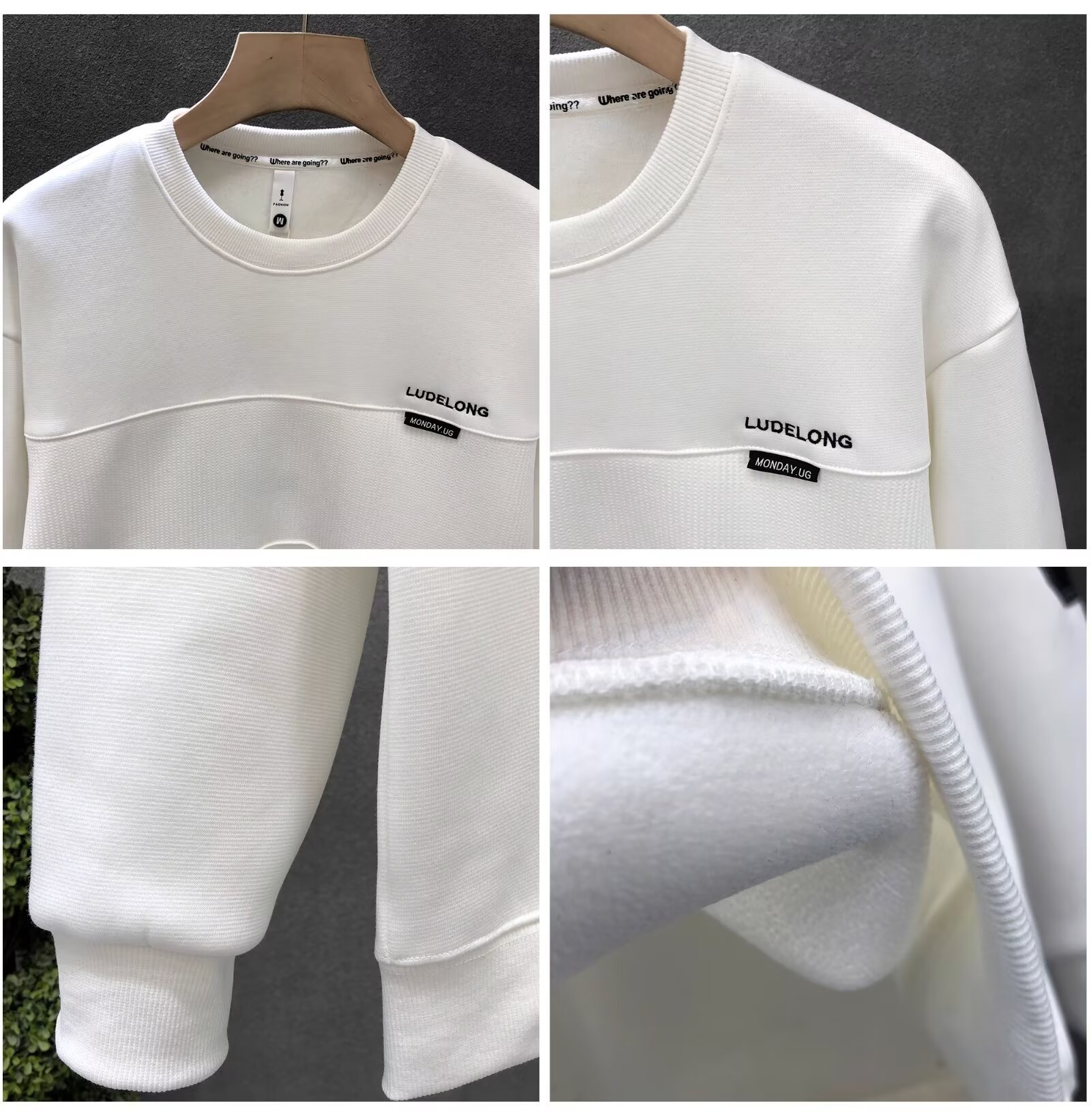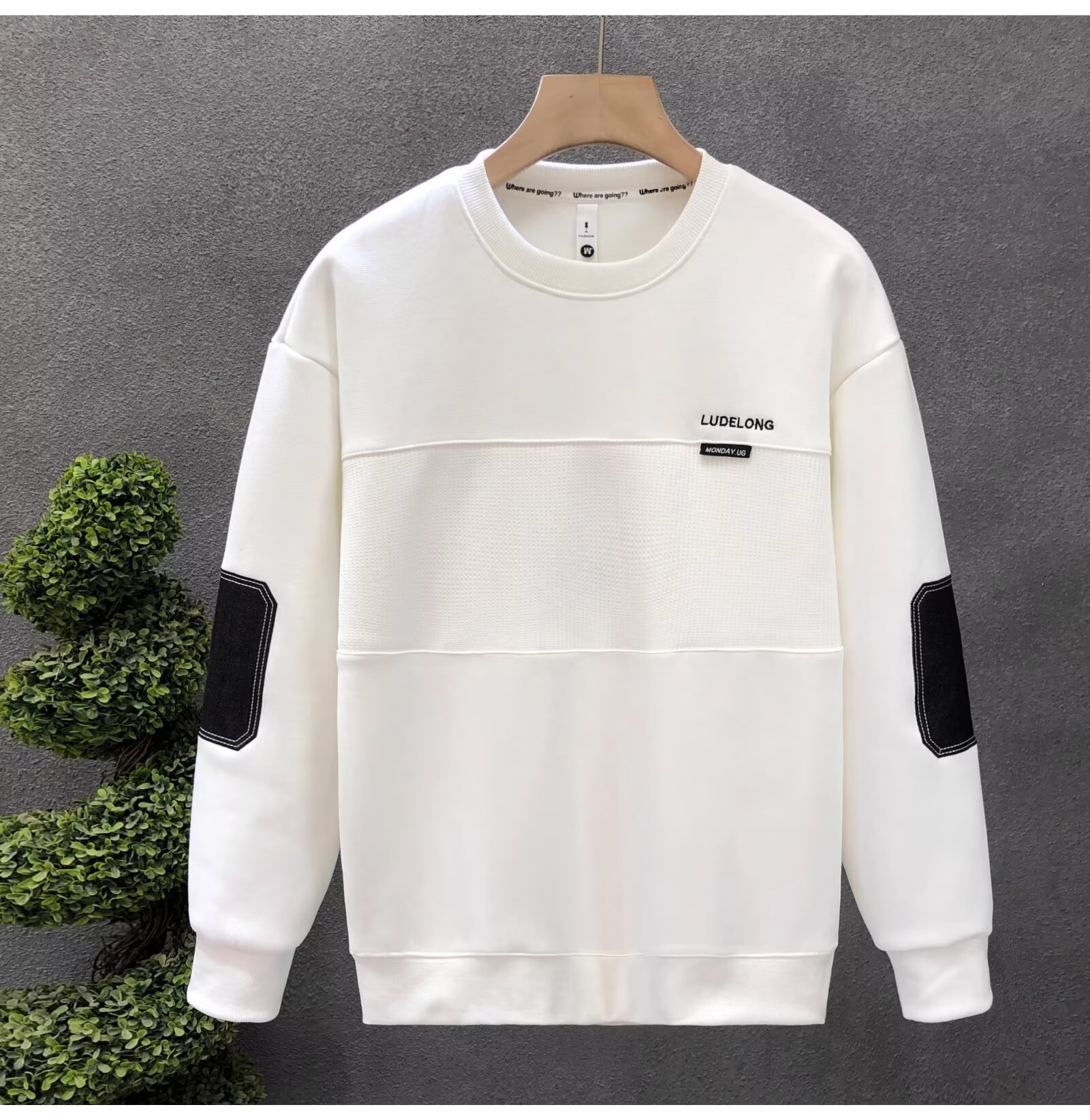 가을과 겨울 새로운 심플한 디자인 센스 스티칭 크루 넥 스웨트 남성 유행 청소년 사진 대비 컬러 올 매치 탑스토어 가기