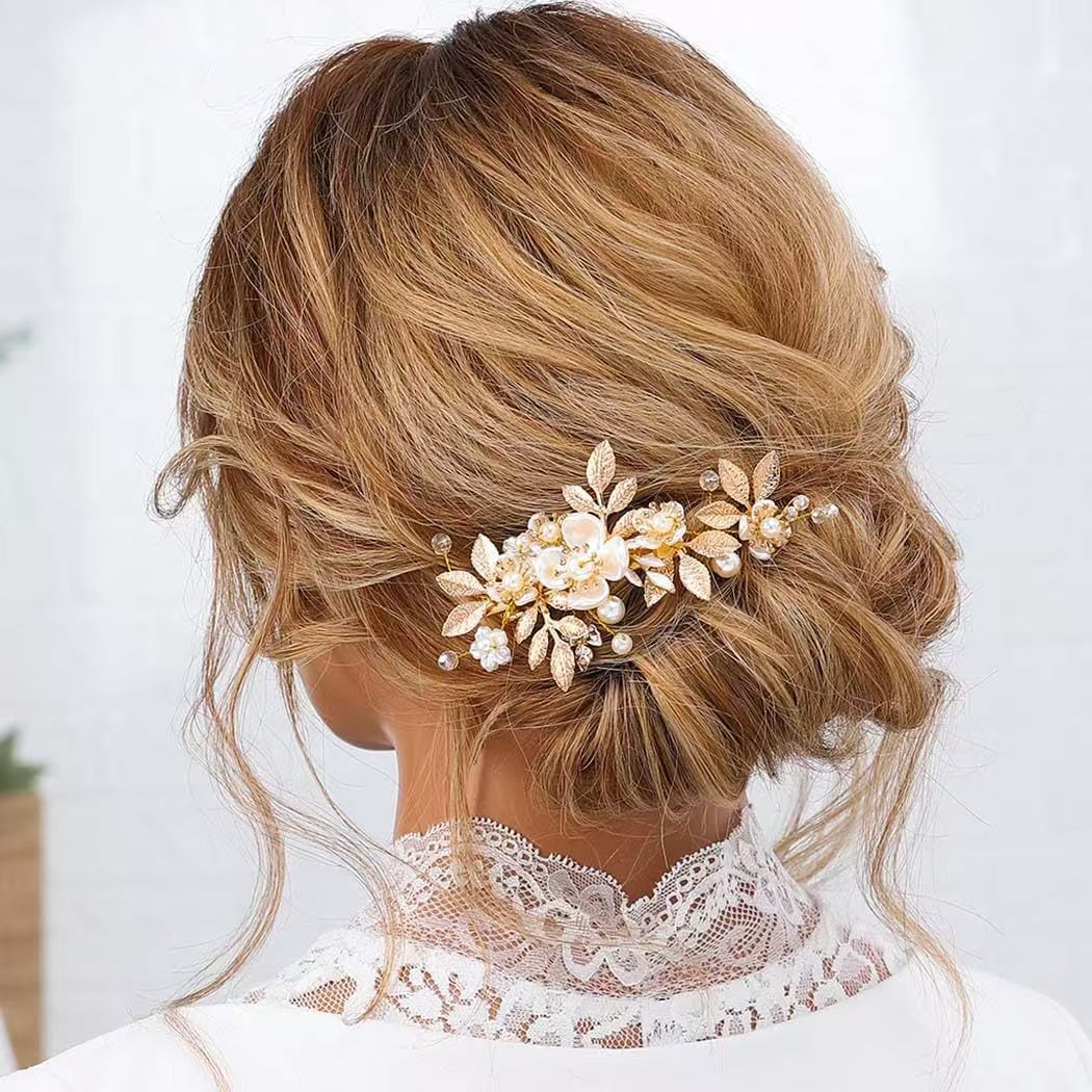 신부 웨딩 헤드웨어 황금 잎 진주 꽃 사이드 클립 헤어핀 사이드 액세서리 유럽과 미국 국경 독점 공장 스트레이트스토어 가기