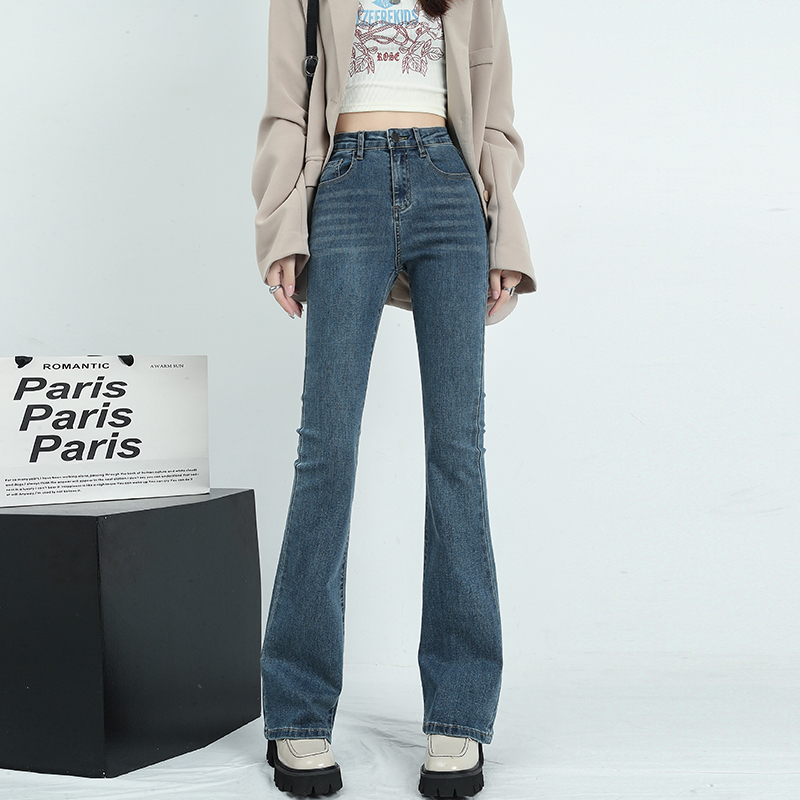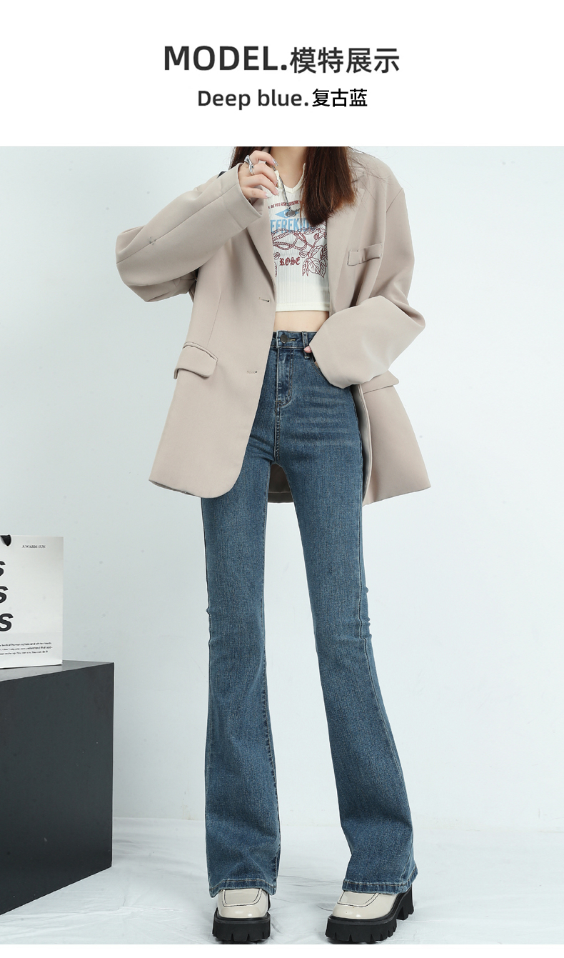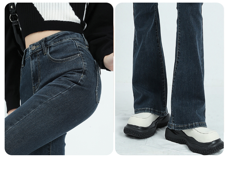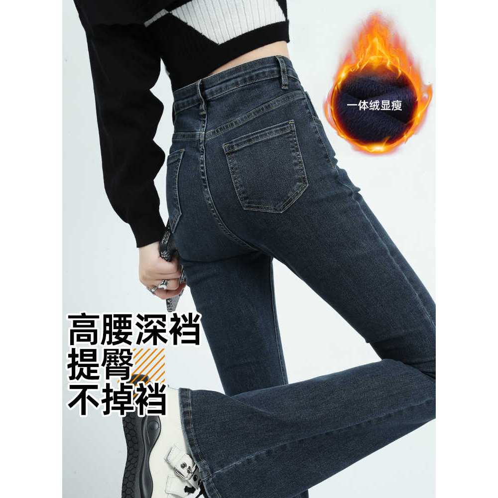빈티지 기모 아마 청바지 여성의 가을과 겨울 새로운 높은 허리 슬림 핏 슬리밍 미국 말굽 플래 팬츠스토어 가기