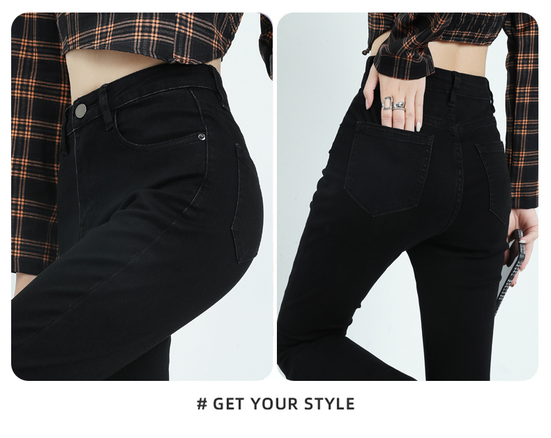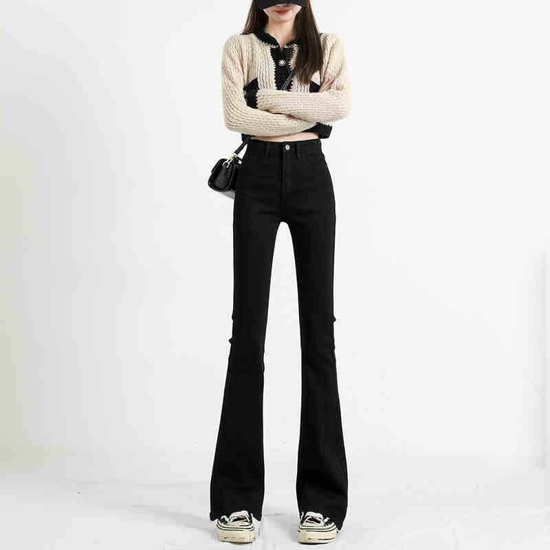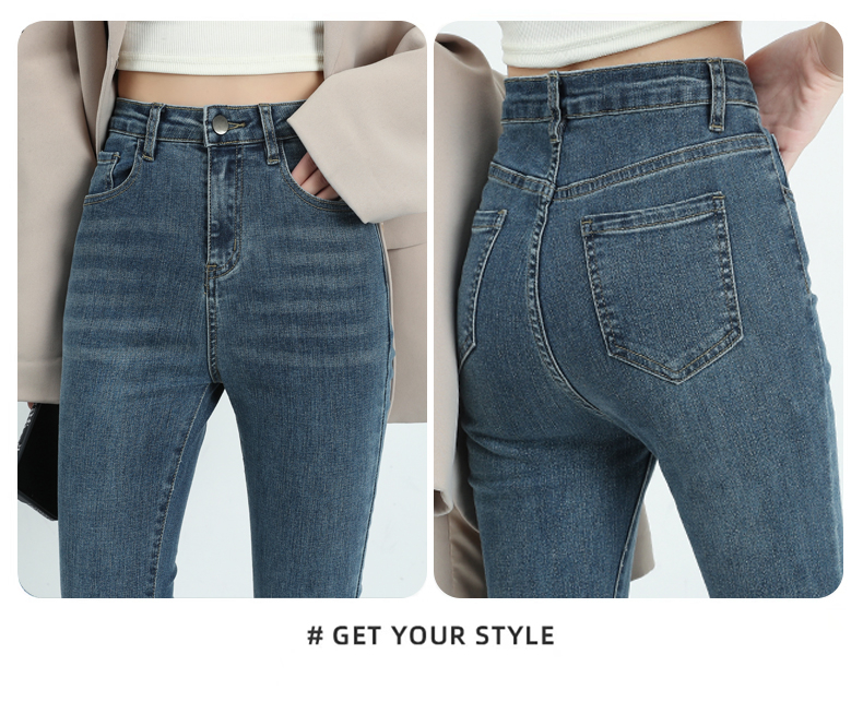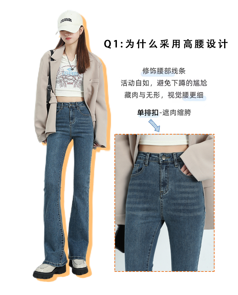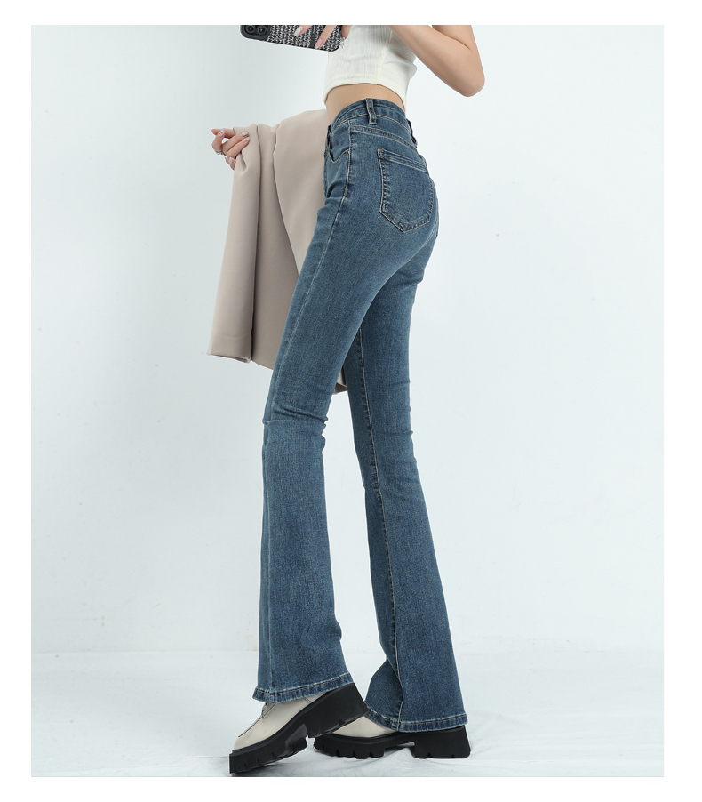빈티지 기모 아마 청바지 여성의 가을과 겨울 새로운 높은 허리 슬림 핏 슬리밍 미국 말굽 플래 팬츠스토어 가기