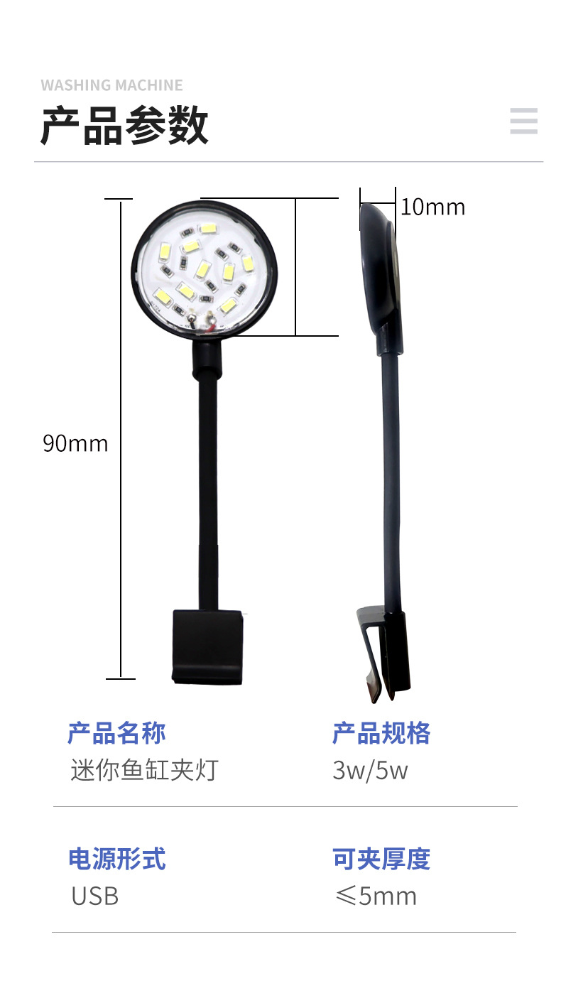 공장 USB 작은 물고기 탱크 미니 클립 램프 수족관 조명 램프 물 잔디 채우기 램프 조절 가능한 물고기 탱크 작은 클립 램프스토어 가기