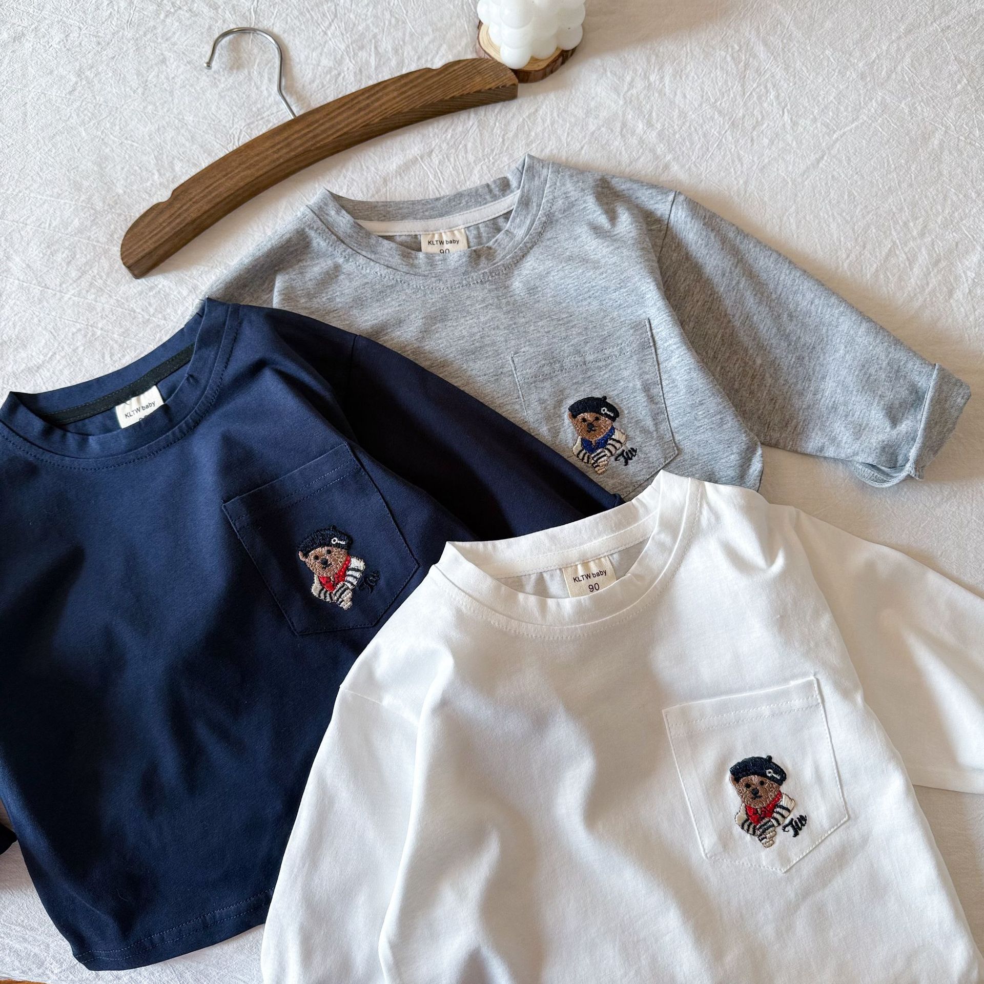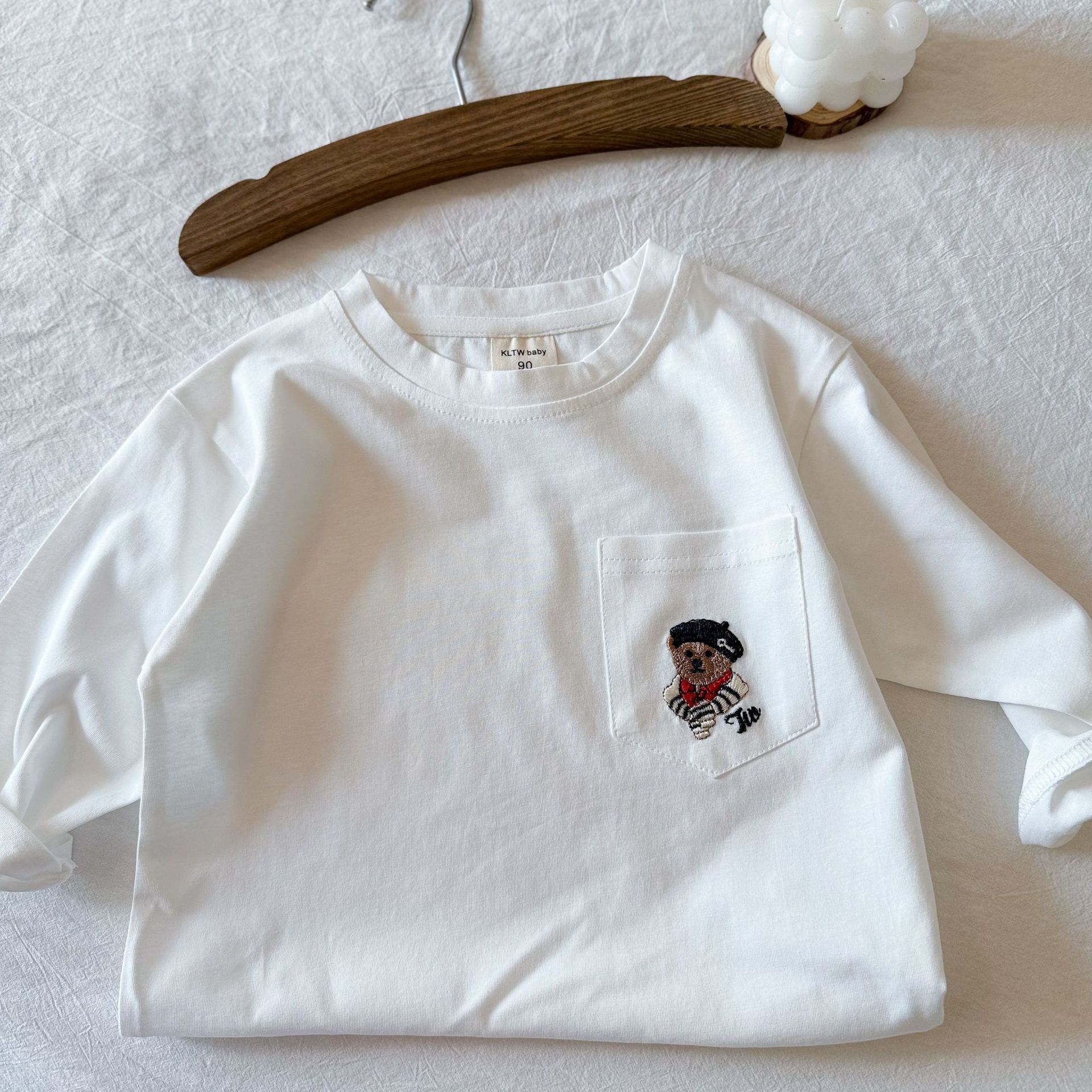 봄 2025 소년 소녀 긴 소매 티셔츠 여성 아기 한국 둥근 목 탑 어린이 자수 기지스토어 가기
