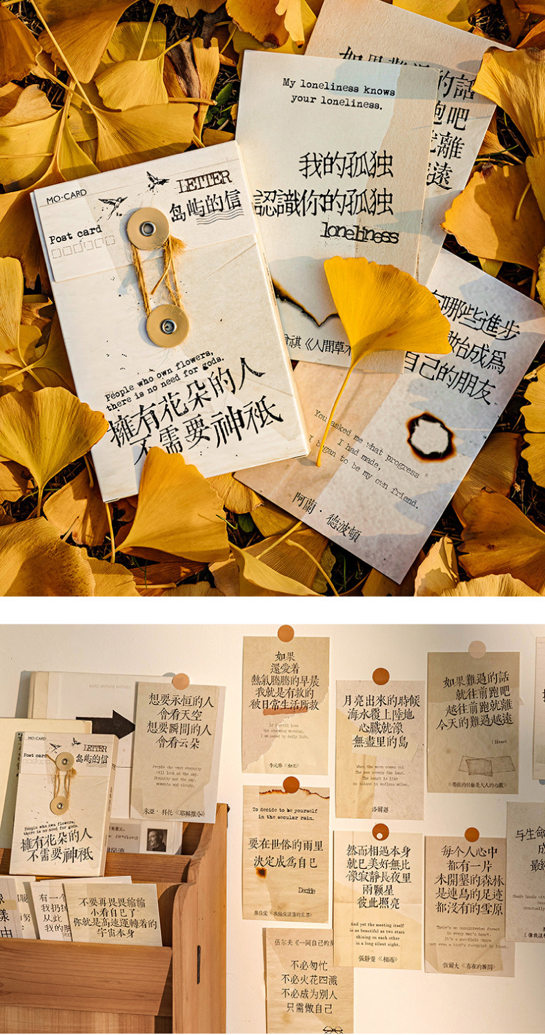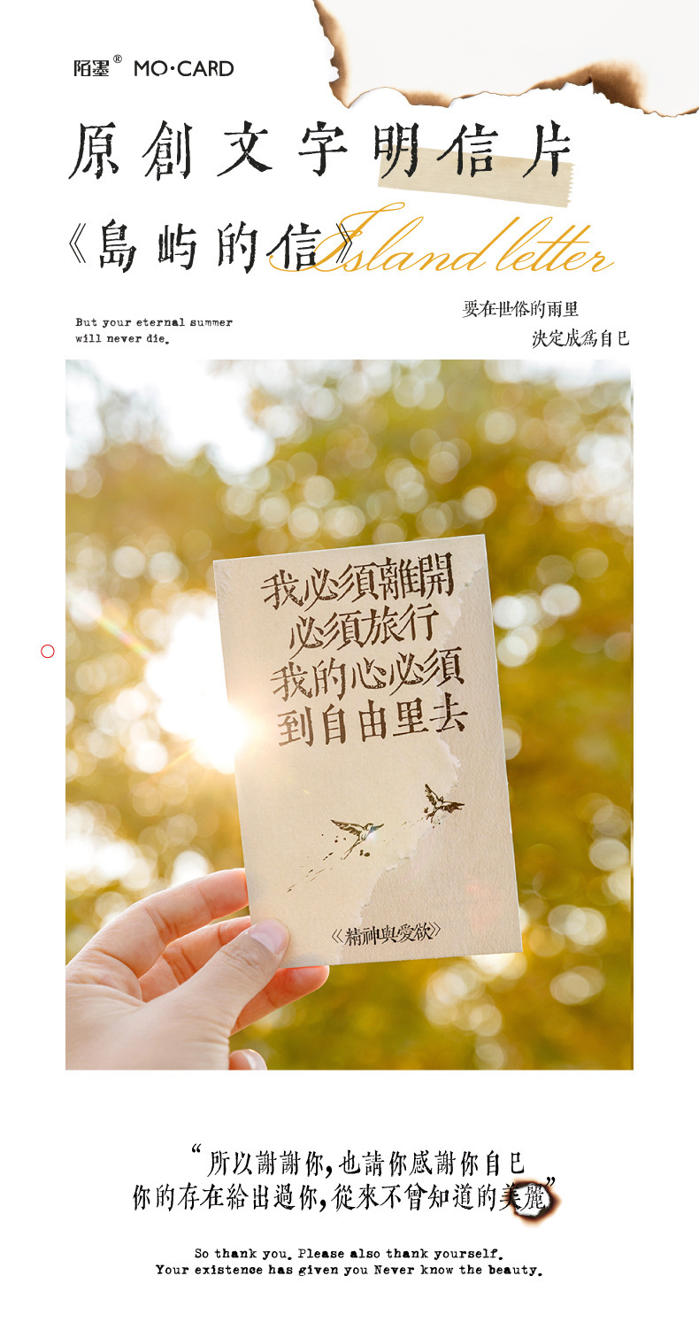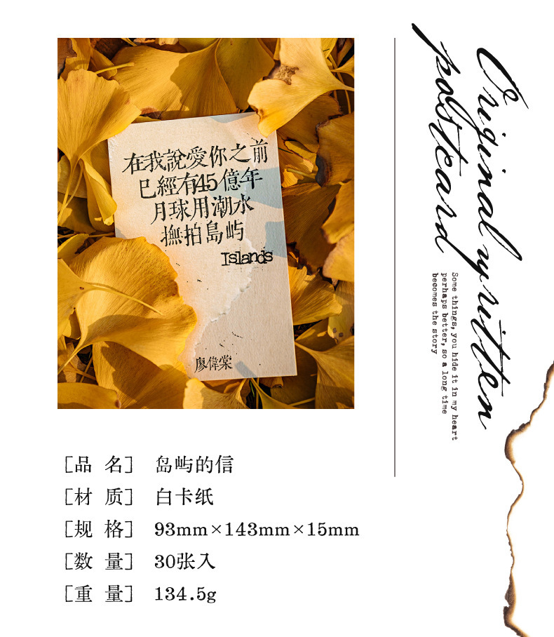 Mo Mo 박스 엽서 섬 편지 시리즈 치유 낭만적 인 텍스트 테마 벽 장식 메시지 카드