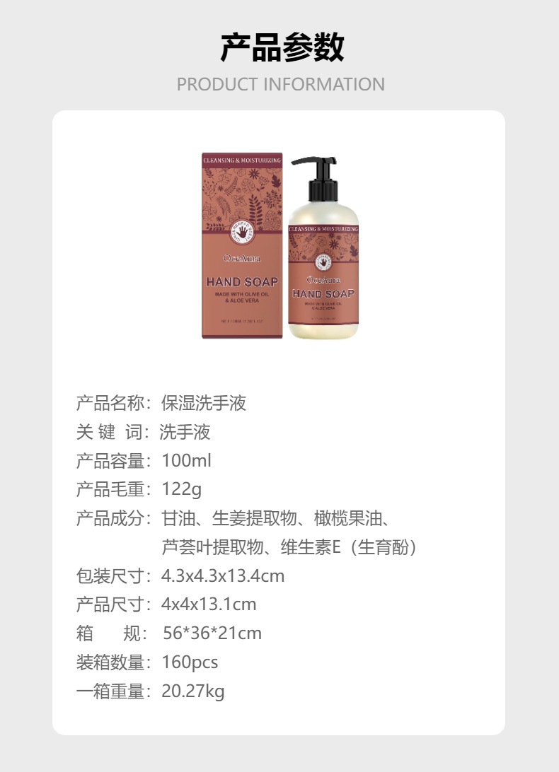 OceAura 보습 손 소독제 부드럽게 청소 및 보습 손 피부 상쾌하고 가벼운 향수 수분 소독제