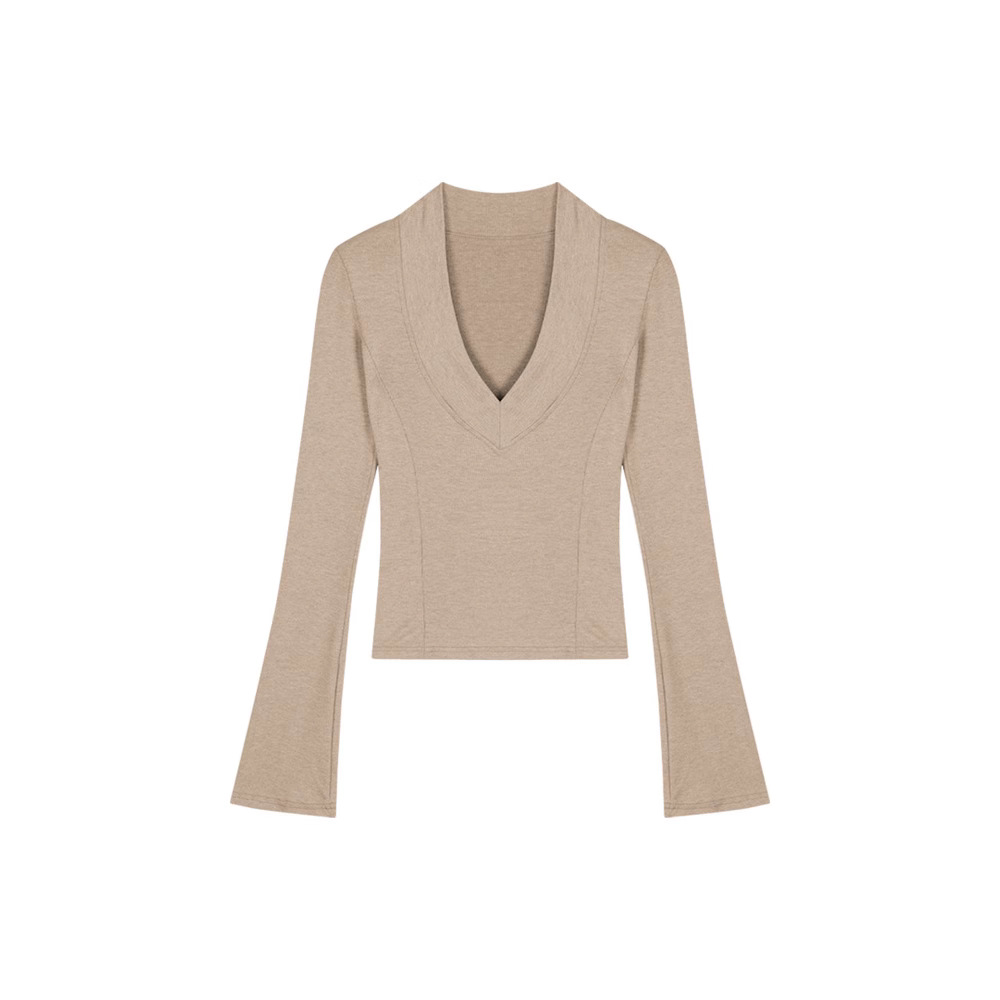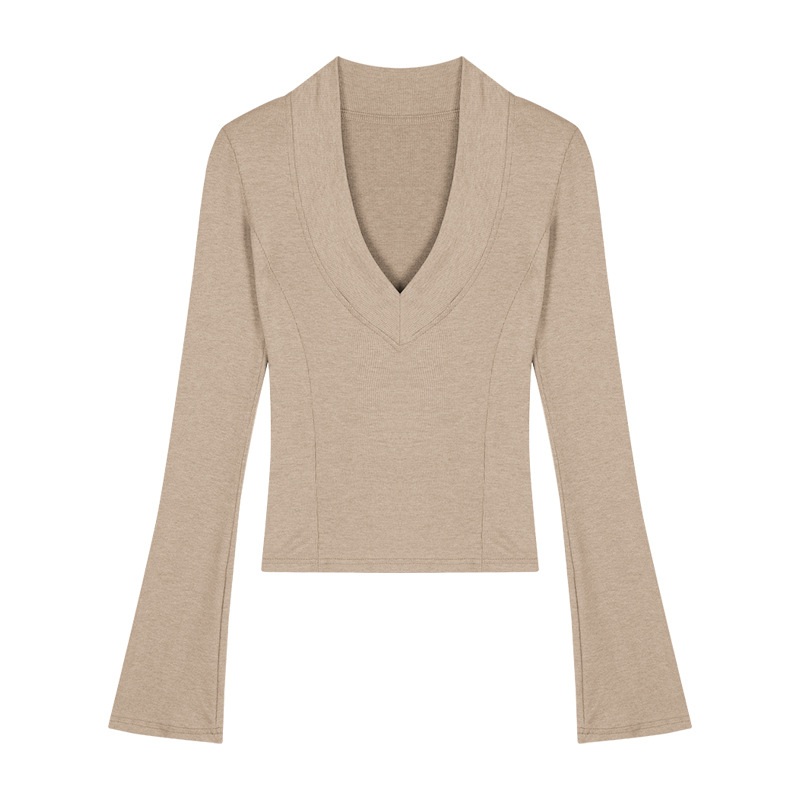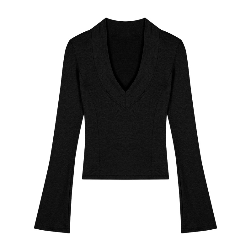 검은 섹시한 V-넥 긴팔 어깨 스웨터 여성의 가을과 겨울 슬림-맞는 내부 스트레치 얇은 베이스 셔츠 탑